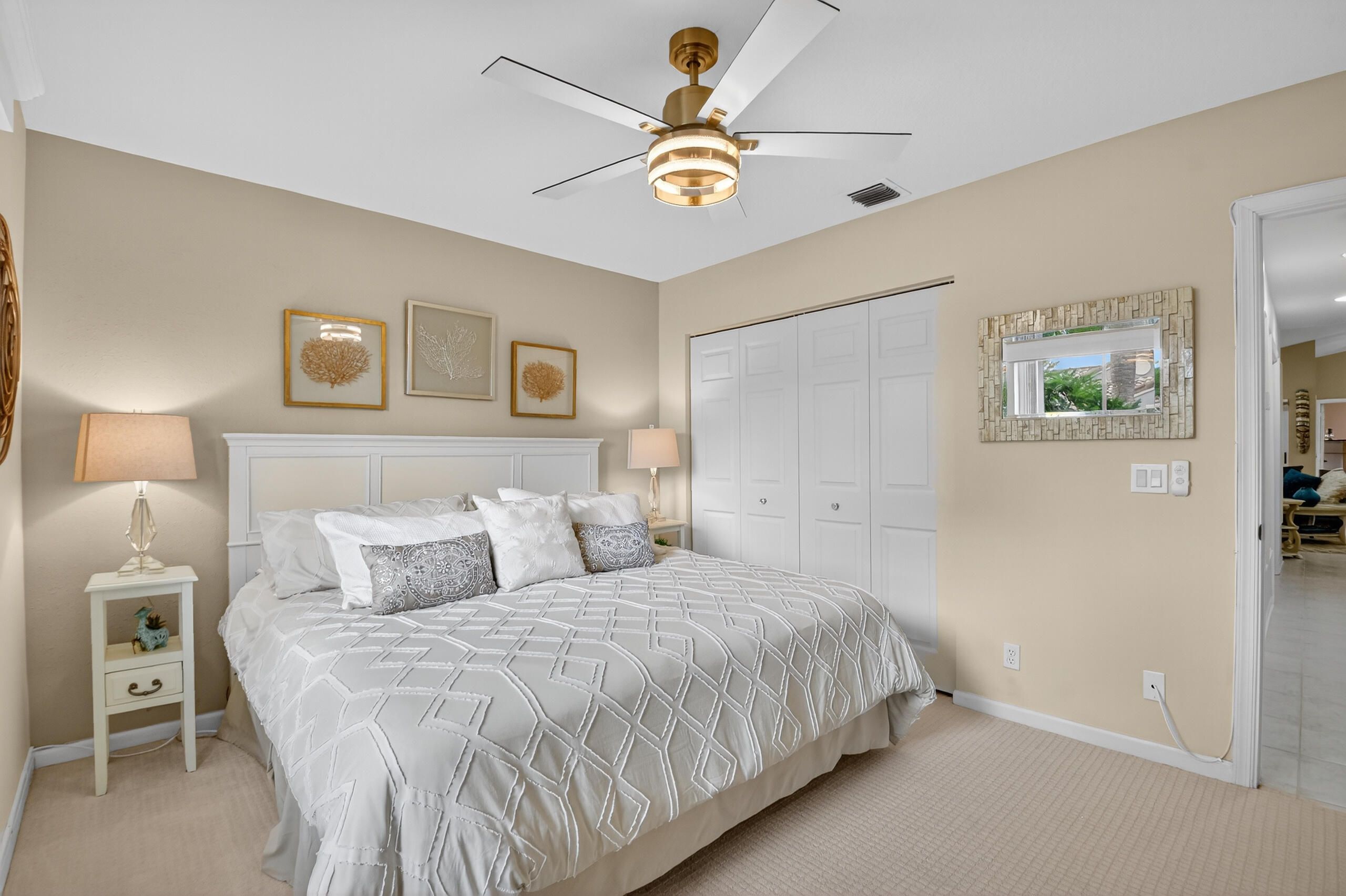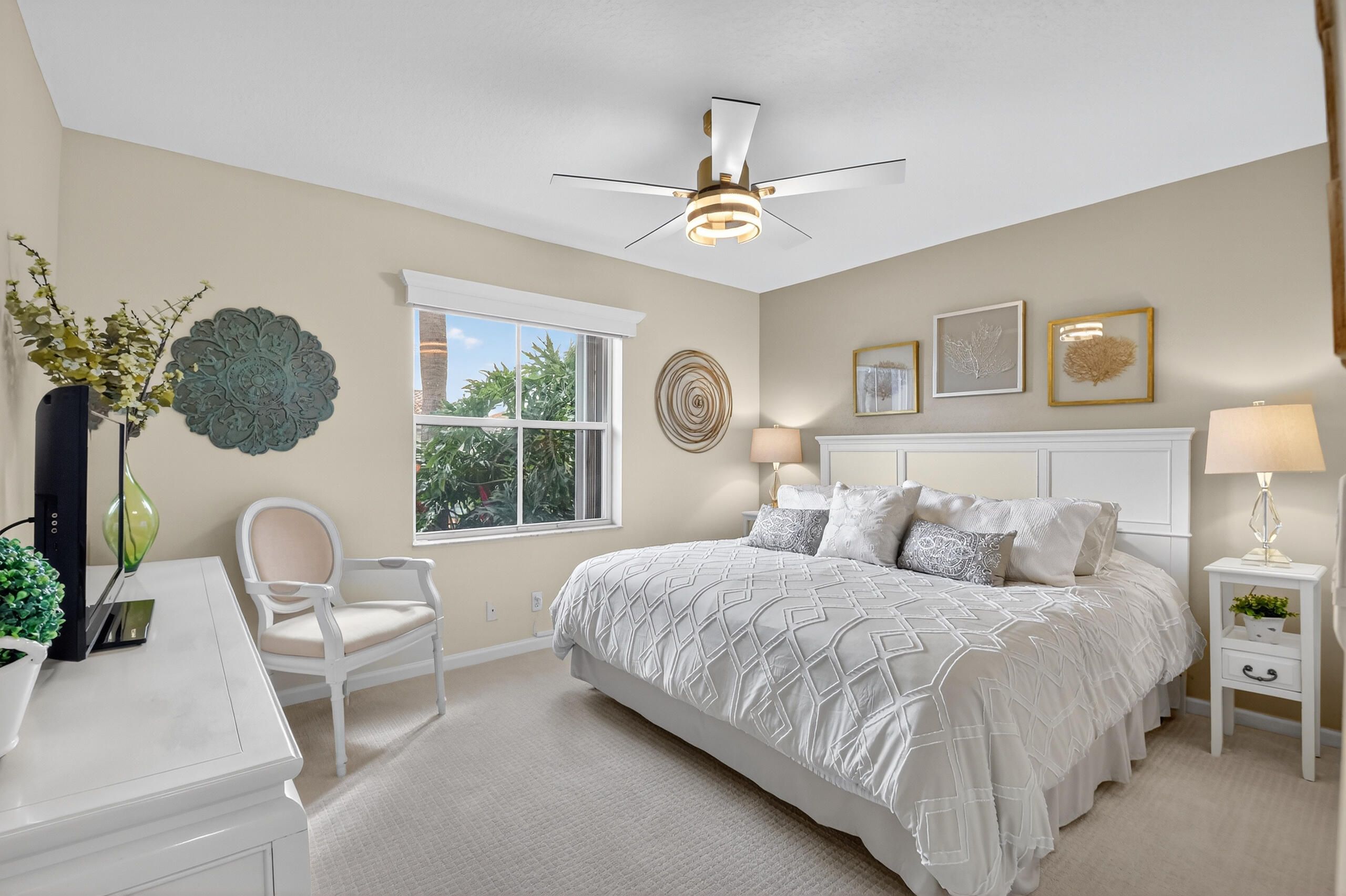 Completely Updated Home in Cascades Awaits! New Roof and Gutter system with 10 Year Warranty!!! This is the move-in ready home you've been searching for in the highly sought-after Cascades community! Virtually every detail has been thoughtfully updated, offering a stylish, comfortable, and maintenance-free lifestyle from day one. Home to be sold with all furnishings, decor etc..... Worry-Free Living and Premier Location - Come home to the peace of mind of a brand-new roof with a 10-year warranty and a completely new gutter system - both just installed on 10/16/2025. This means no insurance headaches for the new owner! New AC in 2022. Enjoy a premier location within Cascades with no rear neighbors as the home backs directly onto a serene canal. Imagine sipping your morning coffee while bird-watching from your screened lanai, complete with a new ceiling fan and charming string lighting. Even the side privacy fences have been recently replaced. Cascades has a stunning array of resort-style amenities: Beautifully Renovated Clubhouse, 24-hour Manned Gate Entry, On-site Café serving breakfast and lunch (with delivery!) Pickle ball, Tennis, and state-of-the-art Gym, A resort-style community pool plus satellite pools throughout, and relaxing Hot Tubs, Theater, Library, and one of the only clubhouses to offer a full-service bar! A vibrant schedule of shows, clubs, groups, and exercise classes will keep you active and engaged. The monthly HOA also includes incredible value: 3 Xfinity cable hookups with HBO, DVR, high-speed internet, maintenance of front and rear areas, pest control, 24-hour manned gates, and pressure washing of your roof and driveway as well as painting of your home. The upgrades start at the curb of this home with modern light fixtures flanking the garage and beautiful river rock landscaping. Added security comes from the included Ring doorbell and alarm system, as well as hurricane shutters for extra safety. Step inside to be greeted by vaulted ceilings, an abundance of natural light, and elegant 16x16 oversized ceramic tile floors. The neutral paint palette flows seamlessly through the home, highlighted by new contemporary light fixtures and ceiling fans in every room. The kitchen is a standout with gorgeous exotic granite countertops, upgraded soft-close cabinetry, and a suite of stainless-steel appliances, including a high-end Bosch dishwasher. The master ensuite and guest bath have both been beautifully updated with glam lighting, stunning 3CM granite, and sleek, new glass-enclosed shower doors. The master, office and guest bedrooms feature new Anderson Tuftex luxury carpeting. The third bedroom has been converted into a private office with custom built-ins for excellent storage, and the main hallway showcases beautiful hand-carved Brazilian wood inlays. The 2-car garage has a built-in workbench, utility sink, and easy-access pull-down stairs to a large attic for plenty of storage. The washer, dryer, and all TV's and mounts convey! This home truly has it all, situated within a community that offers everything you could ask for in amenities and lifestyle. It is a must-see for the discerning buyer looking for a truly move-in ready, fully upgraded home in this fabulous community.