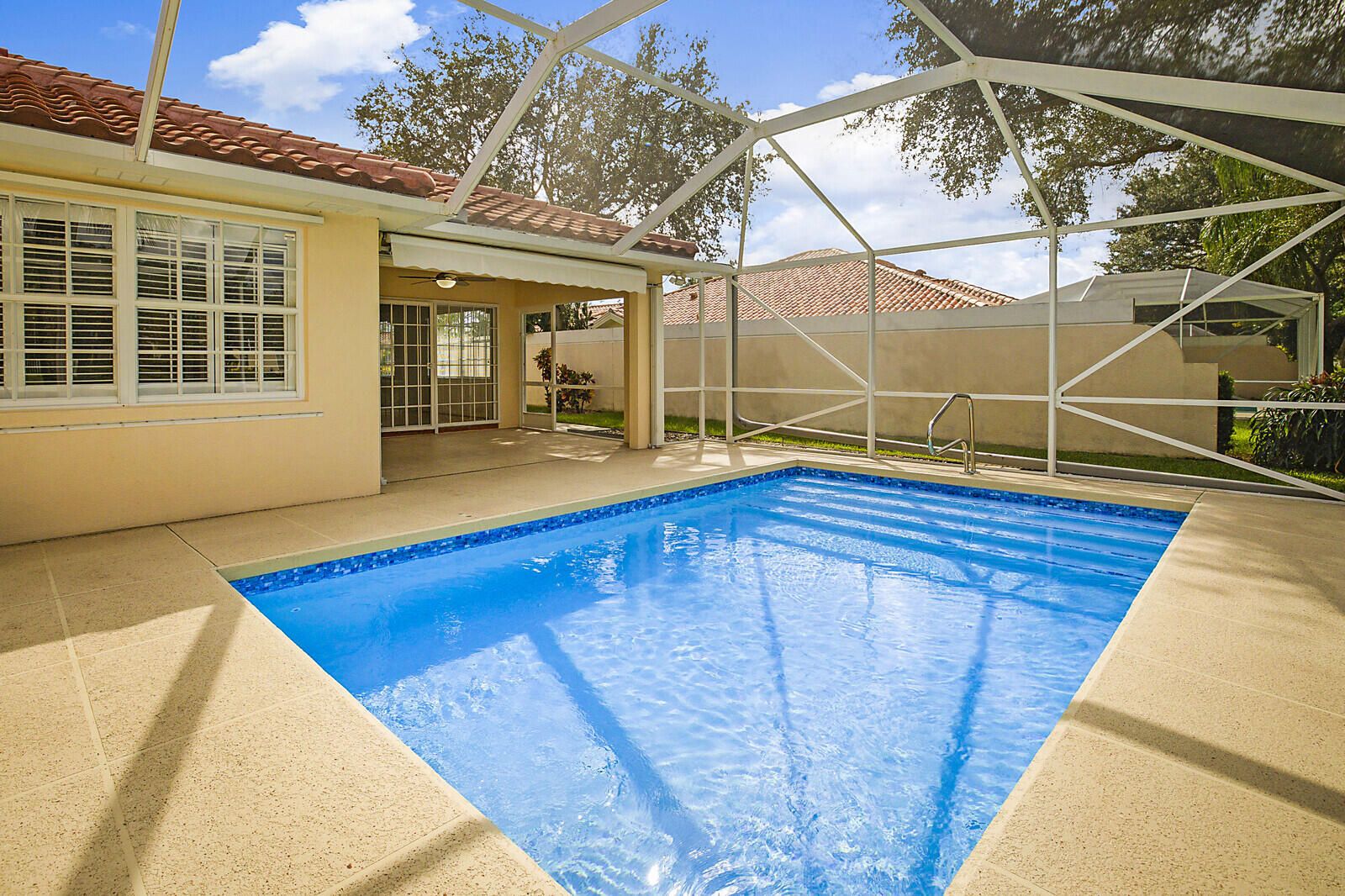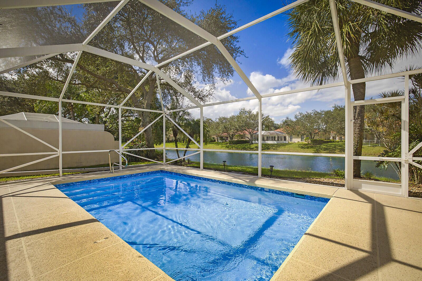 BE IN FOR THE HOLIDAYS! Spectacular Pool Home with RENOVATIONS/UPGRADES on Beautiful Water Lot in Premier RiverWalk Community with NEW ROOF in 2024! Tranquil water views from this gorgeous ''light & bright'' Capri Model vaulted ceilings & Covered Patio/Domed Screened Pool - Ideal to enjoy the outdoor South Florida lifestyle. A magnificent Master/Primary Suite with walk-in closets with built-ins, plantation shutters, wood laminate floors, & a fully renovated Master Bathroom that will amaze you! The Owner did not stop there: Air conditioned Garage with new Epoxy professionally finished floor; tankless water heater; newly refinished pool & enclosure, hurricane impact entry door, updated alarm system with cameras, hi-hat lighting & more! Quick closing available/See Supplement