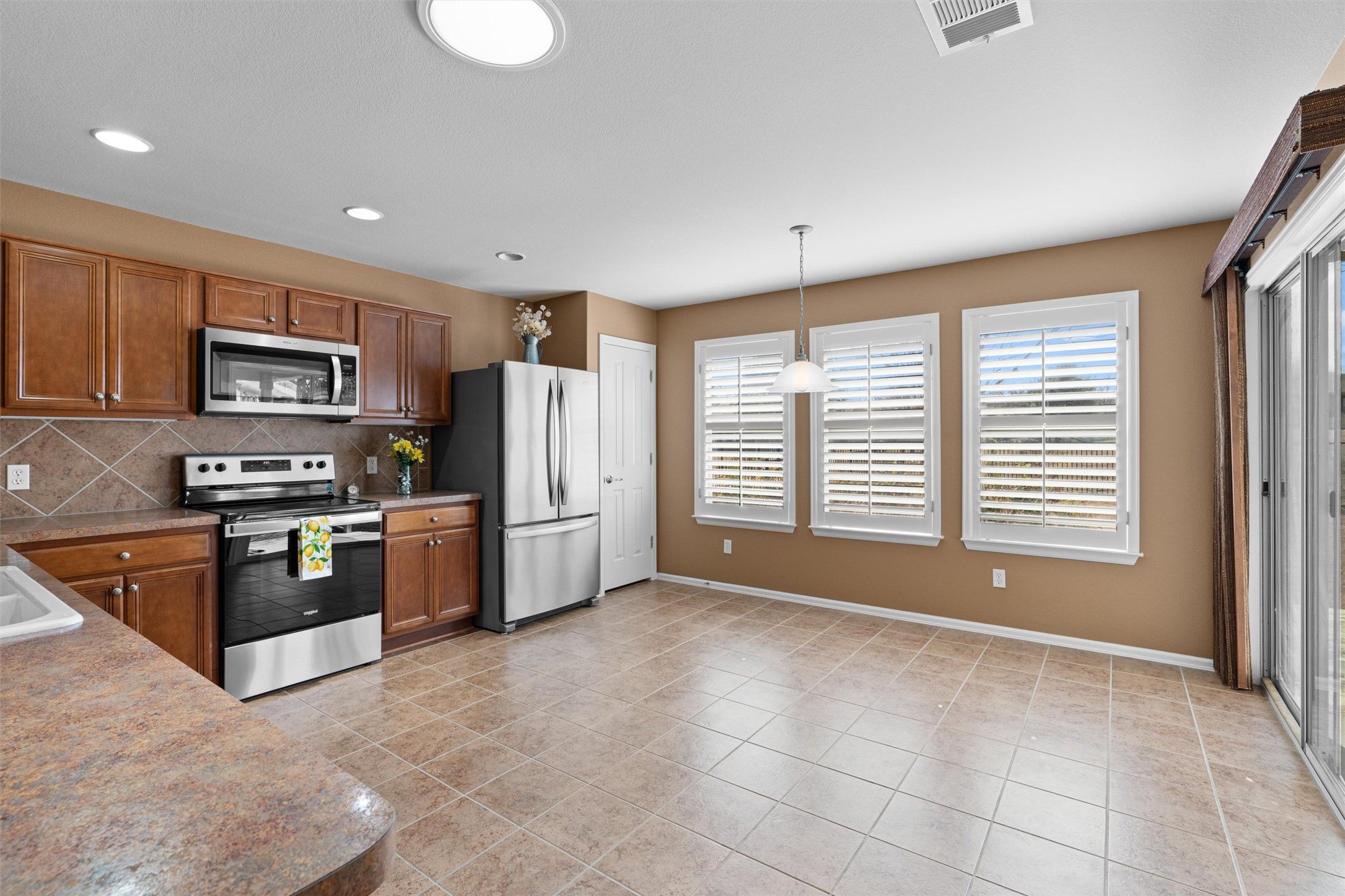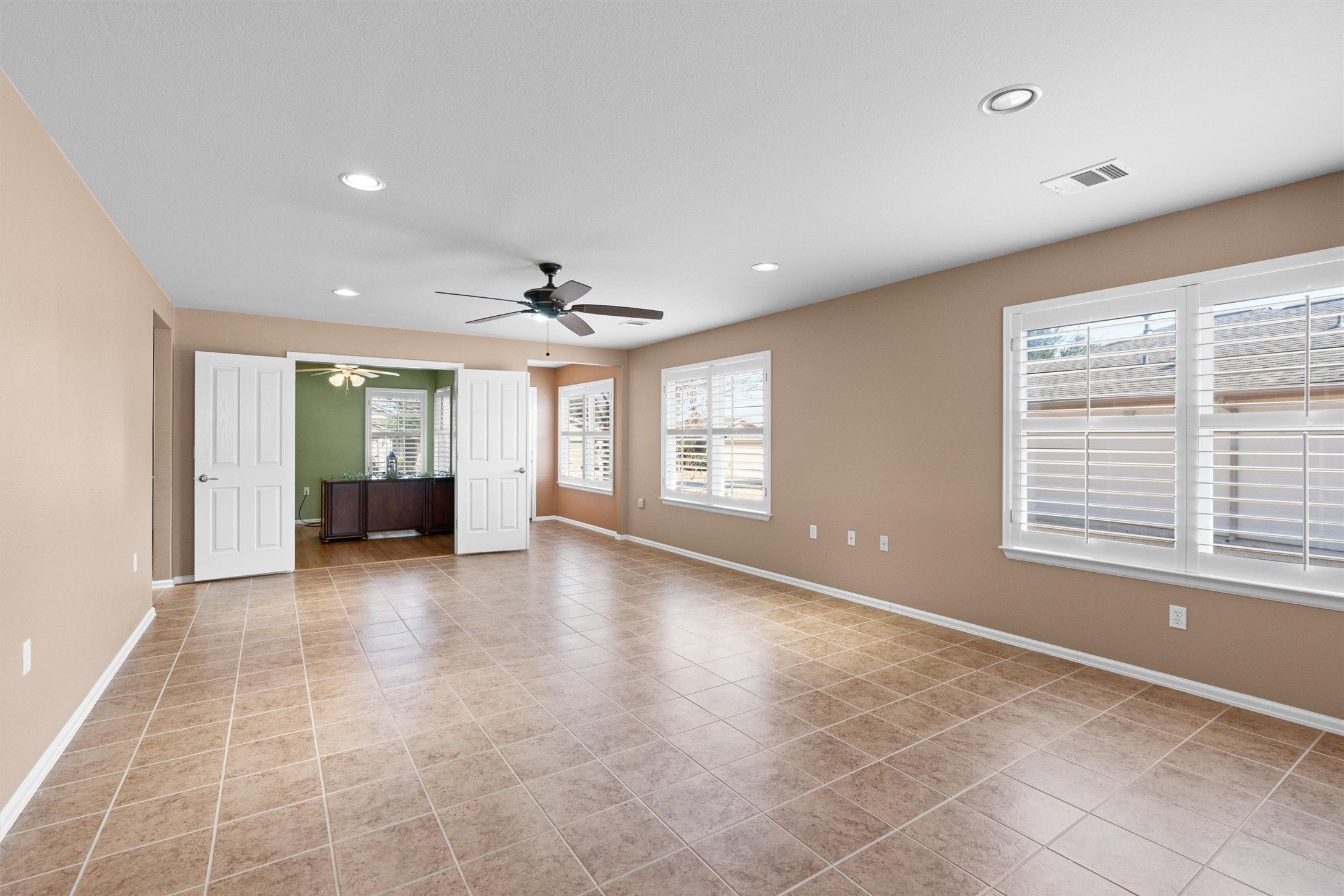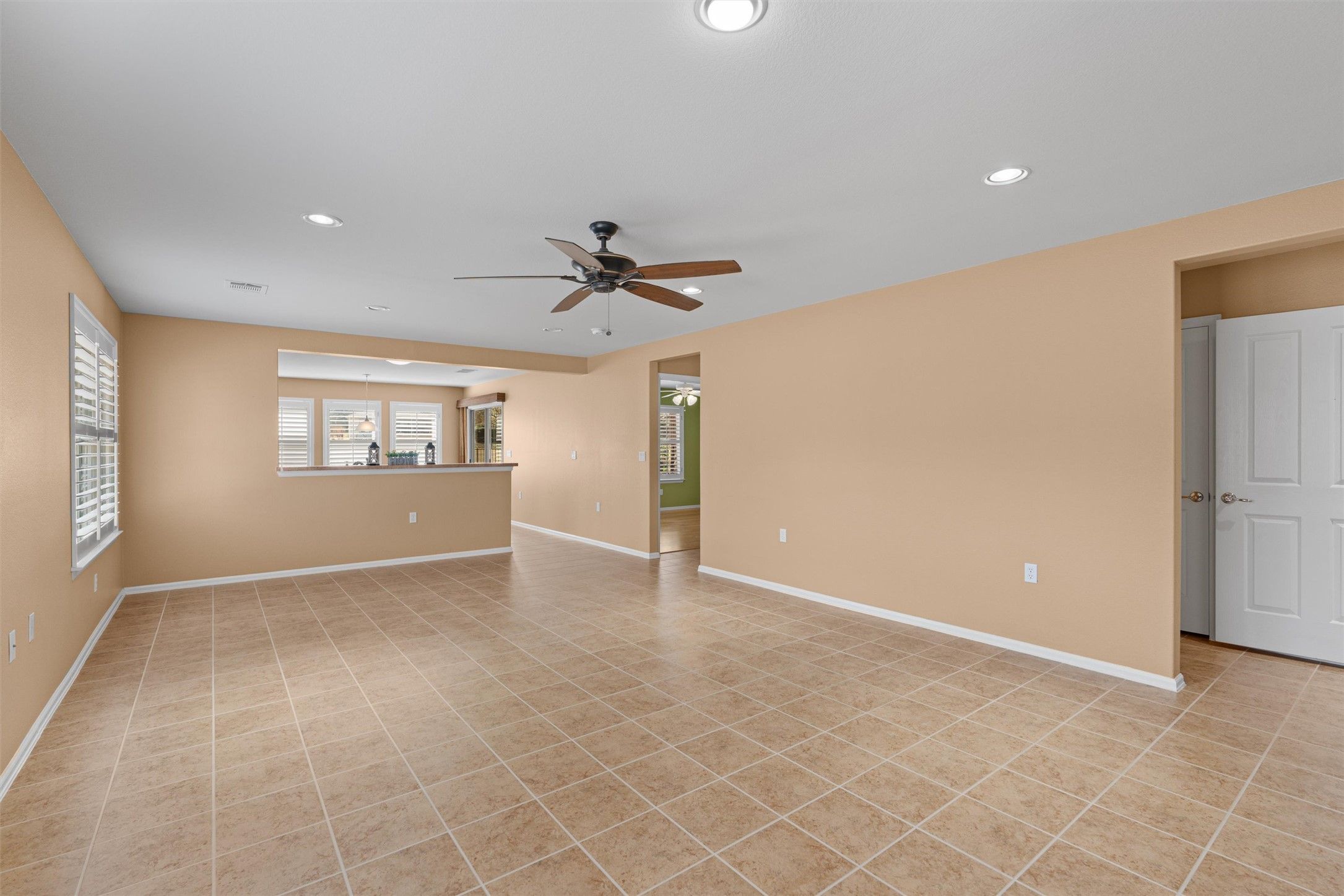- Breakfast Bar, Ceiling Fan(s), Double Vanity, Entrance Foyer, Eat-in Kitchen, French Door(s)/Atrium Door(s), Laminate Counters, Main Level Primary, NoInteriorSteps, Open Floorplan, Pantry, Recessed Lighting, Solar Tube(s), Study, Walk-In Closet(s)