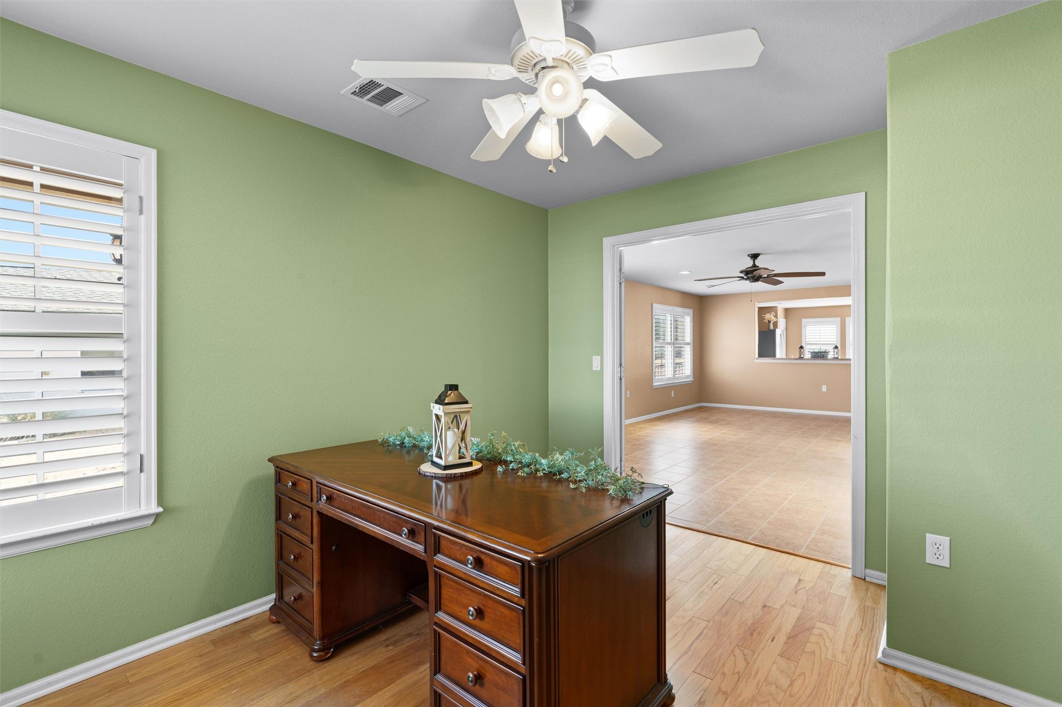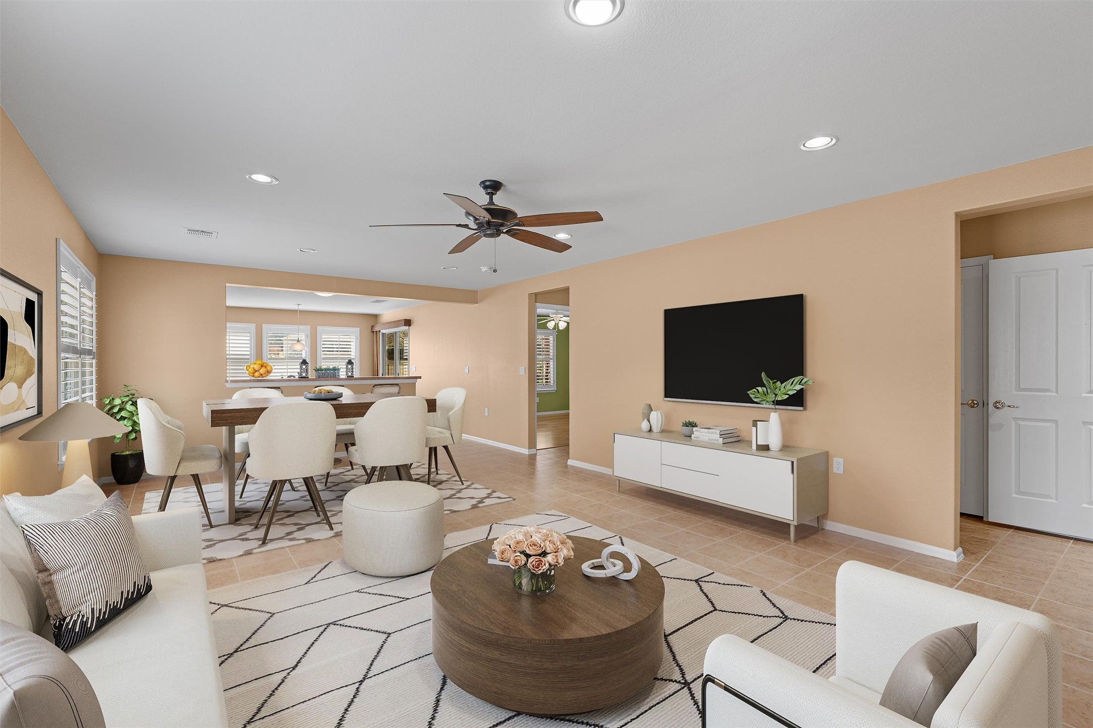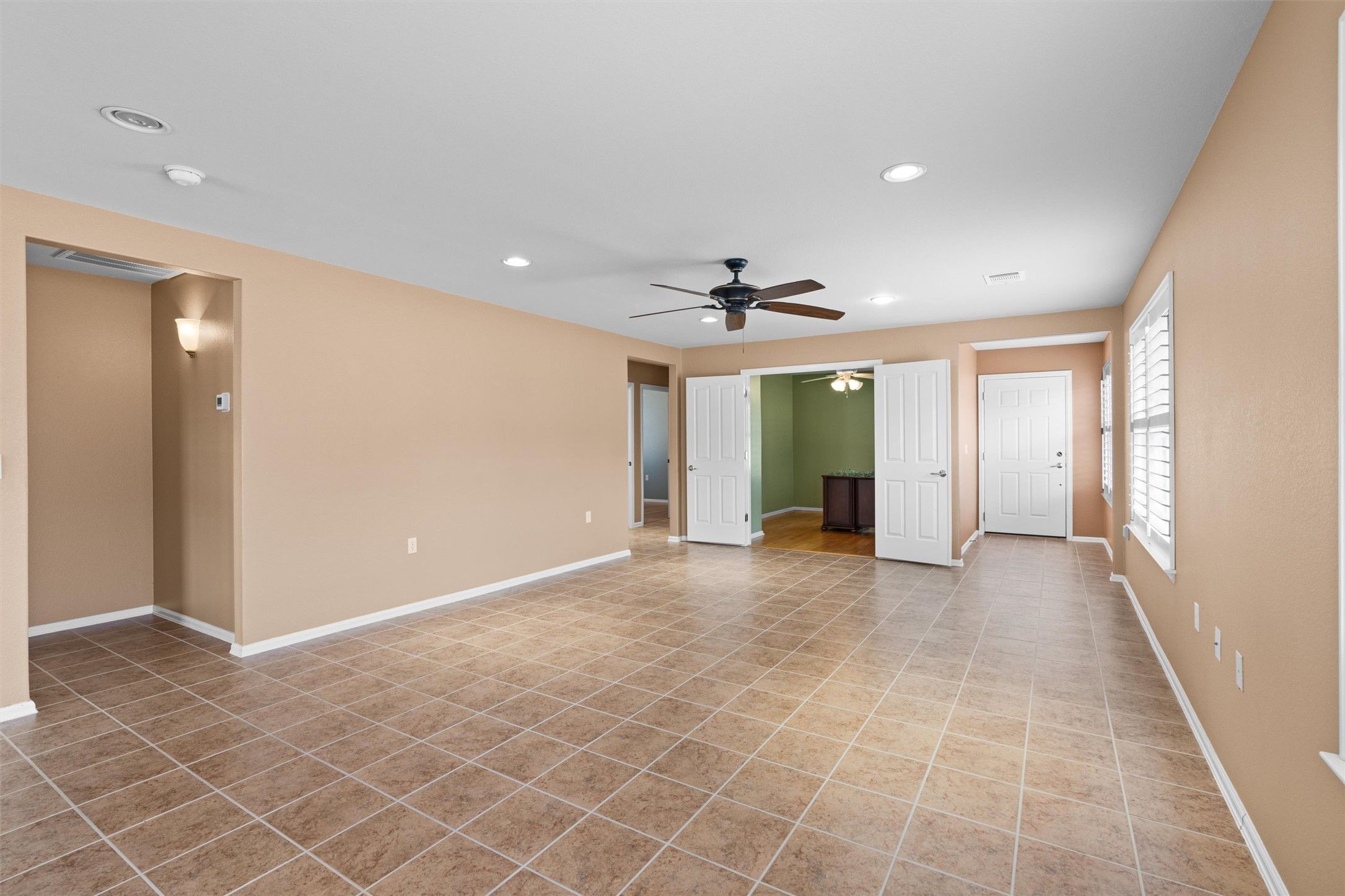 - Breakfast Bar, Ceiling Fan(s), Double Vanity, Entrance Foyer, Eat-in Kitchen, French Door(s)/Atrium Door(s), Laminate Counters, Main Level Primary, NoInteriorSteps, Open Floorplan, Pantry, Recessed Lighting, Solar Tube(s), Study, Walk-In Closet(s)