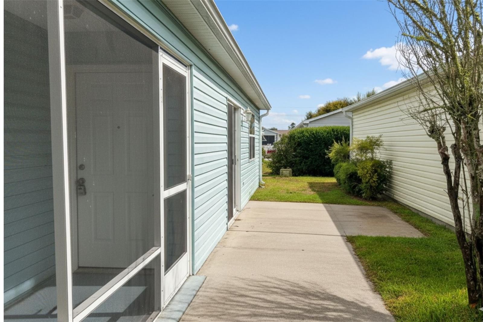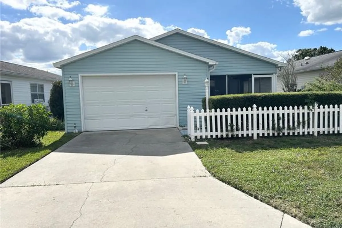 One or more photo(s) has been virtually staged. NO BOND- NEW ROOF! Bright, cheerful, and ready for your golf cart lifestyle! This charming 1-bed, 1-bath Patio Villa in The Village of DE LA VISTA is move-in ready! This home offers 920 SQUARE FEET of bright, open living space, thoughtfully updated with today’s modern conveniences and finishes. The FRONT SCREENED LANAI provides a charming space to relax with morning coffee or welcome guests. Step inside to find NEW LUXURY VINYL FLOORING throughout, setting the stage for an airy, open-concept layout that seamlessly connects the living, dining, and kitchen areas. The newly updated kitchen is a standout, boasting STAINLESS STEEL APPLIANCES, WOOD CABINETRY, a TILE BACKSPLASH, striking CONCRETE COUNTERS, and a cozy BREAKFAST BAR perfect for casual meals. Freshly painted and filled with natural light thanks to the sliding glass doors and SOLAR TUBE. The spacious bedroom features a ceiling fan and a walk-in closet, while the Jack and Jill bathroom includes a tub/shower combo, with a linen closet, and there's also additional hall storage. The 1-car garage offers BUILT-IN CABINETS, a washer/dryer, and space for a golf cart. Have peace of mind knowing the ROOF was replaced in 2025, HVAC in 2017, & HOT WATER HEATER in 2021, and NO BOND! Close to Highway 441 for shopping and dining, Laurel Manor Pool & Rec Center, Spanish Springs, and Sumter Landing Town Squares for nightly entertainment. Experience the lifestyle you’ve been waiting for and schedule your showing today!