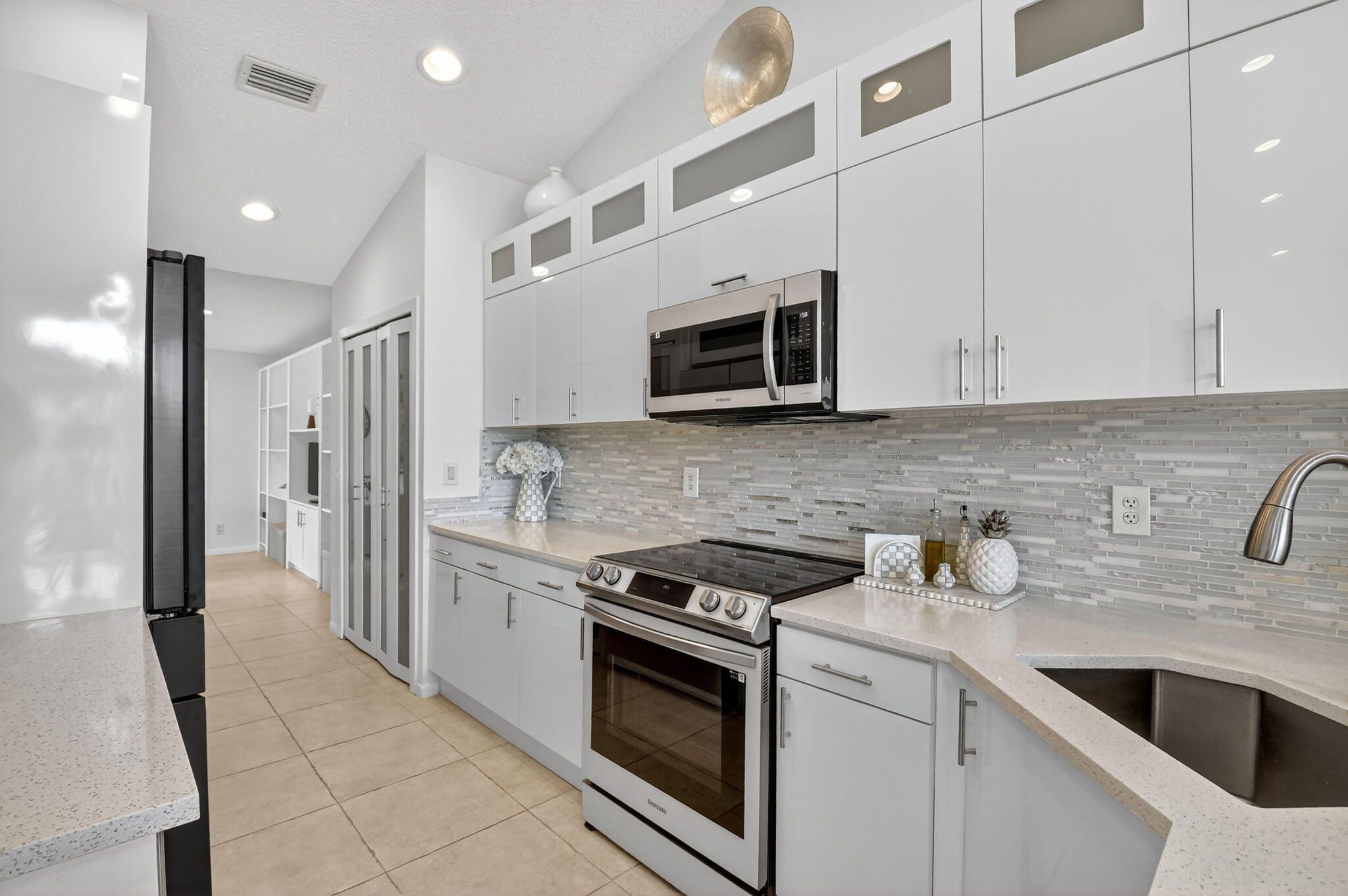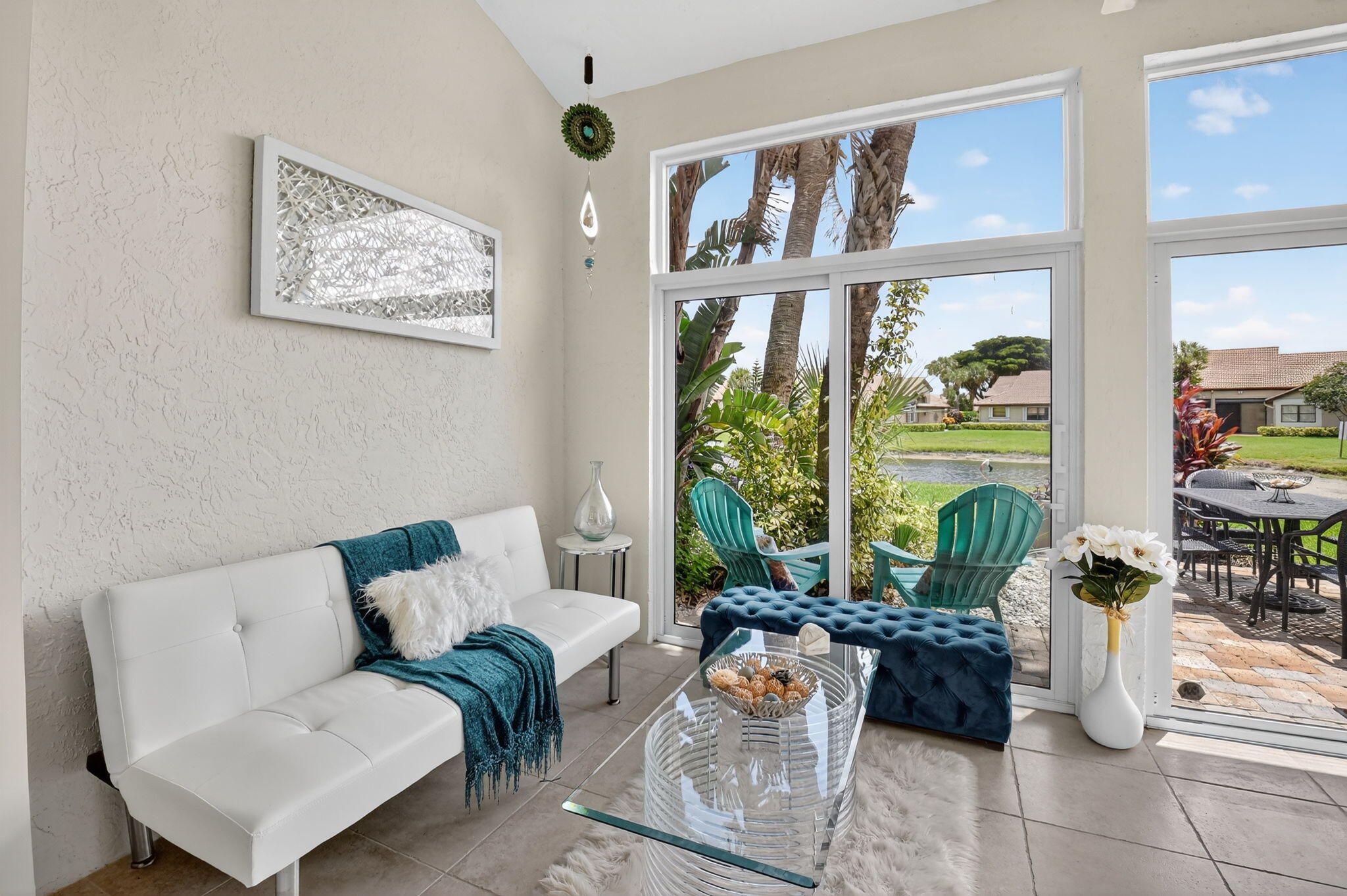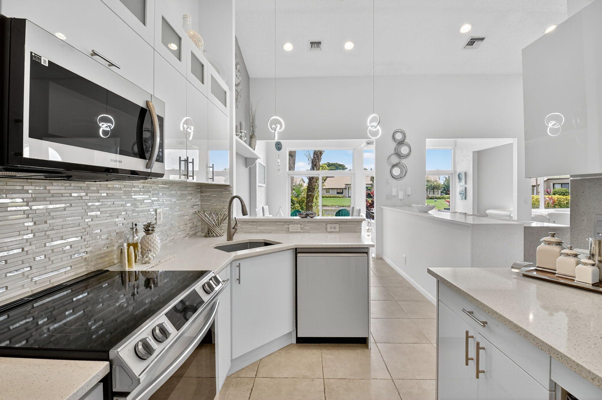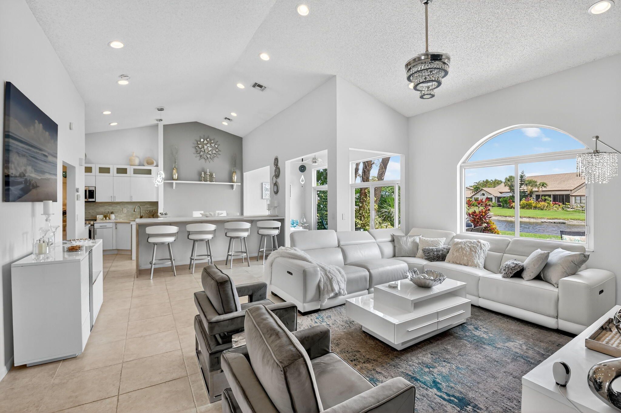 Welcome home to your slice of heaven here at Aberdeen Country Club. RENOVATED inside 2022 ROOF all ages 2BR/BA plus a den, living room & air-conditioned sunroom offers room to roam. The vacation feeling emotes from this gorgeous villa. Enjoy entertaining on your huge extended patio overlooking the lake or serving drinks at your fabulous quartz bar inside. Some windows are impact, with tile floors throughout. A den was built by previous owners that takes up most of the garage space. All light & fan fixtures are new, appliances are newer, and the home has a serene color palate-you can literally move right in. Buyer/Buyers broker to verify all information. This is a MANDATORY CLUB BUY-IN starting at $90,500 with annuals starting around $14k plus F/B. See more. Aberdeen features a challenging and immaculate Jim Fazio 18-hole golf course, 13 har-tru tennis courts, 6 pickleball courts, state of the art fitness, 3 pools at main clubhouse, 3 golf & 3 racquet pros, golf & tennis pro shops, 2 bocce ball courts, league play for all sports, card rooms, 2 restaurants with indoor & outdoor dining, the sunset lounge with daily happy hour & complimentary hors d'oeuvres, entertainment, & tons of clubs within a club.