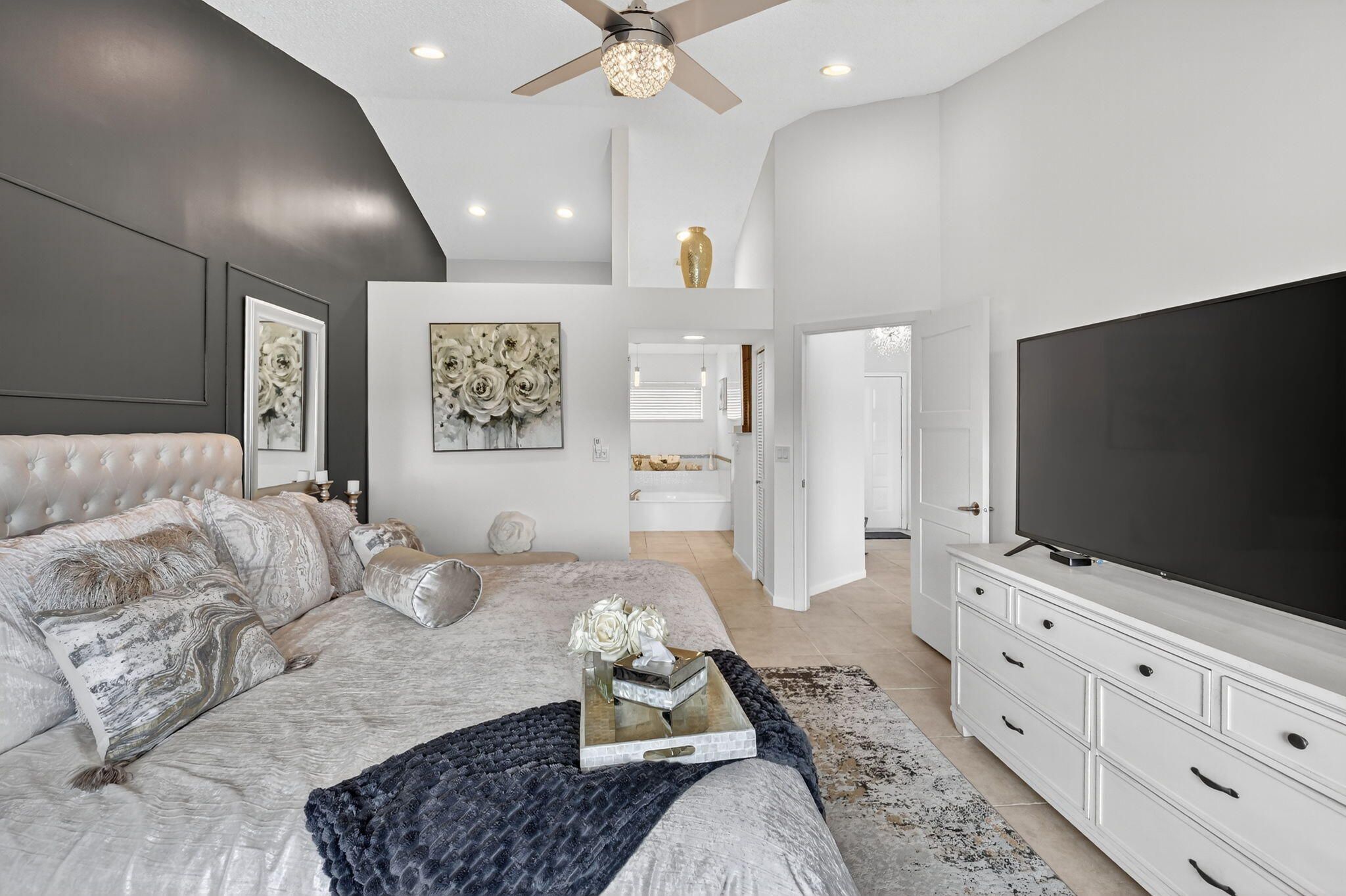 - Bar, Cathedral Ceiling(s), Entrance Foyer, High Ceilings, Pantry, Vaulted Ceiling(s), Walk-In Closet(s), Split Bedrooms, Closet Cabinetry, Garden Tub/Roman Tub, Storage, Impact Glass, Eat-in Kitchen, Kitchen/Dining Combo, Snack Bar, Dual Sinks, Main Level Primary, Sitting Area In Primary Bedroom, Separate Shower, Soaking Tub