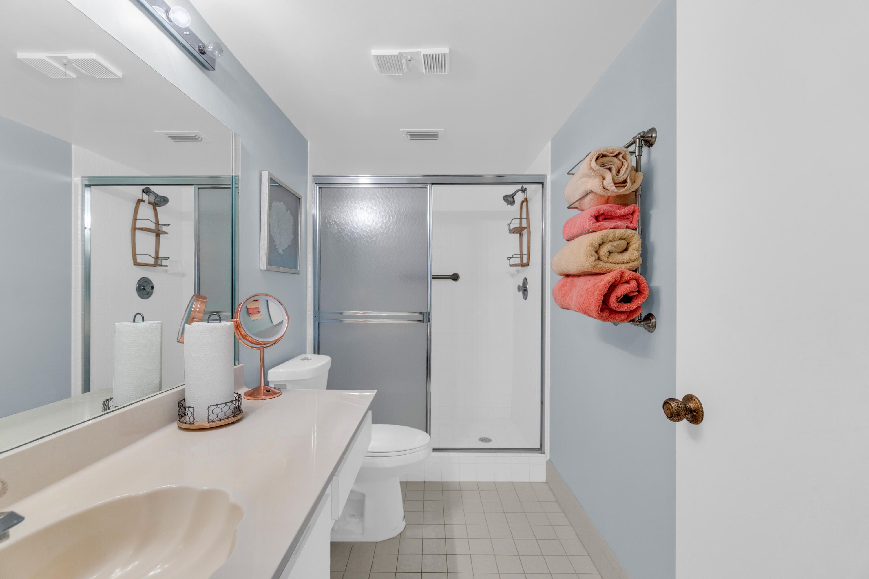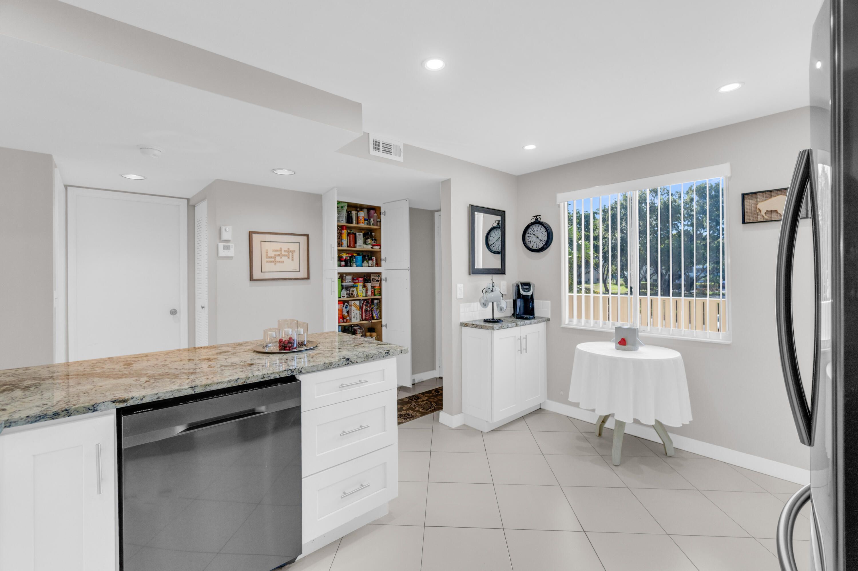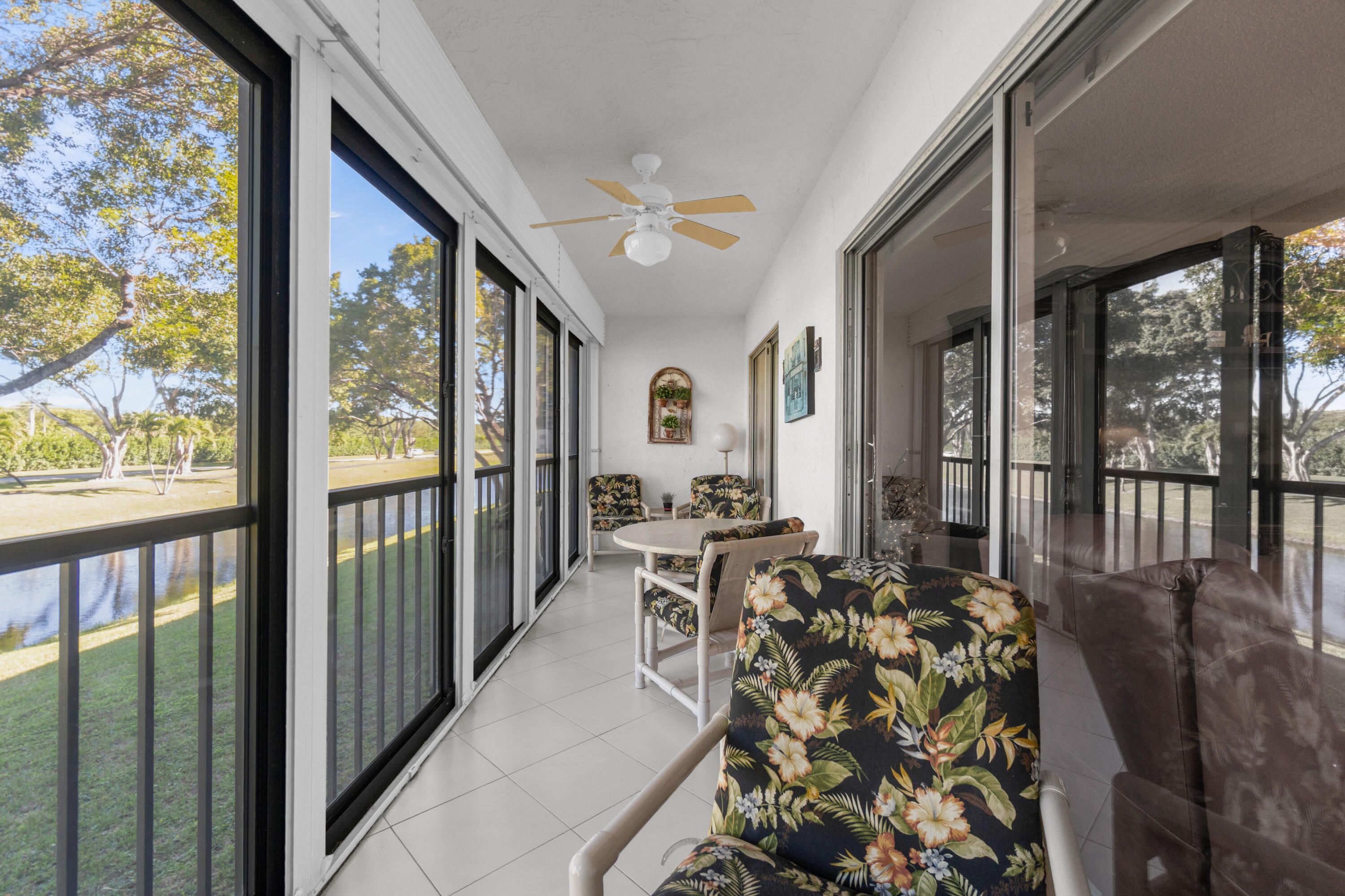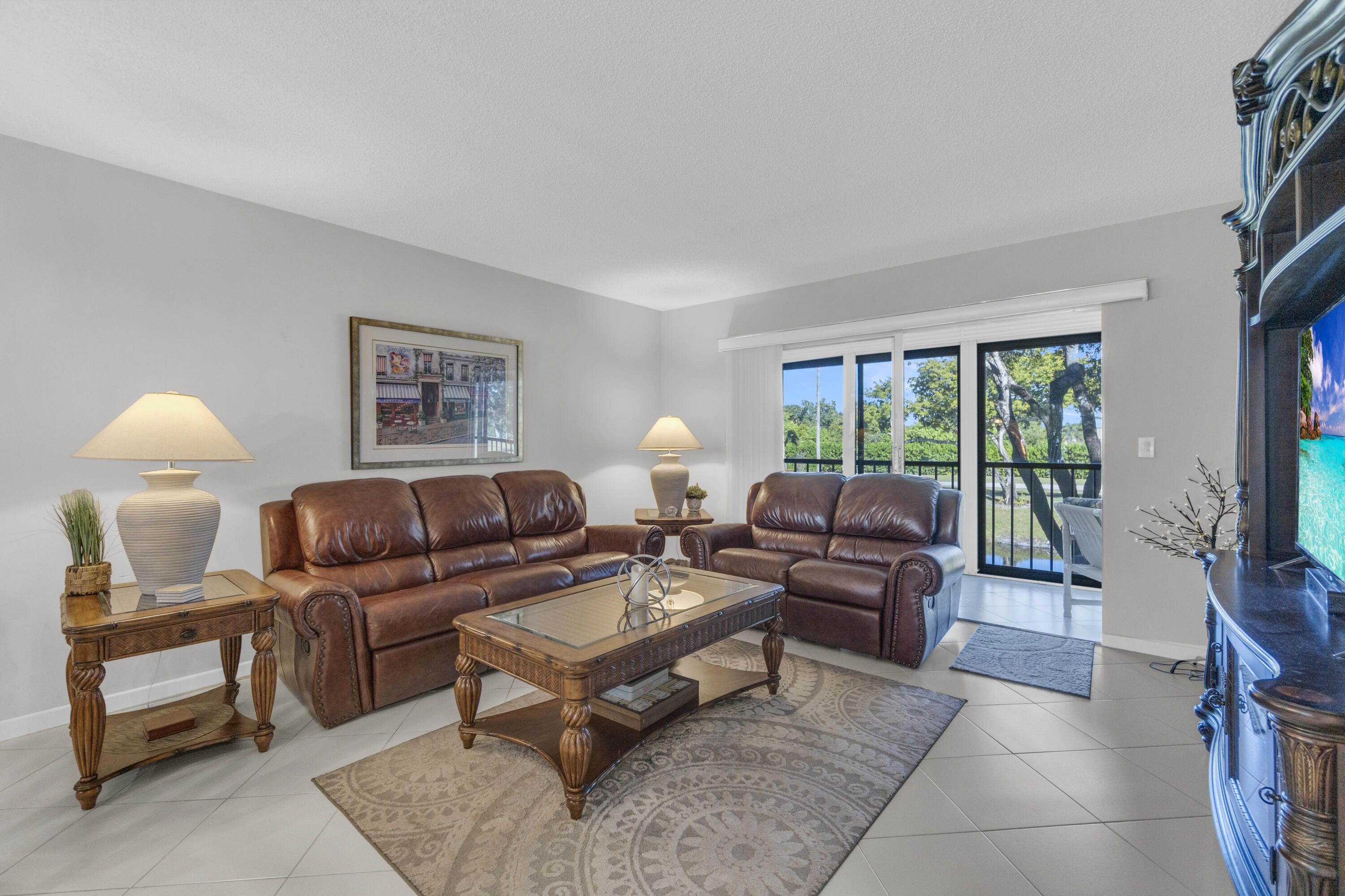 Welcome to this bright and pristine condo. Stunning open kitchen w/ white shaker cabinets, Quartz countertops, Stainless appliances, 2 pantries, and plenty of counter space. Lovely white ceramic tile throughout. Large living-dining area with access to the great enclosed balcony with nice, serene views. Makes for added living space. tastefully decorated main bedroom w/private bathroom. Another nice guest bedroom w/ bathroom. The condo is centrally located in the community. Pool right across the street. Clubhouse is down the street. Section 3 is a great place to live in. Roof is 3 years old. NO SPECIAL ASSESSMENT!!! Don't miss out on the Magnificent renovated clubhouse and sports facilities.. 610 seat theater, 350 seat banquet room, 2 card rooms, billiard room, aerobic and weight rooms, indoor pool, 9 pickleball, 4 Har Tru tennis courts, 3 paddle tennis courts, and clubs galore. Welcome to paradise!!! VERY ACTIVE 55+ COMMUNITY!!!