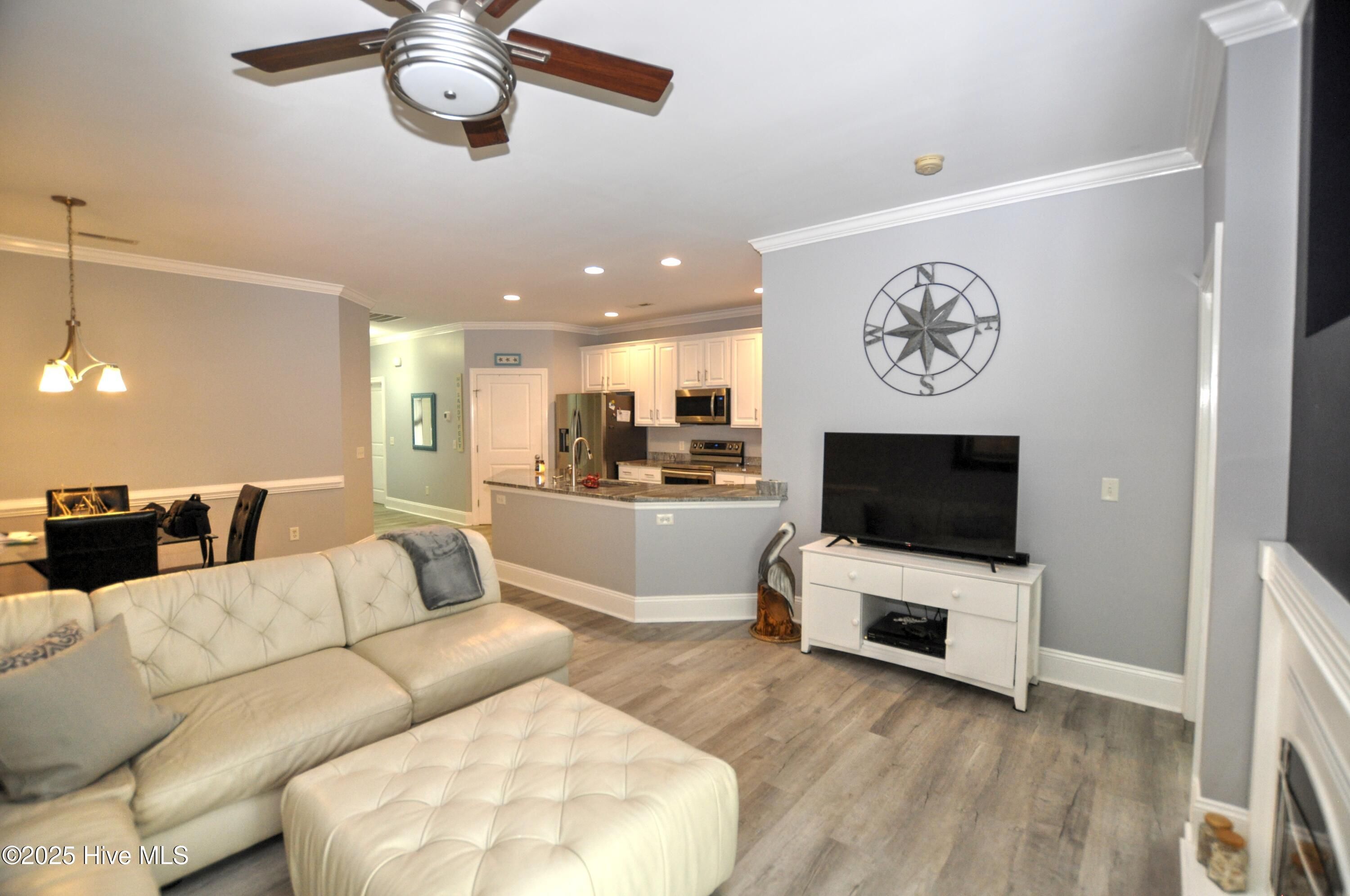 Welcome to this charming 2-bedroom, 2-bath single-story townhome, ideally situated between Ocean Isle Beach and Sunset Beach. With an inviting front porch perfect for morning coffee and a thoughtfully designed open floor plan, this home combines comfort and convenience in a location close to grocery stores, pharmacies, restaurants, banks, and local shops. Inside, you'll find LVP throughout and tiled bathrooms, a cozy electric fireplace, and a spacious living area that flows seamlessly to the fenced and tiled patio with storage closet via glass sliders. The large kitchen features granite countertops, stainless steel appliances, and a walk-in pantry, offering both style and functionality. The guest bedroom features a vaulted ceiling, LVP flooring and a large window providing an abundance of light. The owner's suite boasts a vaulted ceiling, walk-in closet, double vanity, and walk-in shower for a spa-like retreat. Whether you're seeking a primary residence, vacation getaway, or investment opportunity, this townhome is a perfect fit—just minutes from the sand and surf!