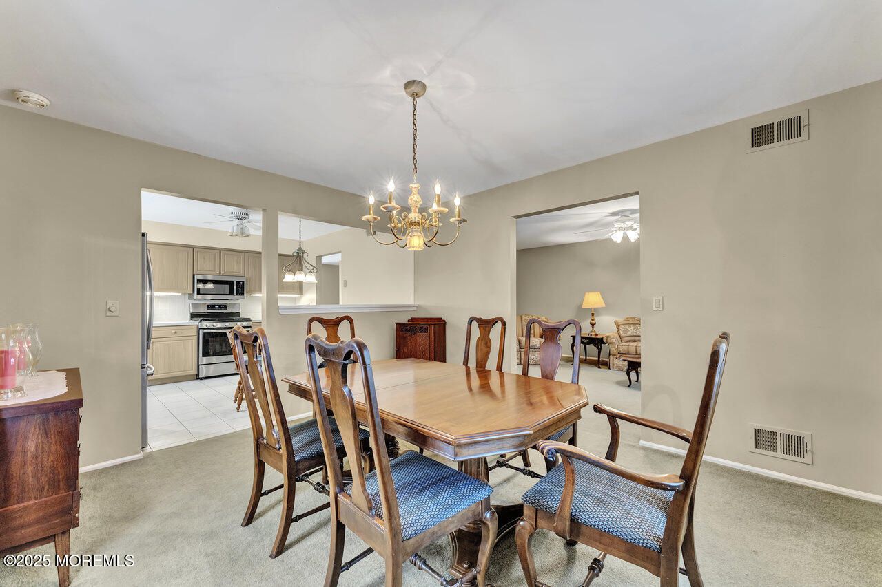 The Burchfield, largest model in the desirable 55+ active community of Lions Head Woods. This home has everything you are looking for. Large entry foyer, living room, dining room and newer eat-in-kitchen with stainless steel appliances. Family/recreational room opens onto both a three season room and a patio. Master bedroom with private bathroom, walk-in closet and disappearing stairs to attic storage. Home has a nice sized second bedroom with two double closets. Second full bath, laundry room and a nice sized garage with interior access. HVAC and furnace replaced in 2024. Come see all that this home and community has to offer. Active clubhouse, library, heated saltwater pool, tennis, pickle-ball, shuffleboard, bocce, horseshoes, pool tables, darts, corn-hole along with various clubs and classes. Close to the parkway, shopping, medical centers and the beautiful beaches of The Jersey Shore.