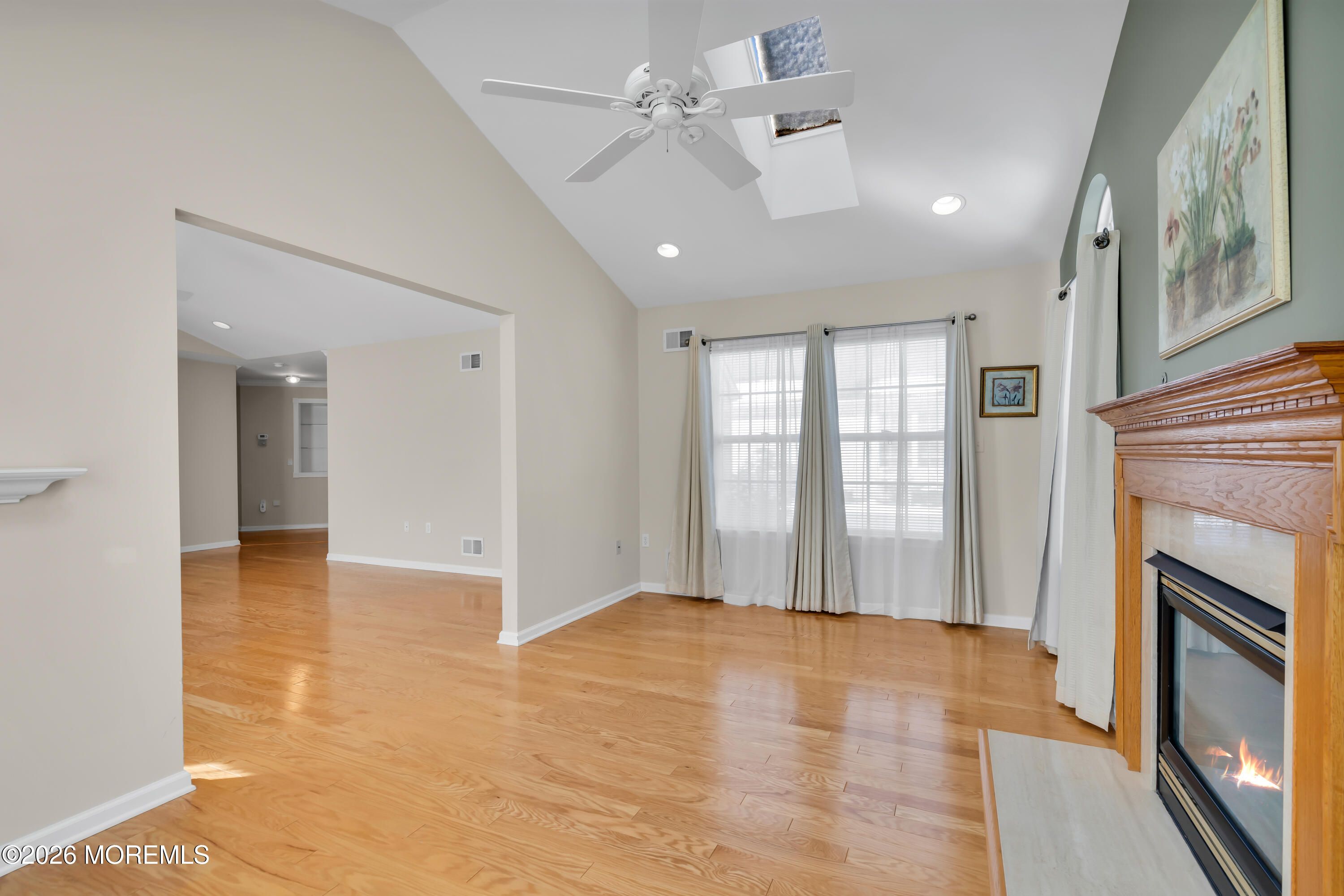 Enjoy easy, upscale living in this stunning 2 bed, 2 bath ranch home in the Fairway 55+ community in Lakewood! With beautiful hardwood floors throughout and 2 cozy gas fireplaces, this home is warm, welcoming, and perfect for everyday comfort. You'll love the spacious layout with a den, living room, and a separate dining room for hosting. The eat-in kitchen features double ovens and plenty of room to cook and gather. The primary bedroom offers a large closet and a relaxing en-suite bath with a soaking tub and double vanity. A laundry room and two-car garage add everyday convenience. Enjoy resort-style amenities including an outdoor pool, gym, tennis courts, clubhouse and nearby golf course. Don't miss out on this Lakewood gem!
