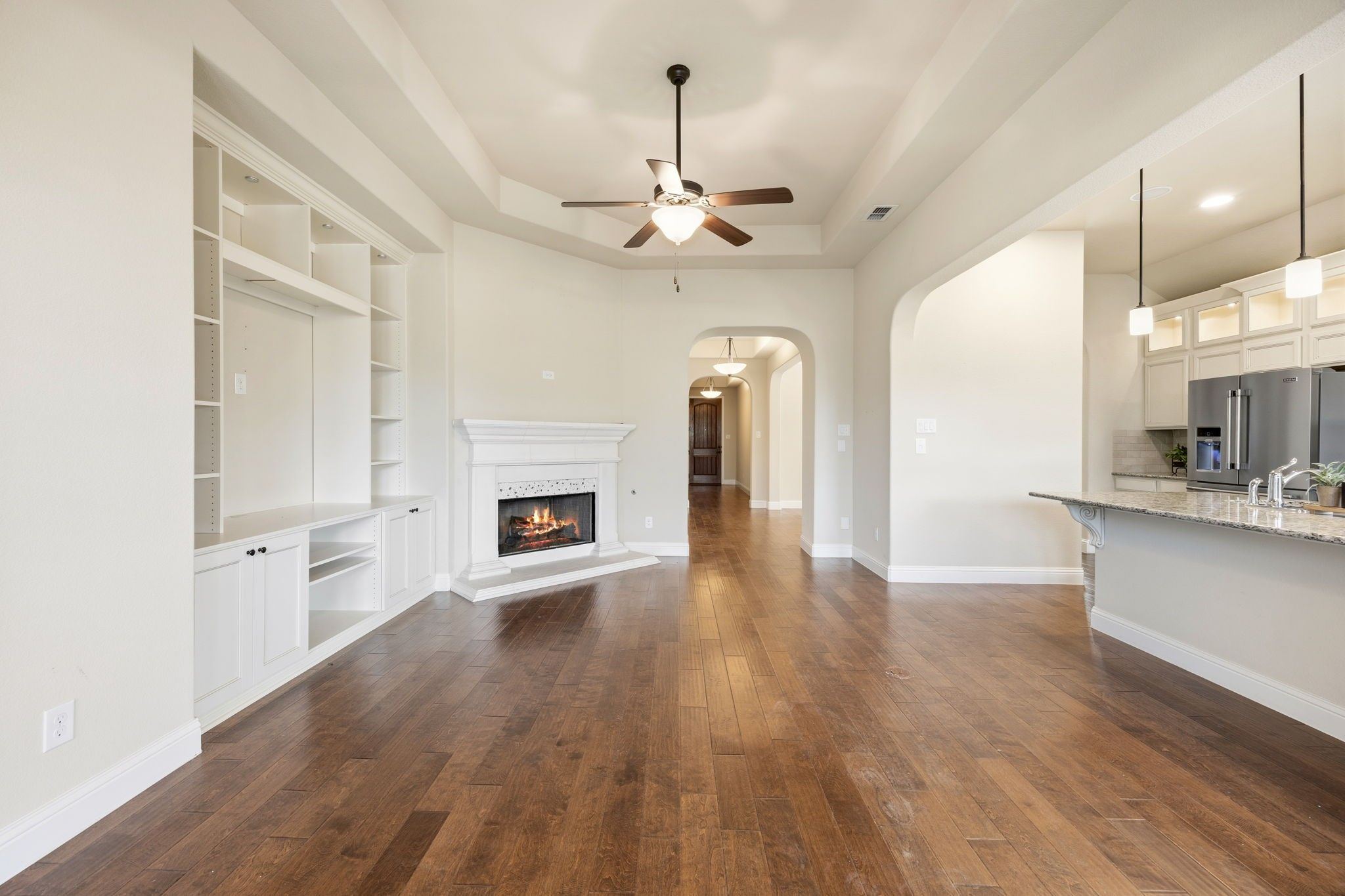Welcome to 720 Louisville Rd, located in Isabella Village—an established 55+ community known for its welcoming atmosphere where neighbors know and care for each other. From the moment you arrive, the charming front porch invites you to slow down and enjoy everyday moments. Inside, the home is thoughtfully designed with both comfort and function in mind. The entry and living areas feature custom built-in cabinetry and shelving with integrated lighting. The kitchen is beautifully upgraded with stainless gas appliances, granite countertops, and stacked glass-front cabinetry with lighting. A central vacuum system with a convenient kitchen kick plate makes everyday cleanup simple and efficient. Storage is exceptional throughout, with custom shelving and organization in the pantry, office, hall closets, laundry room, and garage. A whole-home sound system with built-in speakers in the kitchen, dining area, study, and back patio offers seamless audio with individual room controls. The backyard is designed for both relaxation and entertaining, featuring an expanded paver patio, custom stone bench seating, and a storage shed with an extended concrete pad. Native Texas landscaping keeps maintenance manageable. Mature red oaks provide shade and structure, while weeping cherry, Rose of Sharon, lilacs, crepe myrtles, magnolias, and other plantings add color and seasonal interest. Honeysuckle along the back fence brings a subtle fragrance in the warm summer evenings. Additional highlights include decked attic for additional storage, a permanent Christmas lighting package, smoke-free and pet-free history, and roof replaced in May 2024. Offering $5K carpet allowance!