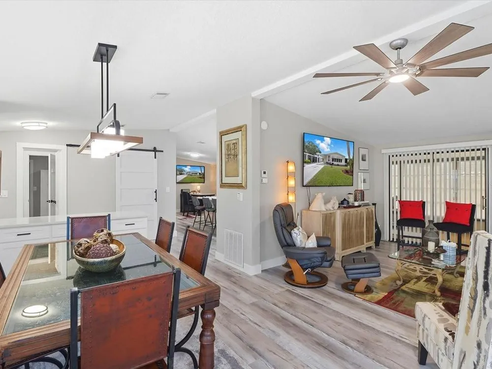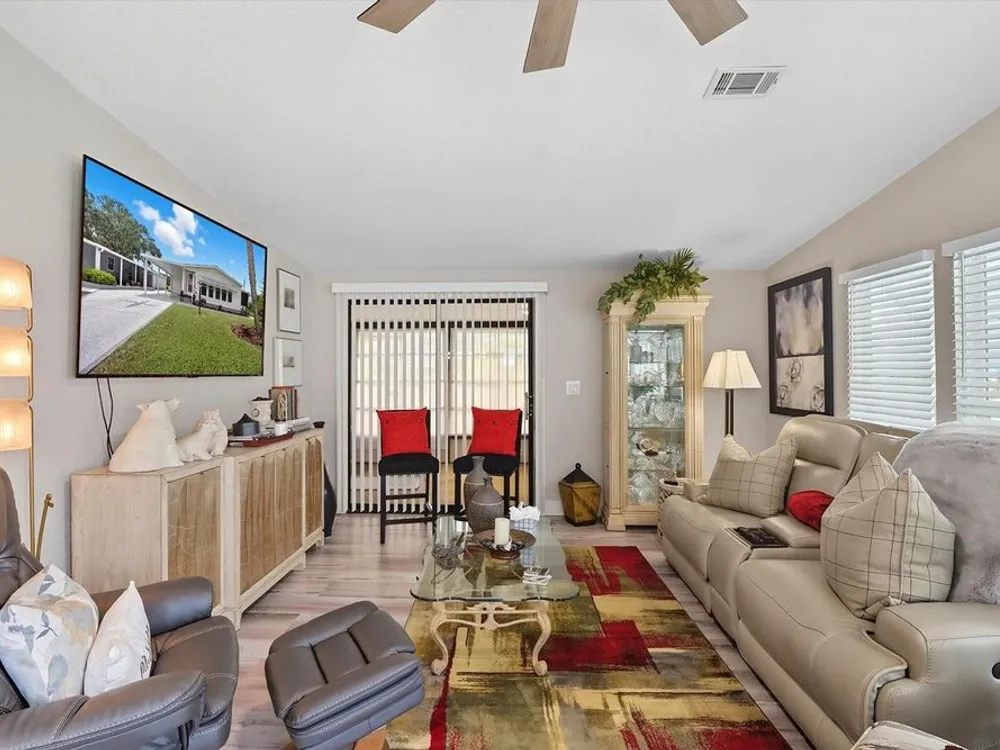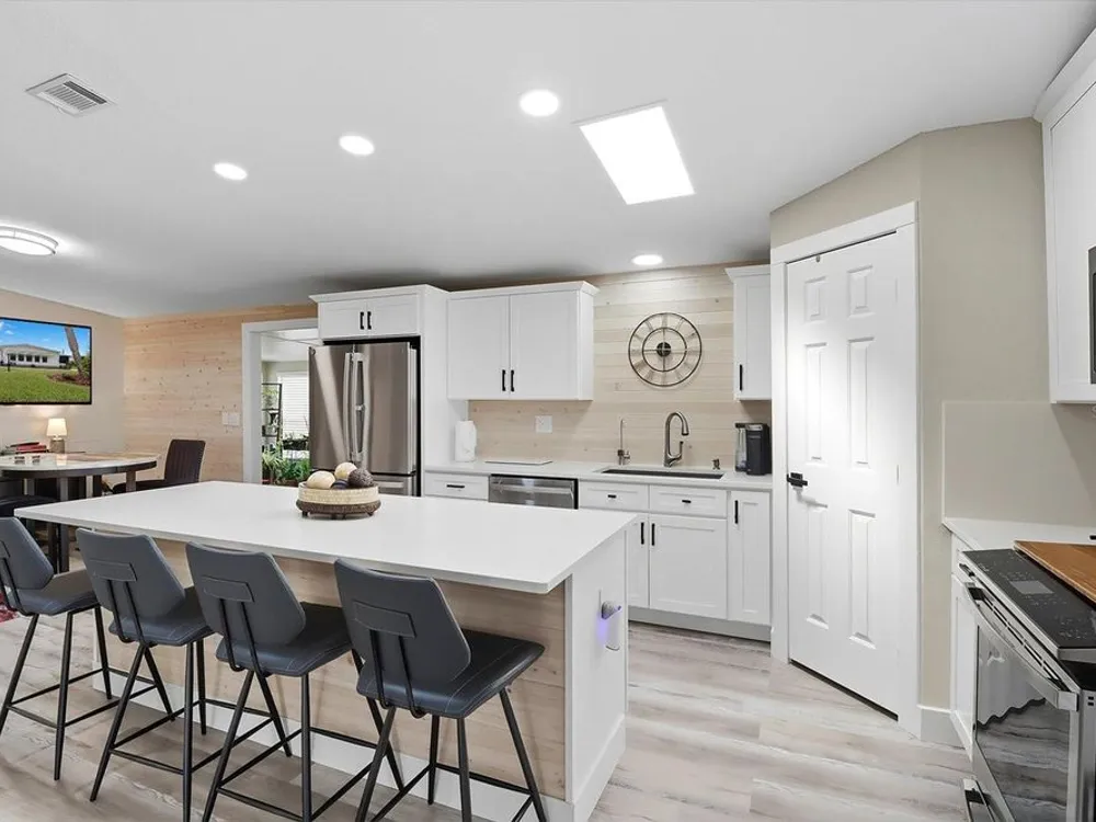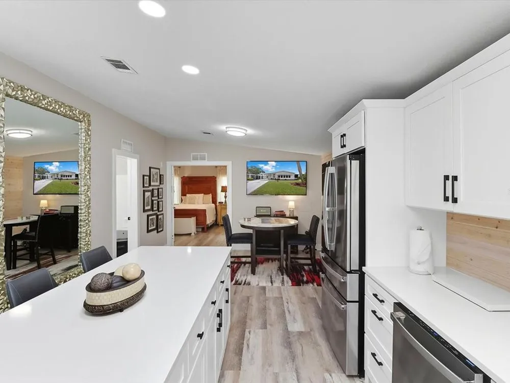 COMPLETELY RENOVATED WITH UPGRADED FEATURES! 1,641 sq ft of living space. No Bond, No Popcorn Ceilings, No Carpet !! Home overlooks the par 5, 12th green of the Orange Blossom Country Club course. New wood cabinets and Quartz countertops throughout. 2025 GE Profile Appliances. In the house Laundry. Bathroom renovations include new showers with ceramic tile to the ceilings and upgraded glass doors. Many other features such as Reverse Osmosis unit in Kitchen, Skylights, walk-in kitchen pantry, vaulted ceilings, luxury vinyl tile, travertine flooring, all new molding, 2022 HVAC, Roof 2017, 20 x 10 Golf Car Garage/Workshop. Located within the Village of Country Club Hills the homeowners are a short golf cart ride to medical care, entertainment, pools, pickleball, golf courses, etc, etc. Home must be seen to be appreciated. Nothing left for the new homeowner to do!