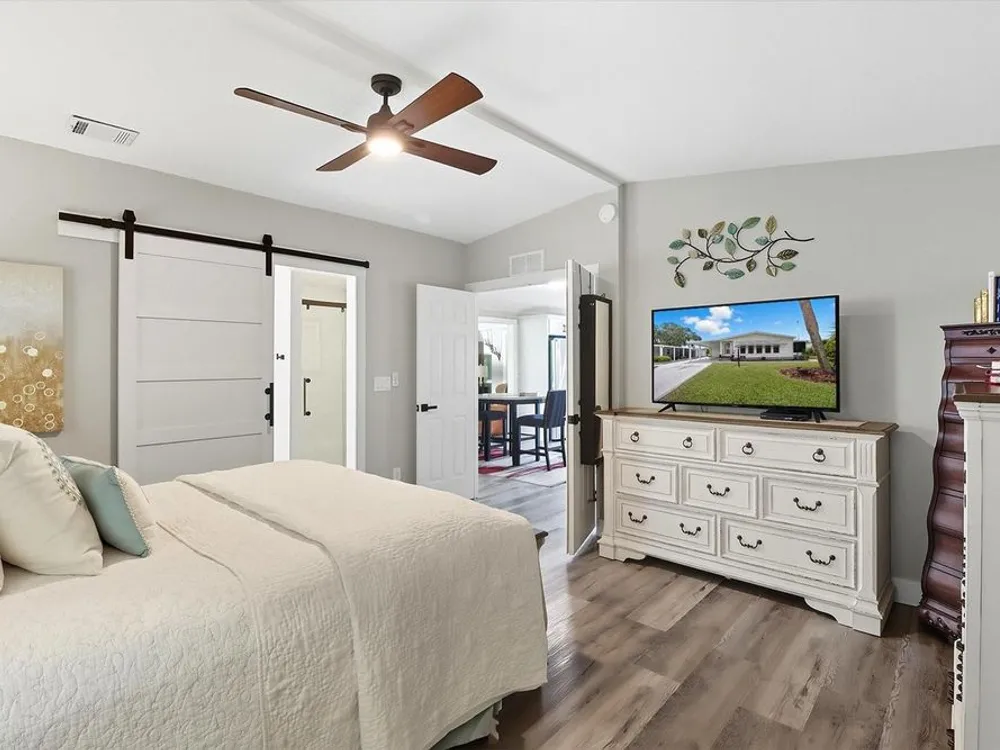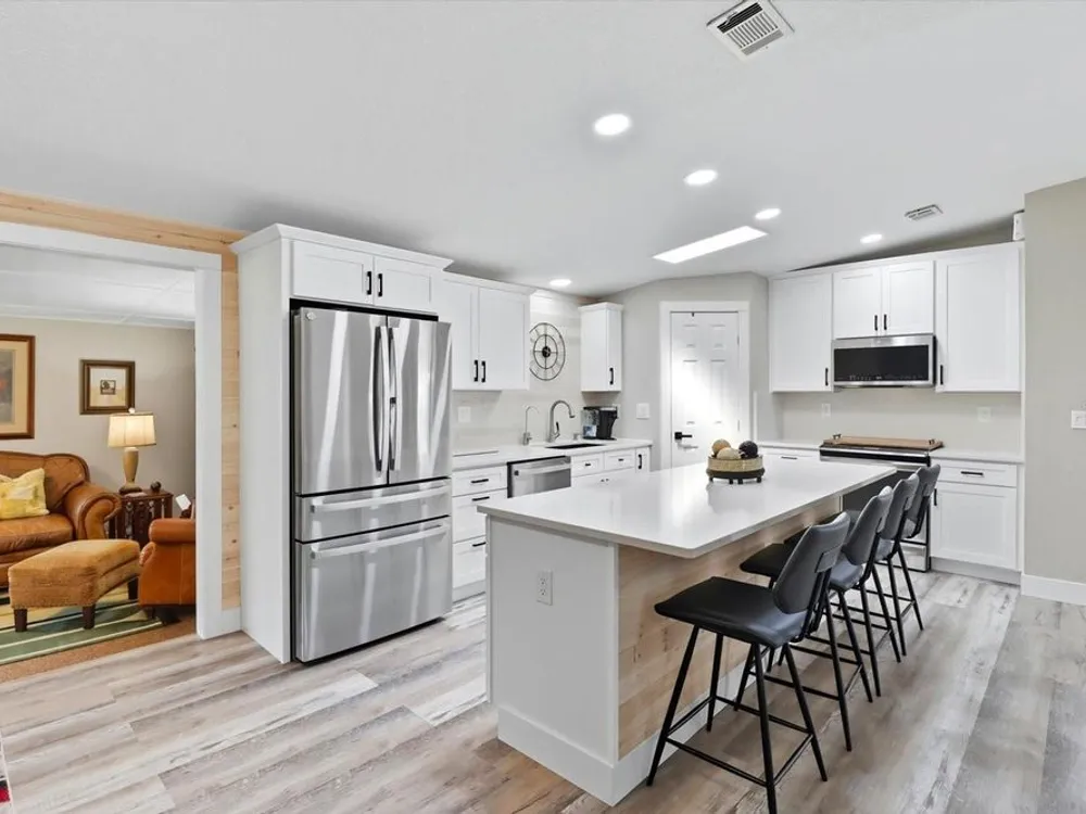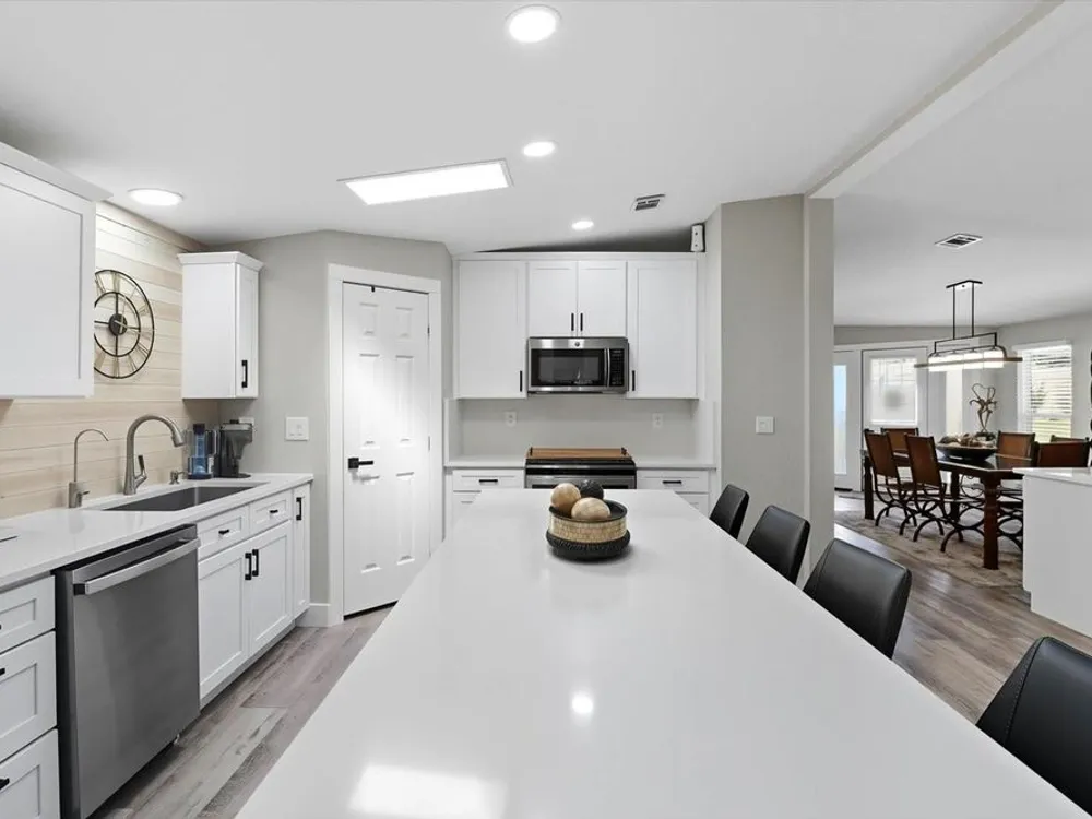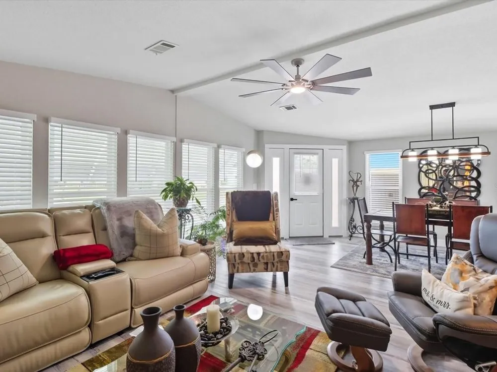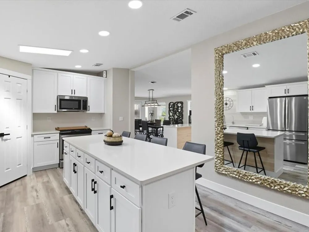 COMPLETELY RENOVATED WITH UPGRADED FEATURES! 1,641 sq ft of living space. No Bond, No Popcorn Ceilings, No Carpet !! Home overlooks the par 5, 12th green of the Orange Blossom Country Club course. New wood cabinets and Quartz countertops throughout. 2025 GE Profile Appliances. In the house Laundry. Bathroom renovations include new showers with ceramic tile to the ceilings and upgraded glass doors. Many other features such as Reverse Osmosis unit in Kitchen, Skylights, walk-in kitchen pantry, vaulted ceilings, luxury vinyl tile, travertine flooring, all new molding, 2022 HVAC, Roof 2017, 20 x 10 Golf Car Garage/Workshop. Located within the Village of Country Club Hills the homeowners are a short golf cart ride to medical care, entertainment, pools, pickleball, golf courses, etc, etc. Home must be seen to be appreciated. Nothing left for the new homeowner to do!