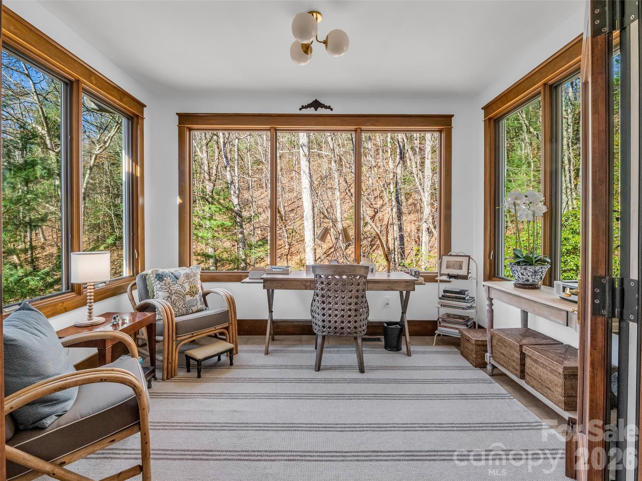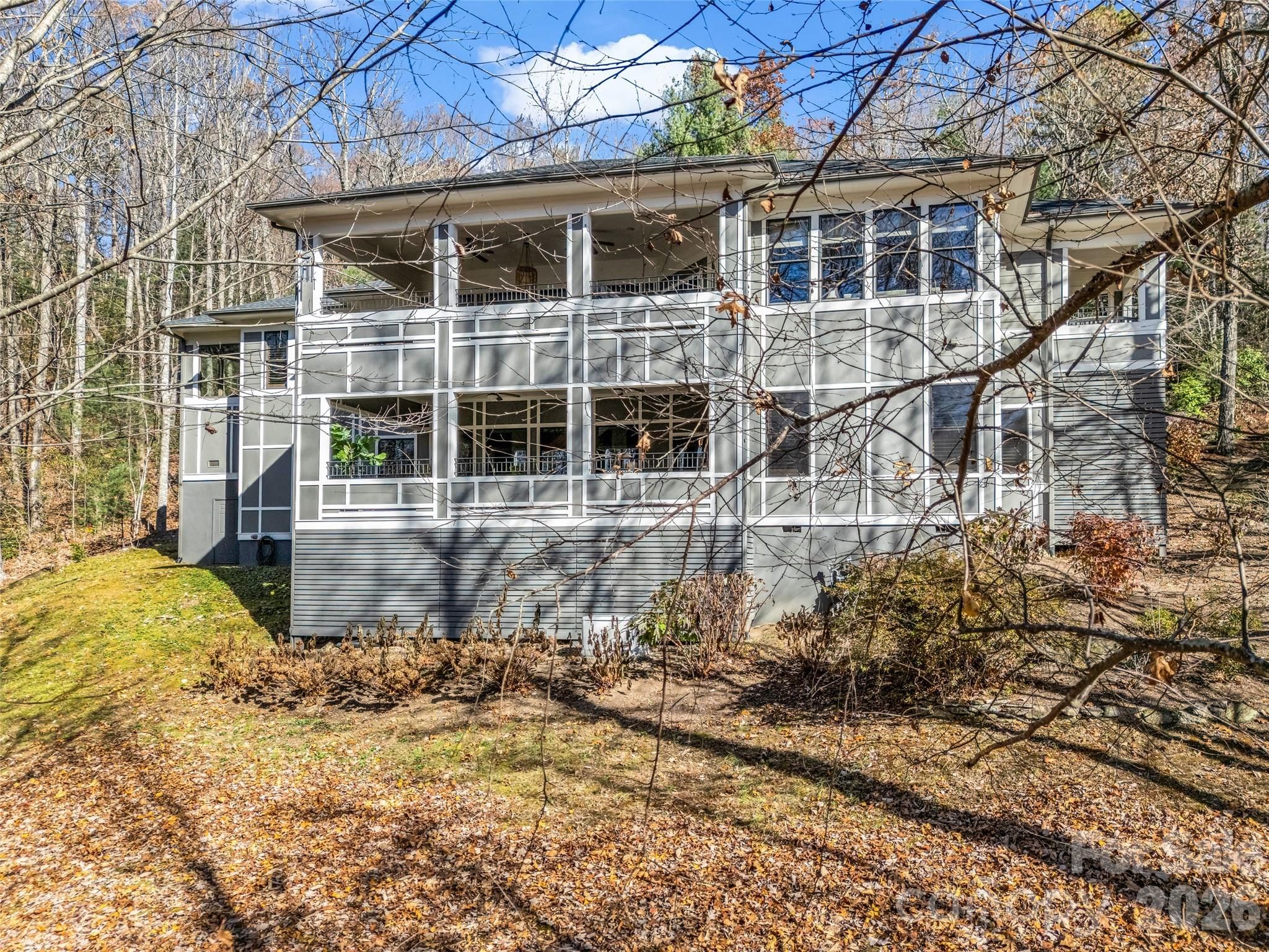Privately nestled on over an acre in one of Flat Rock’s most desirable private golf communities, this stunning custom home offers approximately 4,400+ square feet, 4 bedrooms, and 4 baths—blending refined craftsmanship with elevated mountain living. From the moment you arrive down the long, flat driveway (a rare feature in the mountains), you're welcomed by mature hardwoods, natural landscaping, and a sense of quiet sophistication. Step through the front door into the bright and open living room where two sets of expansive corner windows flood the space with natural light, perfectly framing the wooded surroundings. A freestanding gas fireplace anchors the room, while seamless access to a large covered balcony creates an effortless indoor-outdoor flow—ideal for entertaining or simply enjoying the peaceful setting. The gourmet kitchen is both functional and well-appointed, designed with entertaining in mind. Warm wood cabinetry, quartz countertops, a classic subway tile backsplash, and a spacious breakfast bar are complemented by premium appliances including a 48" Sub-Zero refrigerator/freezer, a professional six-burner Wolf gas range with double wall ovens and Pro island hood, plus a Bosch dishwasher and built-in ice maker. The kitchen connects seamlessly to the dining area, creating a cohesive and inviting gathering space. The main-level primary suite serves as a serene retreat, featuring a sunlit bonus sitting area, a custom walk-in closet, and a newly renovated spa-like bath with heated floors. Thoughtfully designed for comfort and privacy, this space captures the essence of relaxed luxury. The lower level expands the home’s versatility with a large open flex space, perfect for recreation or lounging, along with two guest bedrooms—each with its own en suite bath and walk-in closet. A dedicated home theater equipped for modern streaming and connectivity offers an elevated entertainment experience. Outdoor living is equally impressive, with two expansive covered terraces designed for year-round enjoyment of the mild mountain climate. Whether hosting guests or unwinding in nature, these spaces provide a true extension of the home. Completing the property is a spacious two-plus car garage with a dedicated golf cart bay and workshop area, offering both practicality and flexibility. Located just minutes from the Kenmure Clubhouse, dining, golf, fitness center, pools, and tennis courts, this home delivers a rare combination of privacy, convenience, and timeless mountain elegance.