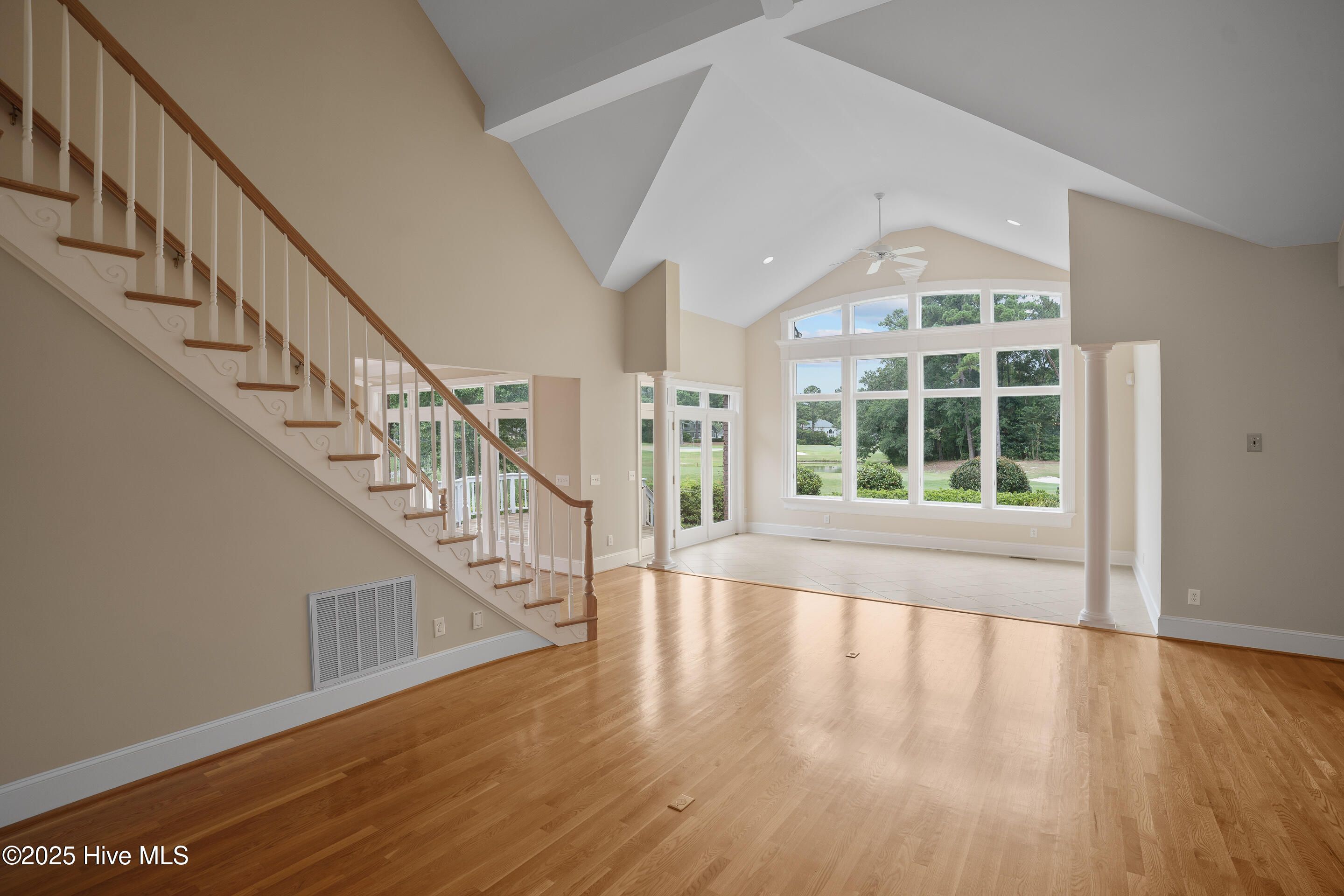 Stunning custom-built home by Kris Johnson, perfectly designed for entertaining and relaxed gatherings. With over 4,000 sq. ft. of beautifully maintained living space, this artistic and energy-efficient home is nestled on a quiet lot overlooking the 5th and 6th holes of the Porters Neck golf course.From the oversized 3-car garage to the floor-to-ceiling windows that flood the home with natural light, every detail invites guests to feel right at home. Host unforgettable evenings in the spacious living areas, by the fireplace, or in the sunroom with panoramic golf views. The designer kitchen features Corian countertops and custom cabinetry--ideal for prepping and serving in style.Artful touches like custom ceilings and murals add charm, while recent upgrades bring modern comfort: Generac whole-home generator, new HVAC systems, remodeled primary bath with heated tile and glass shower, updated guest bath, new decking, exterior paint, and fresh interior paint throughout.Enjoy outdoor living in the lush, irrigated yard or relax in the sunroom as the sun sets over the fairway. Original owners have cared for this home with pride--don't miss this entertainer's dream in Porters Neck Plantation.