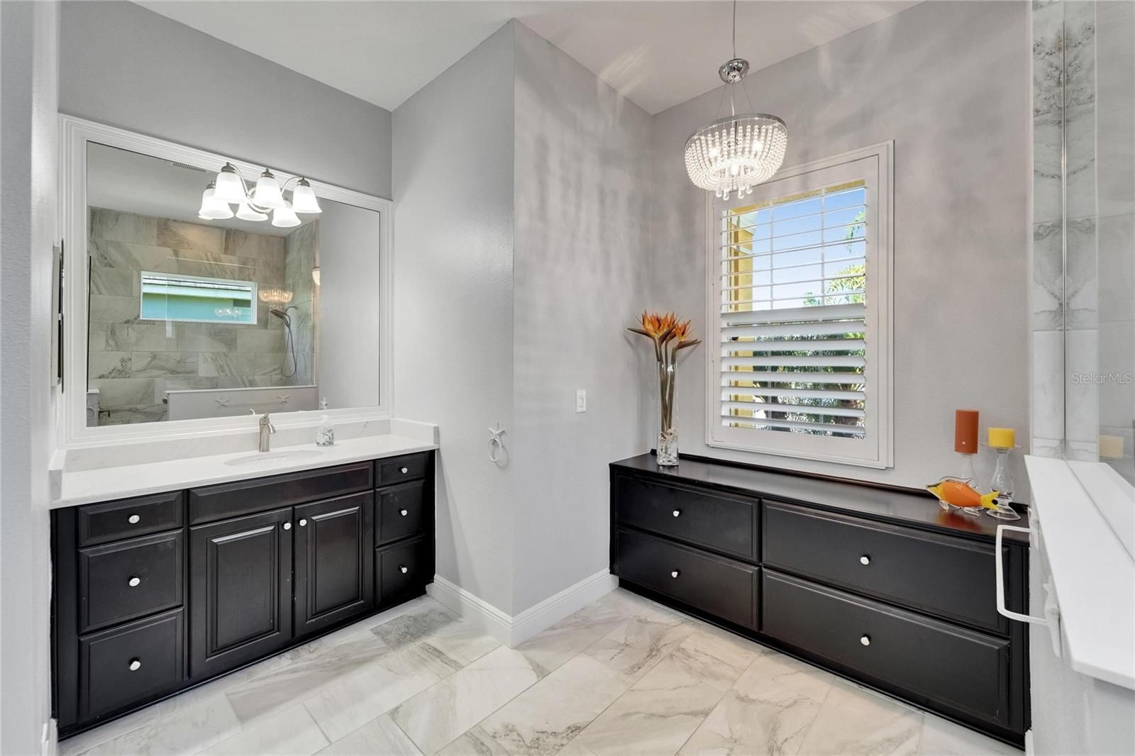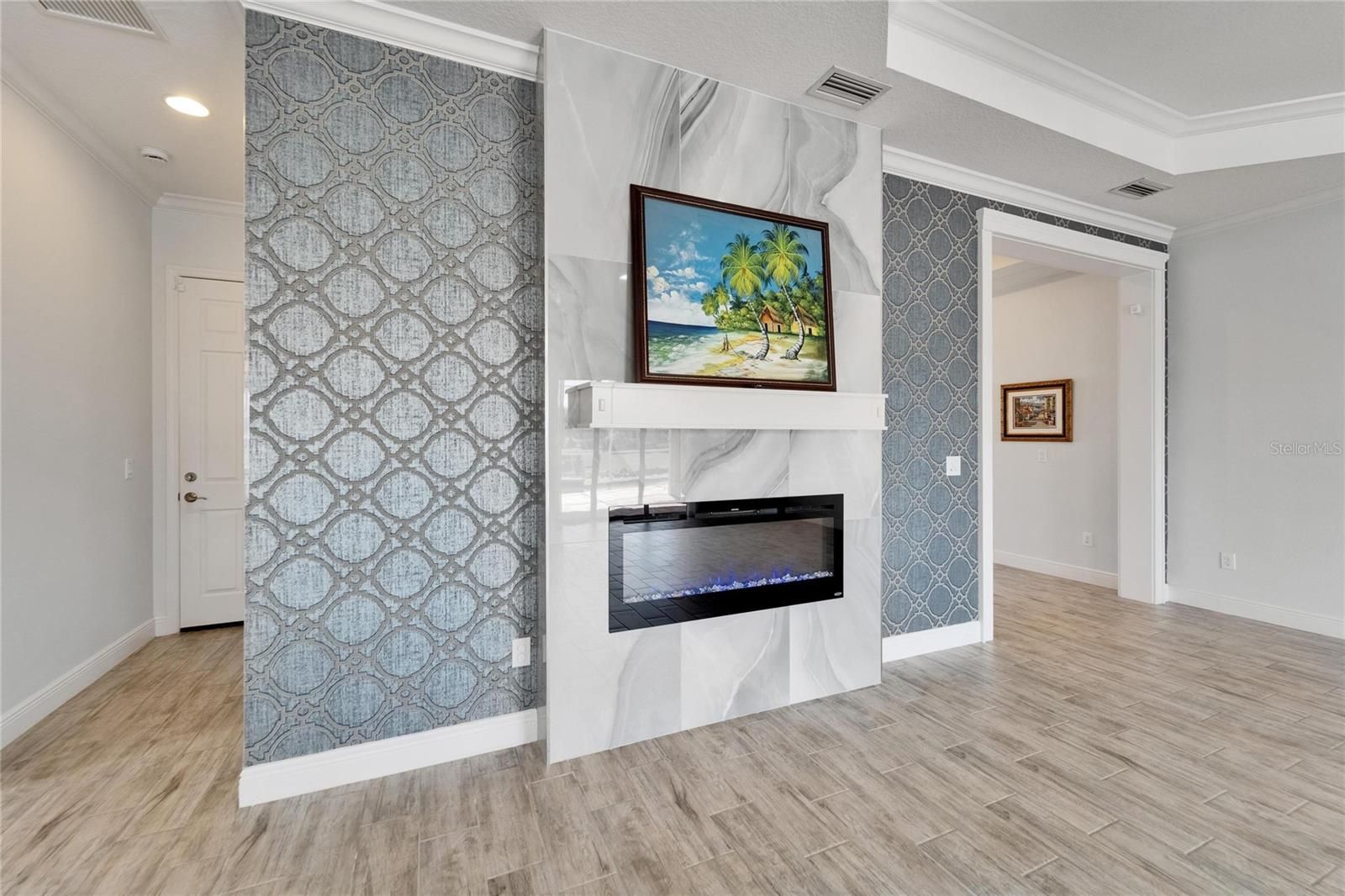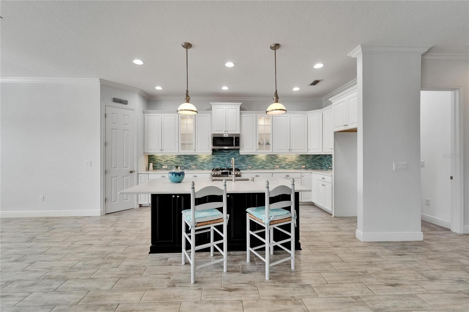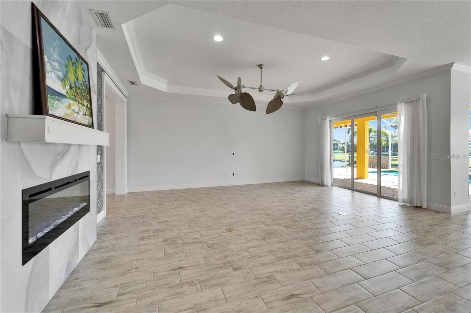 - Ceiling Fan(s), Crown Molding, High Ceilings, Kitchen/Family Room Combo, Open Floorplan, Main Level Primary, Stone Counters, Tray Ceiling(s), Walk-In Closet(s), Window Treatments