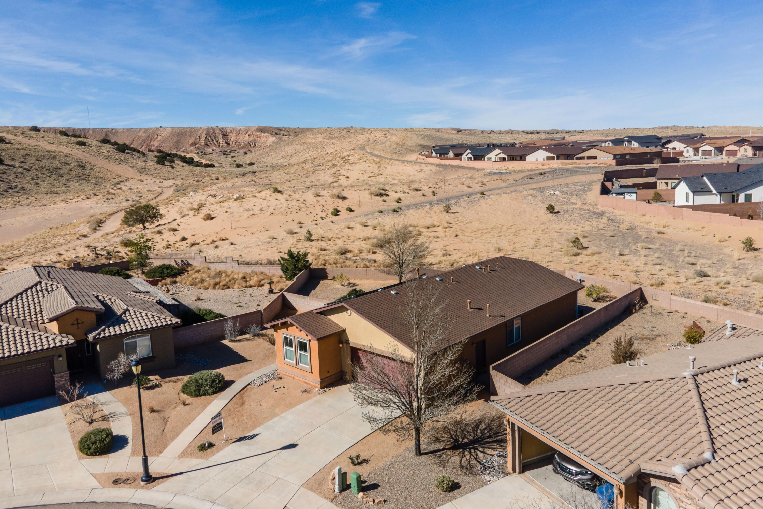 This prior model, located in a quiet cul de sac, has always been a favorite!! Oversized lot w/unobstructed views of El Cerro open space & arroyo in the back offers plenty of privacy! This 1554 sq ft plan lives so much larger! Decorative bead board on the wall of the generous great room, cozy fireplace & built-ins invite you to relax or entertain; formal dining area & breakfast nook offers 2 eating areas or options for office/studio. Window seat in generous primary bedroom w/walk-in closet. Double sinks in primary bath. Plenty of upgrades: wood floors, super cute built-ins in breakfast nook & more...all professionally designed. Don't forget the great amenities in the 10,000+ sq ft clubhouse in this award-winning 55+ community! Don't miss this affordable opportunity to be a part of Jubilee!