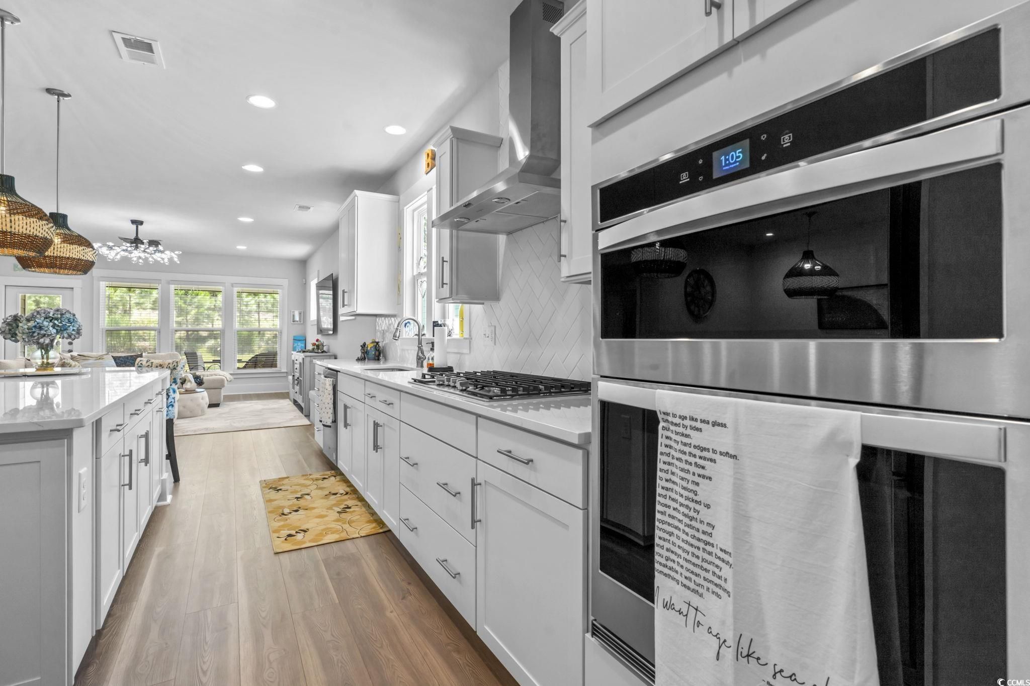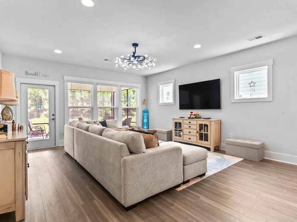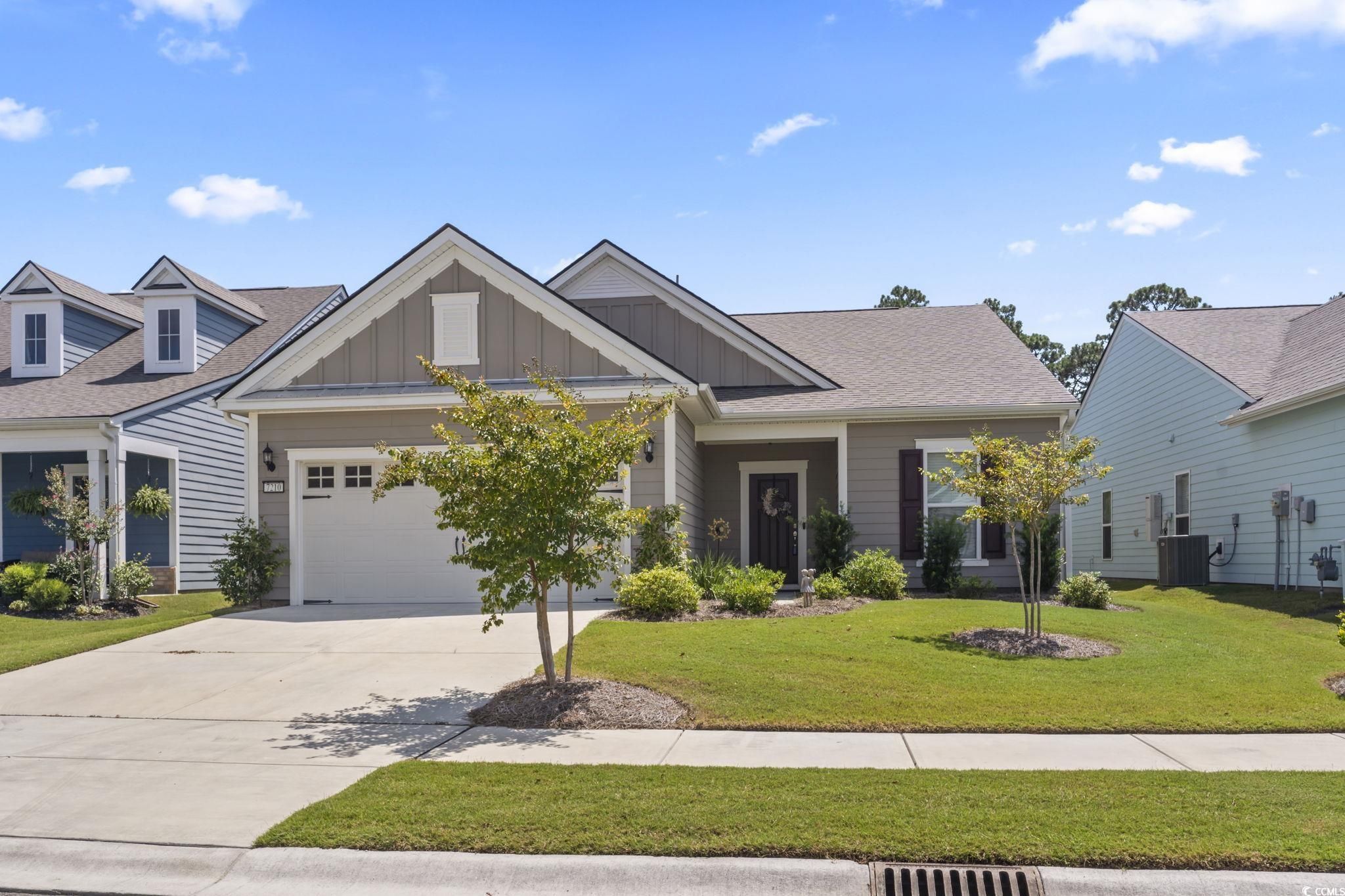 Welcome to Del Webb, the premier 55+ community in the heart of Myrtle Beach! This stunning Martin Ray model features 3 bedrooms, 2 bathrooms, and an oversized screened in lanai with a patio, perfectly blending style, comfort, and functionality. As you enter through the foyer, a cozy study with French doors sits to your right which is ideal for a home office or library. The open concept family room and gourmet kitchen serve as the heart of the home, highlighted by white cabinetry, a custom backsplash, high-end stainless steel appliances including a gas stove, quartz countertops and a custom pantry. A large breakfast bar and spacious dining area make this the perfect space for entertaining. The primary suite, located at the back of the home, boasts tray ceilings, a spa like ensuite with a custom tiled walk-in shower, double vanities, solid-surface counters, and a generous walk-in closet. Just outside the suite, you’ll find a laundry room with custom cabinetry for added convenience. On the opposite side of the home, two additional bedrooms with large closets share a full bathroom. A handy drop zone leads directly to the oversized two-car garage. Step outside to your expansive screened in lanai and patio which is ideal for relaxing, grilling, or hosting friends in your private backyard. Additional upgrades include luxury vinyl plank flooring throughout the main living areas, upgraded lighting and ceiling fans, and all appliances, including the washer and dryer and much more!This home also runs on natural gas for added efficiency. Del Webb’s amenities are unmatched, offering a vibrant, active lifestyle. Residents enjoy daily activities, monthly events, and access to the Amenity Center with indoor and outdoor pools, a state-of-the-art fitness center, and sports courts. You’ll also receive membership to the prestigious Grande Dunes Ocean Club, granting exclusive access to the beach and clubhouse. Conveniently located near golf, shopping, hospitals, restaurants, and all that Myrtle Beach has to offer, this home is priced to sell and presents an incredible opportunity in one of the area’s most sought after communities. Don’t miss your chance to make it yours!