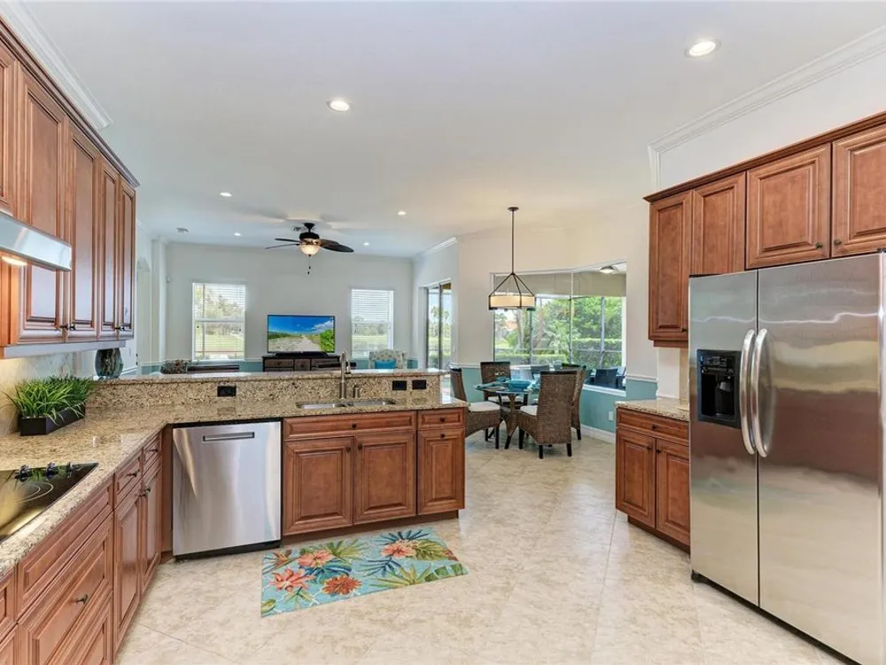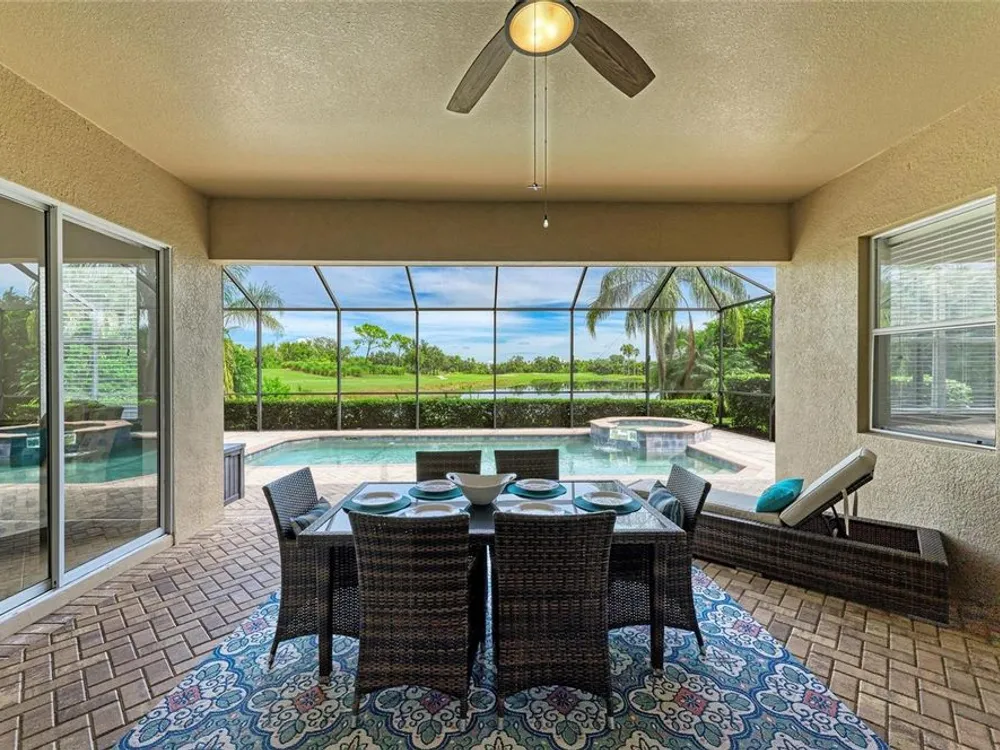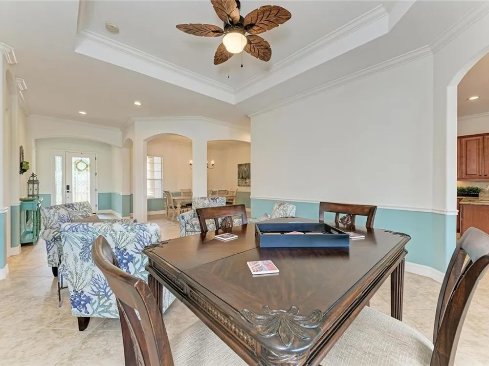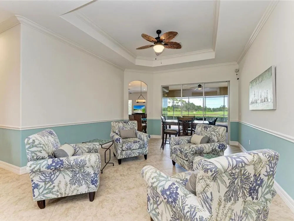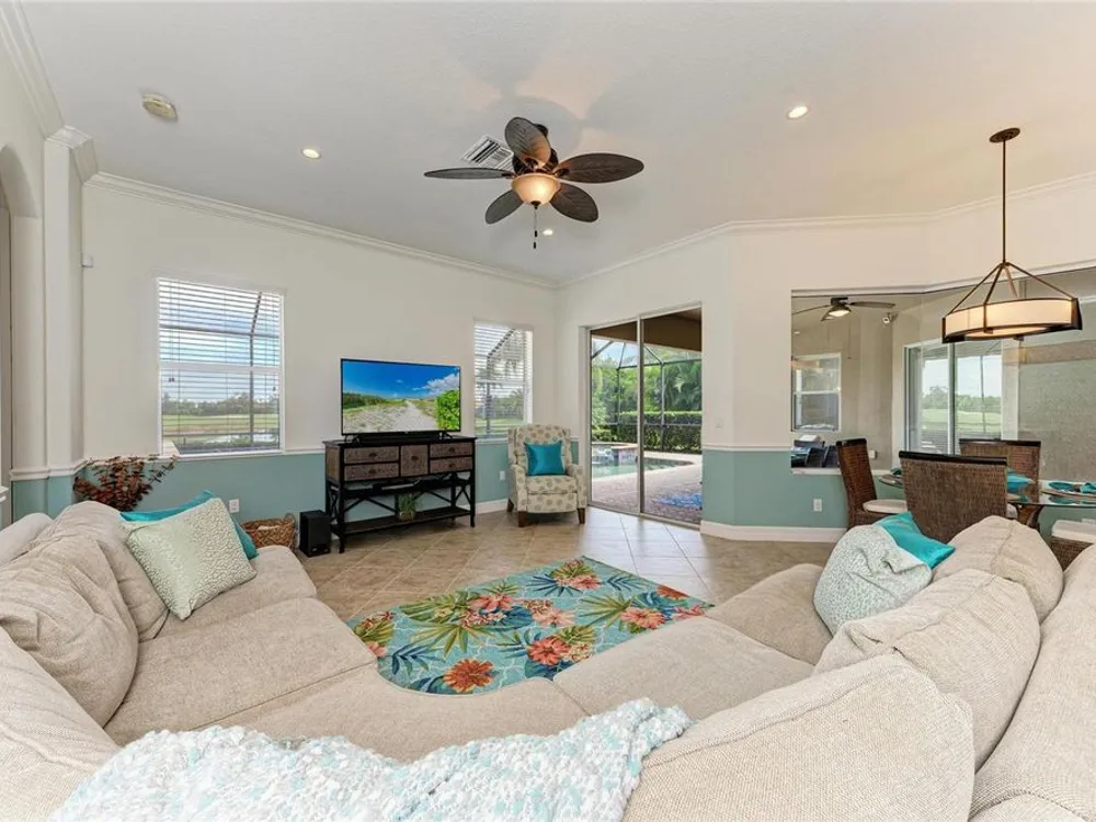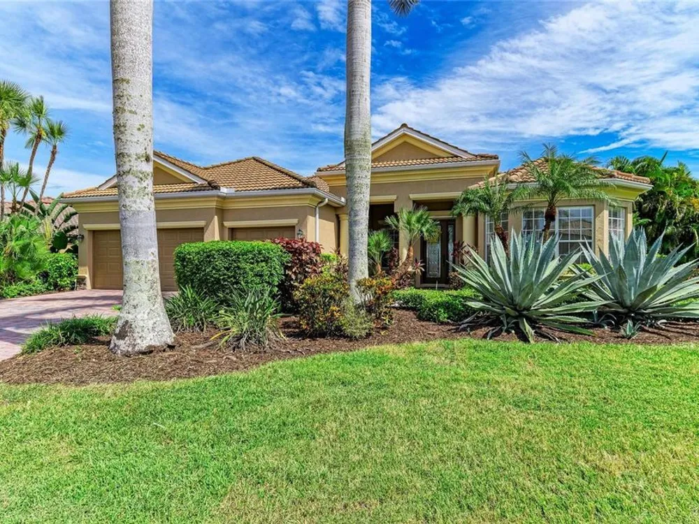 Searching for your forever home or the perfect winter retreat? Look no further than this STUNNING GOLF DEEDED ESTATE PROPERTY in the sought-after, gated resort community of River Strand Golf & Country Club. Located on one of the LARGEST LOTS in River Strand, this beautifully appointed home offers over 2,900 square feet of thoughtfully designed living space. With 4 bedrooms, 3 bathrooms, and a dedicated office/den, there’s room for everyone — whether you're hosting guests or enjoying peaceful privacy. Upon entry, you’re welcomed by a formal dining area and a versatile sitting or game room — perfect for entertaining or relaxing. THE OPEN CONCEPT MAIN LIVING AREA features a spacious family room and a bright, eat-in kitchen, highlighted by an aquarium window and sliding glass doors that seamlessly blend indoor and outdoor living. Step outside to your personal paradise — a large covered lanai, HEATED POOL AND SPA and expansive patio area ideal for entertaining or simply soaking in the sun. The PANORAMIC GOLF AND WATER VIEWS are truly unmatched, offering tee-to-green vistas of the first hole of the Tributary Course, along with added privacy on both sides. With a 3 car garage you will also have plenty of room for vehicles, a golf cart and toys too. This home has recently been painted both inside and out and is offered FURNISHED and move-in ready. River Strand Golf & Country Club is renowned for its 27 holes of pristine golf, but the lifestyle here goes far beyond the fairways. The community’s clubhouse is currently undergoing an exciting renovation, enhancing the restaurant, grille room, pool, spa, and tiki bar — promising an even better resort-style experience. In addition to the main clubhouse, residents enjoy access to six satellite pools, two fitness centers, tennis and pickleball courts, and a second resort-style pool at the community center. Whether you're into sports, fitness, or just relaxing under the Florida sun, there’s something here for everyone. The vibrant social calendar is packed year-round, featuring events like live music, holiday celebrations, Trivia Nights, Name That Tune competitions, and fun poolside parties — creating countless opportunities to connect with neighbors and friends. Ideally situated just minutes from I-75, River Strand offers effortless access to Sarasota, Tampa, and St. Petersburg, making commuting and day trips a breeze. You're also close to The Market Place, home to Costco, the new Target, and an expanding selection of shopping and dining options. And when it’s time to unwind, the renowned beaches of Florida’s Gulf Coast are just a short drive away! So what are you waiting for? Come tour this incredible home and experience River Strand at it's best — you might never want to leave!