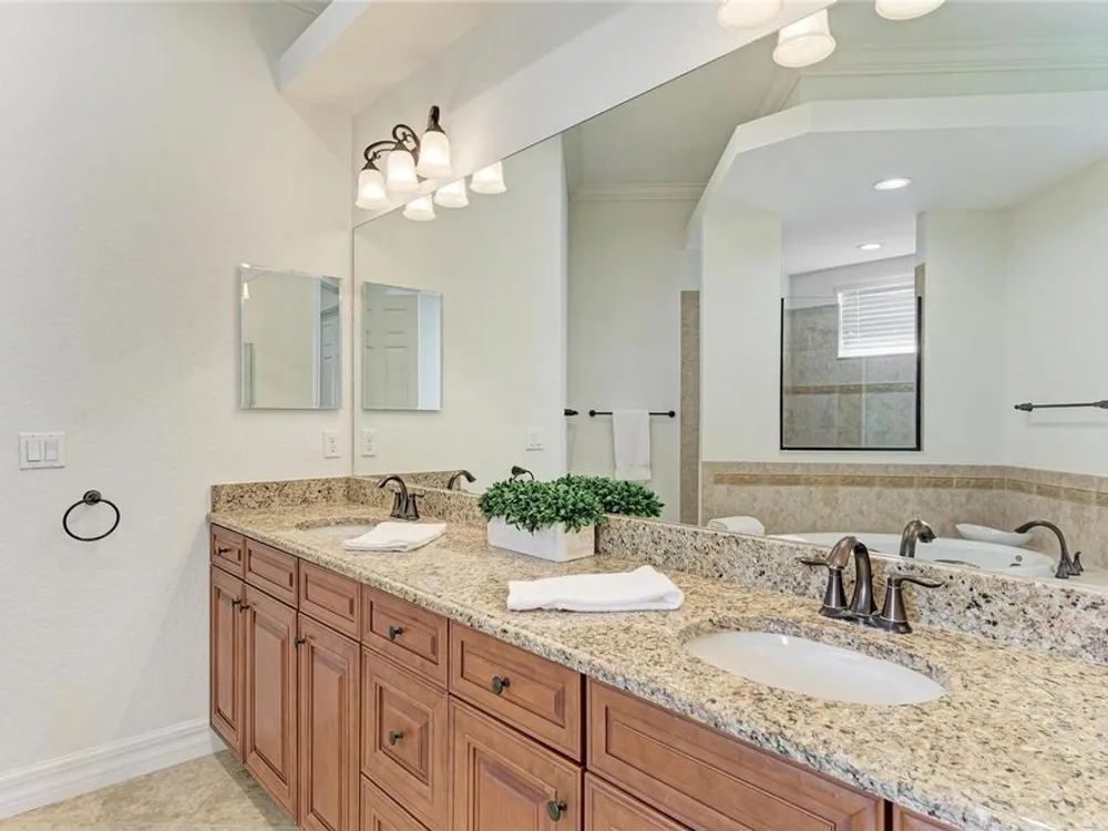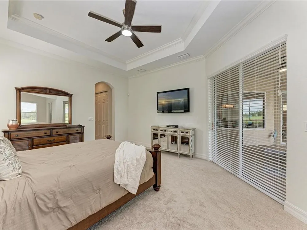- Ceiling Fan(s), Crown Molding, Eat-in Kitchen, Kitchen/Family Room Combo, Solid Surface Counters, Solid-Wood Cabinets, Split Bedrooms, Tray Ceiling(s), Walk-In Closet(s)