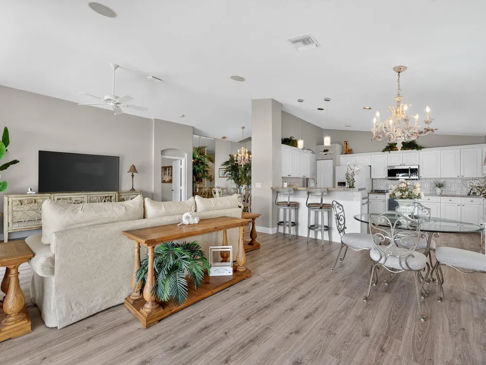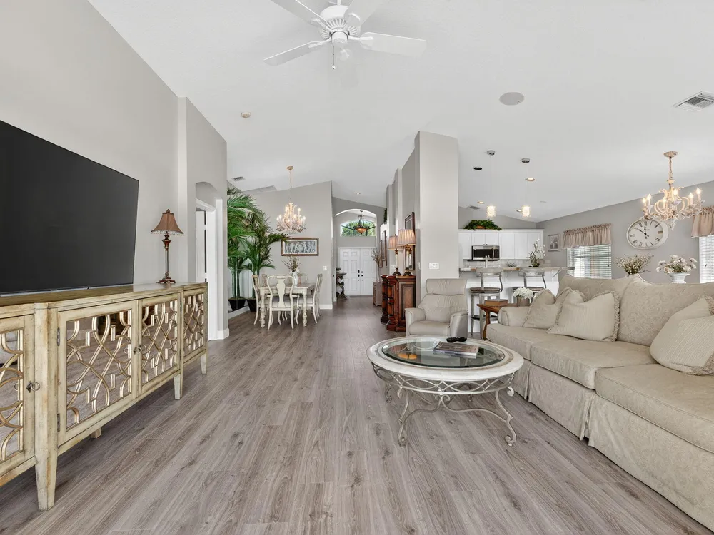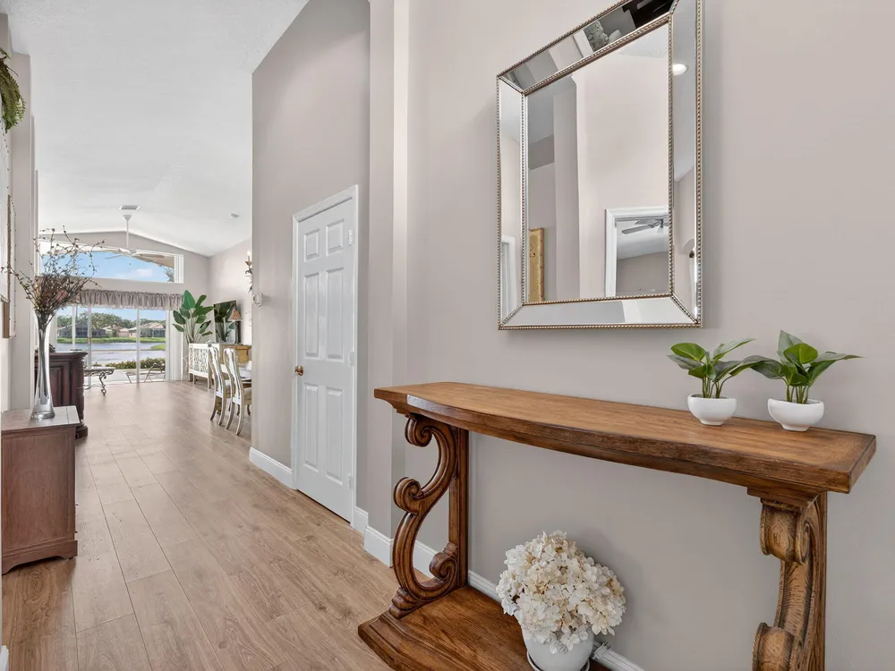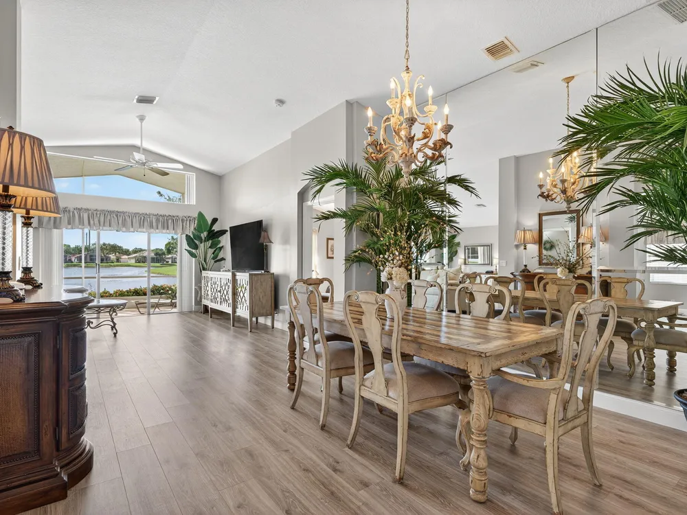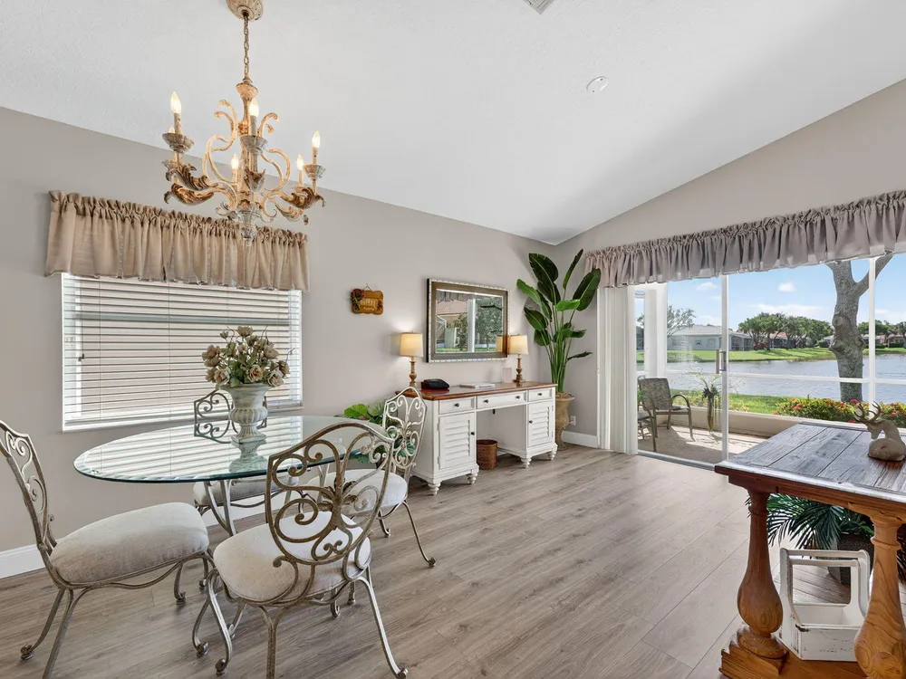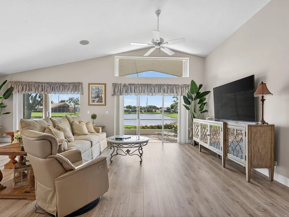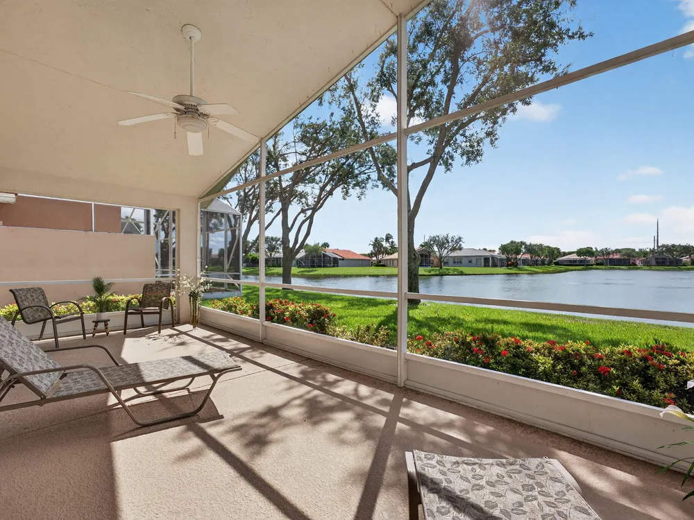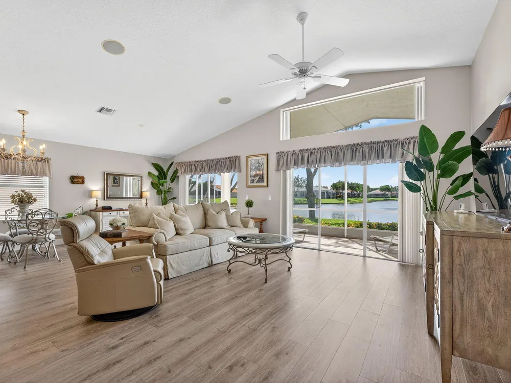 Welcome to Ponte Vecchio - A Highly Sought-After 55+ Active Adult Community of 647 homes, in Boynton Beach! Come enjoy the lifestyle. WATCH THE VIDEO attached, to get a true sense of living the dream. What are you waiting for? Step into this beautifully maintained LONG Lake Este model home, featuring a desirable open-concept great room floor plan and a true third bedroom. This ''WOW'' home is move-in ready and furnishings are negotiable. Enjoy LONG Lake views from the open kitchen, relaxing in the spacious great room or in primary suite.The screened-in patio offers ample space for entertaining and highlights the bright Southern exposure with stunning water views. This home features a split-bedroom layout with 2 full baths. Luxury vinyl wood like floors are throughout