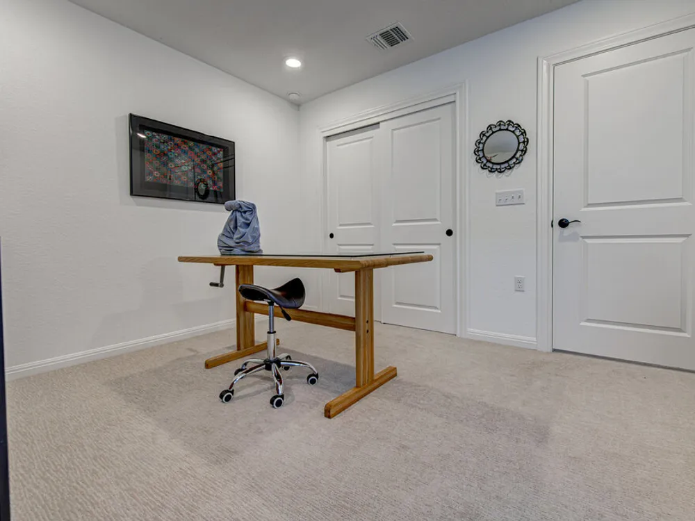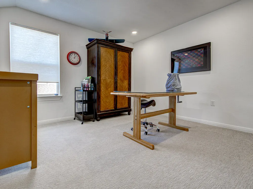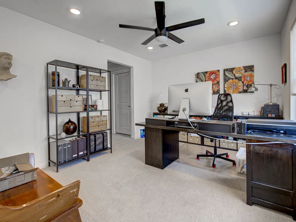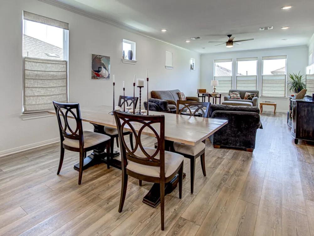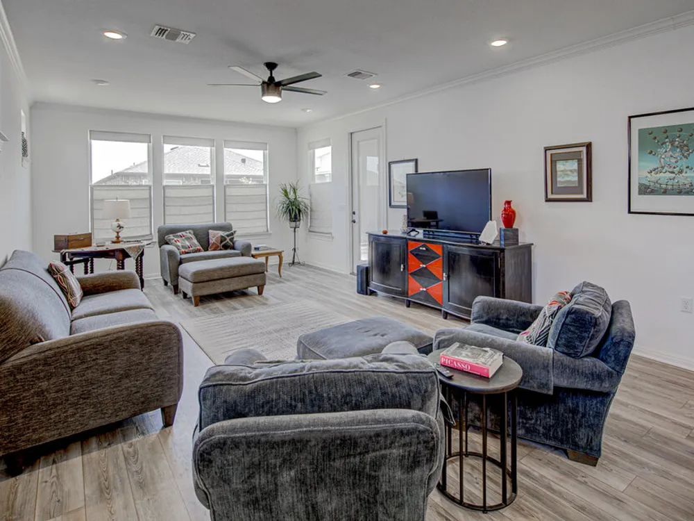 - Breakfast Bar, Ceiling Fan(s), Crown Molding, Double Vanity, Eat-in Kitchen, French Door(s)/Atrium Door(s), High Ceilings, Kitchen Island, Multiple Living Areas, Main Level Primary, Open Floorplan, Pantry, Recessed Lighting, Walk-In Closet(s)