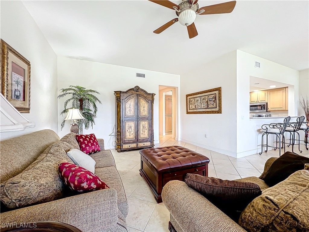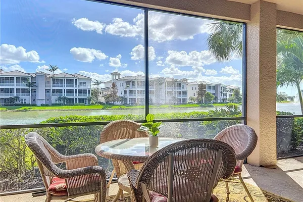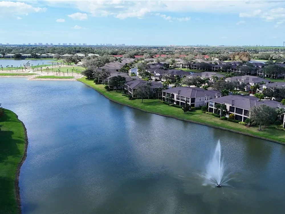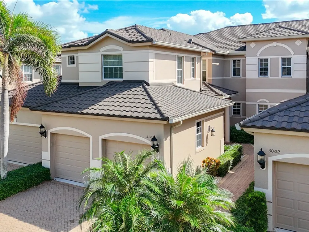 Bring Your Offers! Discover Tranquility at The Vineyards Welcome to a lushly landscaped paradise, where palm tree-lined streets and beautiful gardens create a serene setting. This first-floor end-unit offers a spacious 40’x10’ screened lanai, providing stunning panoramic southern views of the lake and fountain. Spanning 2,058 square feet, this 2-bedroom plus den home features a 2-car garage, extra storage, large closets, neutral tile flooring, and light wood Italian cabinetry. Enjoy the convenience of 1-year-old appliances and a water heater. The Regency Reserve carriage homes boast new roofs as of 2021, freshly painted exteriors, and are hurricane ready. The neighborhood offers a private clubhouse with a fitness room and a tropical resort-style pool and spa featuring a rock waterfall. The Vineyards community provides optional private social, sport, and golf memberships. A recent coastal trendy renovation of the clubhouse enhances the experience, with members enjoying 36 holes of golf, tennis, pickleball, and bocce. Dining options include casual poolside meals or patio dining with panoramic golf course views. The new health and wellness facility is a full-service fitness center complete with a sauna and spa offering clinical physical therapy. Regency Reserve's ideal location offers easy access to Physician's Regional Medical Center, I-75, Publix, restaurants, and retail shopping. It's just minutes away from world-class shopping and beautiful sandy beaches. Experience life and leisure at The Vineyards, recognized as one of America’s Healthiest Private Clubs!