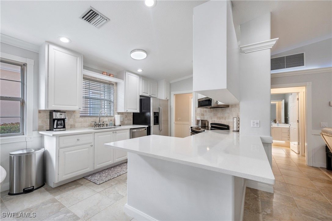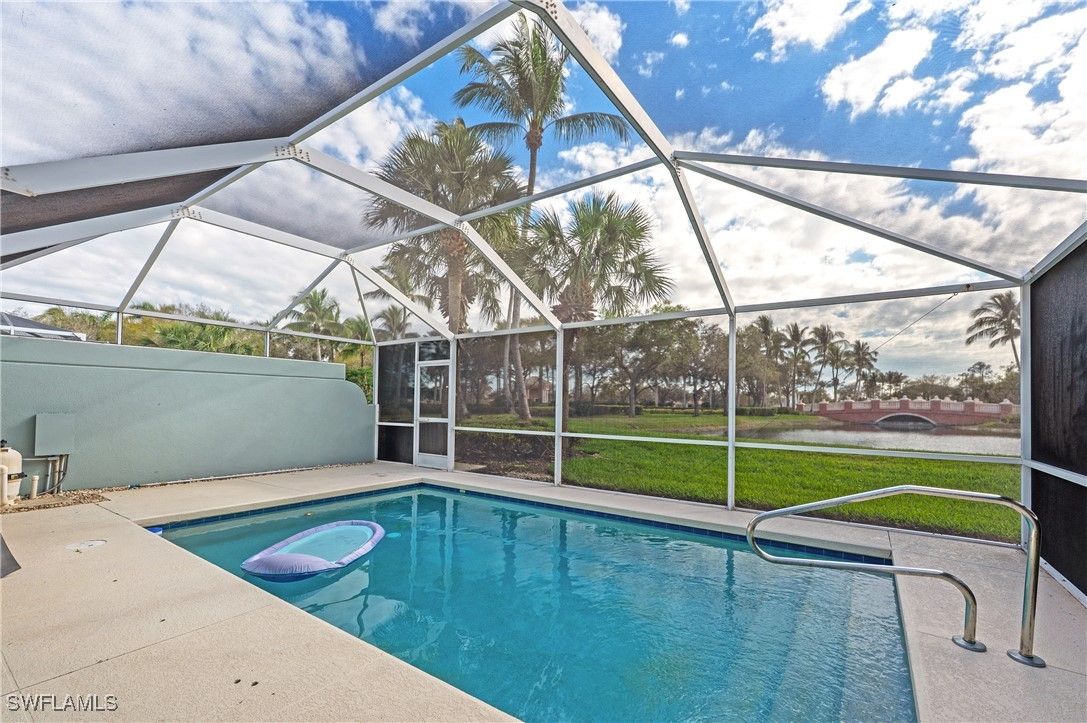TURNKEY POOL & SPA DiVosta BUILT CAPRI MODEL WITH LARGE POND AND FOUNTAIN VIEWS LIKE NO OTHER. Enjoy the beautiful tranquil views from your pool and spa. Amazing one of a kind water view. Private no-see-um screen. So much to offer. This is one of original built DiVosta model homes built with poured concrete. TURNKEY. . At least 35K in extras. UP DATED MASTER BATH. NEW SHOWER AND QUARTZ COUNTER TOPS. ALL NEW FURNITURE IN 2023 AND NEW APPLIANCES & BRAND NEW REFRIGERATOR 2026, POTS AND PANS, GLASSWARE, DiSHES, TOWELS ETC. in this charming split 2-Bedroom Capri Villa .One bedroom on each side for total privacy with walk in closet. Enjoy your very own Private Pool & Spa. Verona Walk is just a short walk to local restaurants and close to the gate. Vaulted ceilings in this beautifully updated 2-bedroom, open den, 2-bath Capri Villa offers a tranquil retreat with your own private pool and spa. Recent updates include: NEW MICROWAVE HOOD (2023) NEW QUARTS COUNTERTOPS (2023) NEW NO-SEE-UM SREEN FOR LANAI NEW POOL HEATER (2023) FRESHLY PAINTED INTERIOR (2023) FRESHLY PAINTED EXTERIOR (2024) NEW DISHWASHER (2024) NEW WASHER & DRYER (2024) NEW HOT WATER HEATER (2024) Located in one of Naples' premier gated communities, Verona Walk offers resort-style living at its finest. The Town Center features exceptional amenities, including: Lap Pool Pickleball & Tennis Courts Basketball Court Bocce Ball Fitness Center Restaurant & Beauty Salon Miles of Bike Paths & Sidewalks Enjoy the convenience of refueling your car without ever leaving the community! This home is ideally located close to the white sand beaches of Marco Island, and just a short drive to shopping, pharmacies, home improvement centers, the Naples Botanical Garden, the Naples Zoo, and downtown Naples, where you'll find a variety of fine dining options. A REAL ONE OF A KIND CAPRI MODEL LIKE NO OTHER!!! SO MUCH FOR THE MONEY!!! SELLER FINANCING AVAILABLE,NO PRE PAYMENT PENALTY,FLOOD INSURANCE NOT REQUIRRED 40% DOWN.