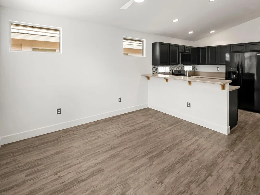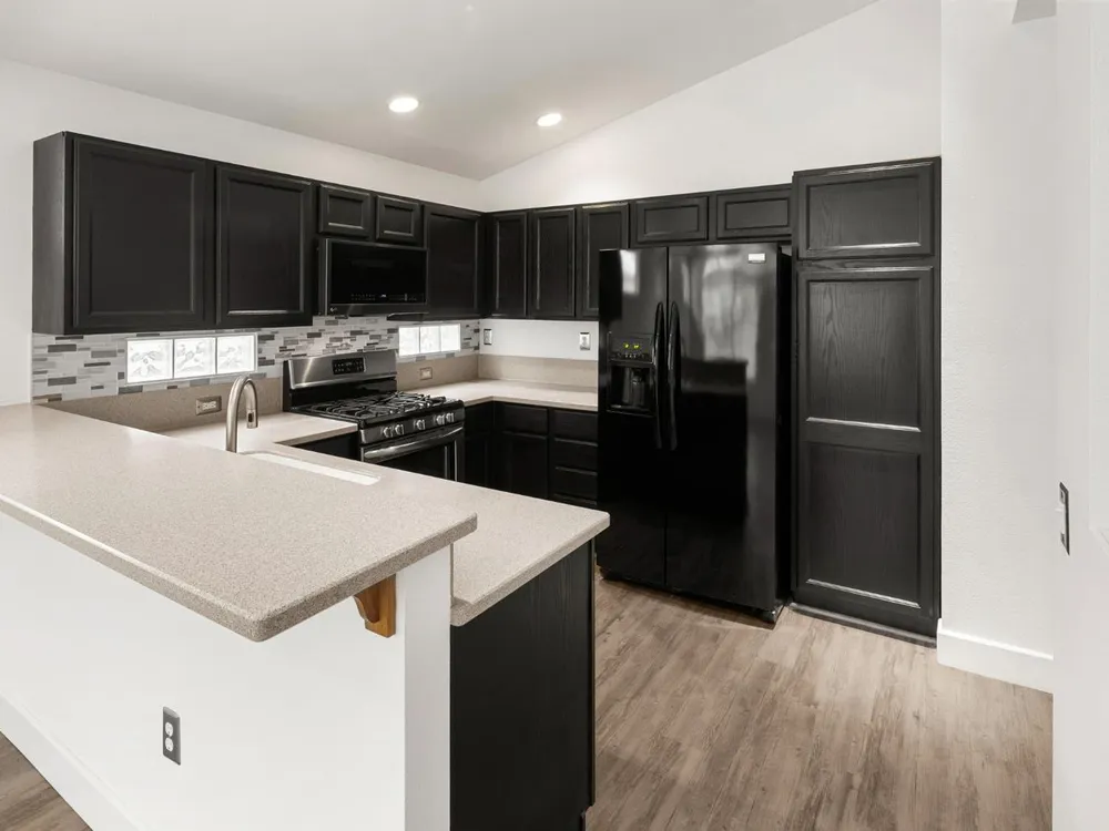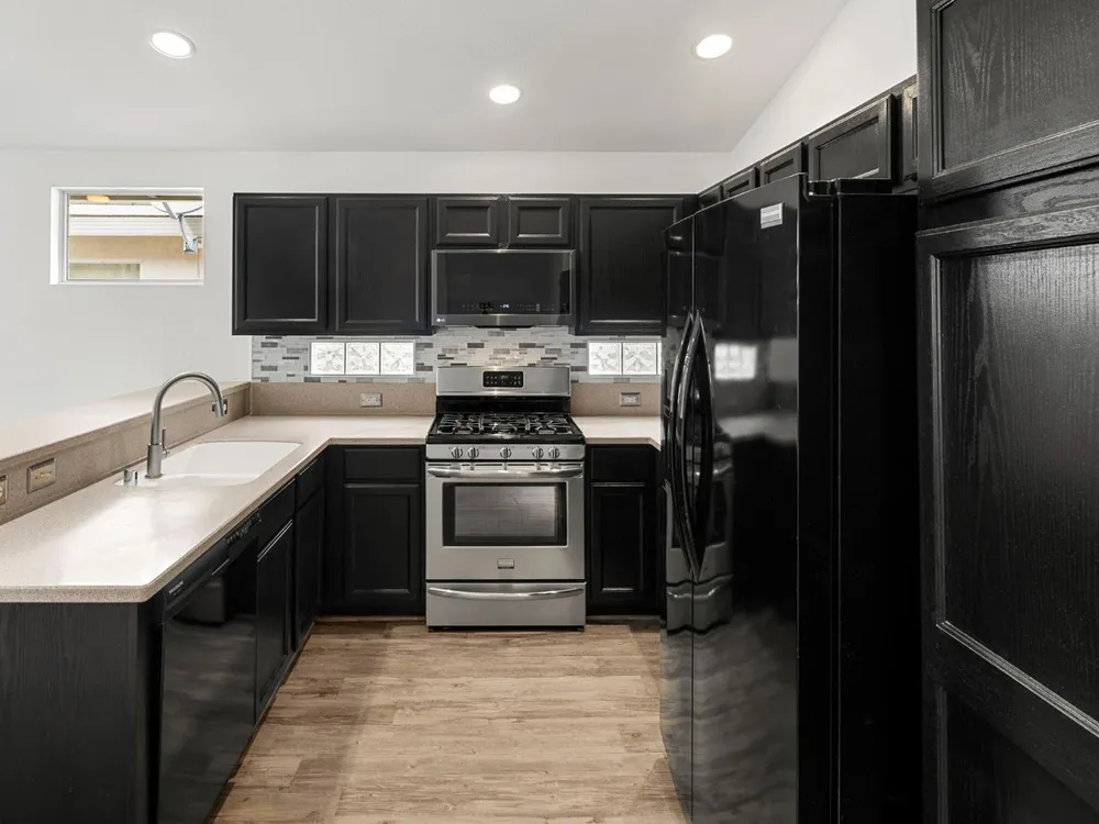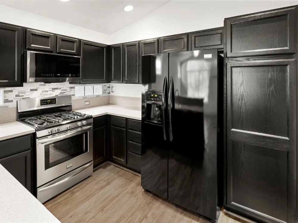 - Free-Standing Gas Range, Free-Standing Refrigerator, Dishwasher, Disposal, Microwave