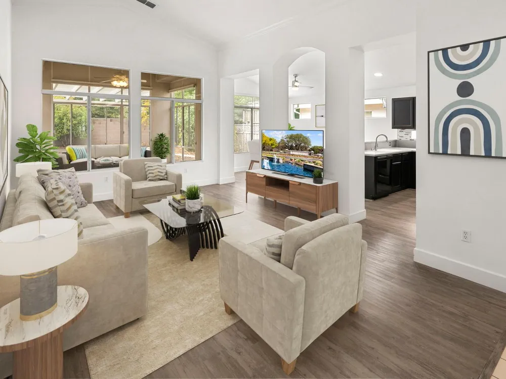 Beautifully Remodeled Timberrose is move-in-ready in the prestigious Sun City Roseville 55+ active adult community. The kitchen is special with recessed lighting, updated appliances (refrigerator included), corian counters and a dining bar. Crown molding enhances the vaulted ceilings and LVP and tile floors run throughout the home (no carpet). Newer HVAC and washer and dryer included. Come and enjoy extra living space with the sunroom and the covered patio provides a great entertaining space. Sun City Roseville is an amenity rich environment with the Timbers Restaurant and Bar, fitness center, pools, golf, tennis, pickleball, bocce, walking trails ad so many activity clubs! No Mello Roos, low HOA and Roseville electric!