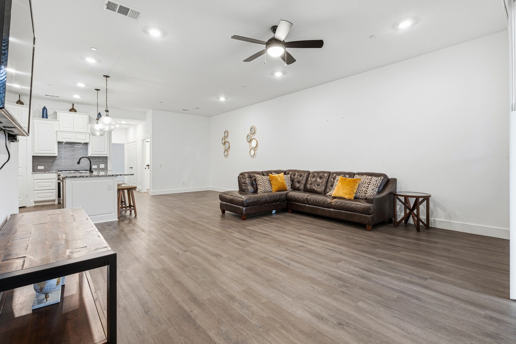 ***Motivated seller*** Welcome to comfortable townhome living inside a gated Grand Prairie community offering a low-maintenance lifestyle and great amenities. This beautifully maintained home feels practically new, as the seller only used one room, leaving the rest of the home in excellent condition. Step inside to an open and inviting floor plan with warm wood like flooring and natural light flowing throughout the main living areas. The upgraded chef’s kitchen is designed to be the heart of the home, featuring abundant cabinetry, generous countertop space, a large island with storage and barstool seating, a sleek slide-in range, and a built-in microwave seamlessly integrated into the cabinetry. It’s a perfect space for entertaining guests, preparing meals, or simply enjoying everyday living. The spacious primary suite offers a relaxing retreat with a vaulted ceiling that adds an airy feel to the room. The ensuite bathroom includes dual sinks and a large walk-in shower with a built-in bench, creating a comfortable spa-like experience. The secondary bedroom is thoughtfully positioned for privacy and sits near a full bathroom, making it ideal for guests, a home office, or additional living space. Outside, enjoy the private front patio, a great spot for morning coffee or relaxing in the evening. An attached two-car garage adds convenience and extra storage. Residents enjoy access to community amenities including a fitness center, swimming pool, and community center, perfect for staying active and social. Conveniently located just minutes from Joe Pool Lake, parks, dining, and shopping, this home offers the perfect blend of comfort, convenience, and easy living. 55+ old Community