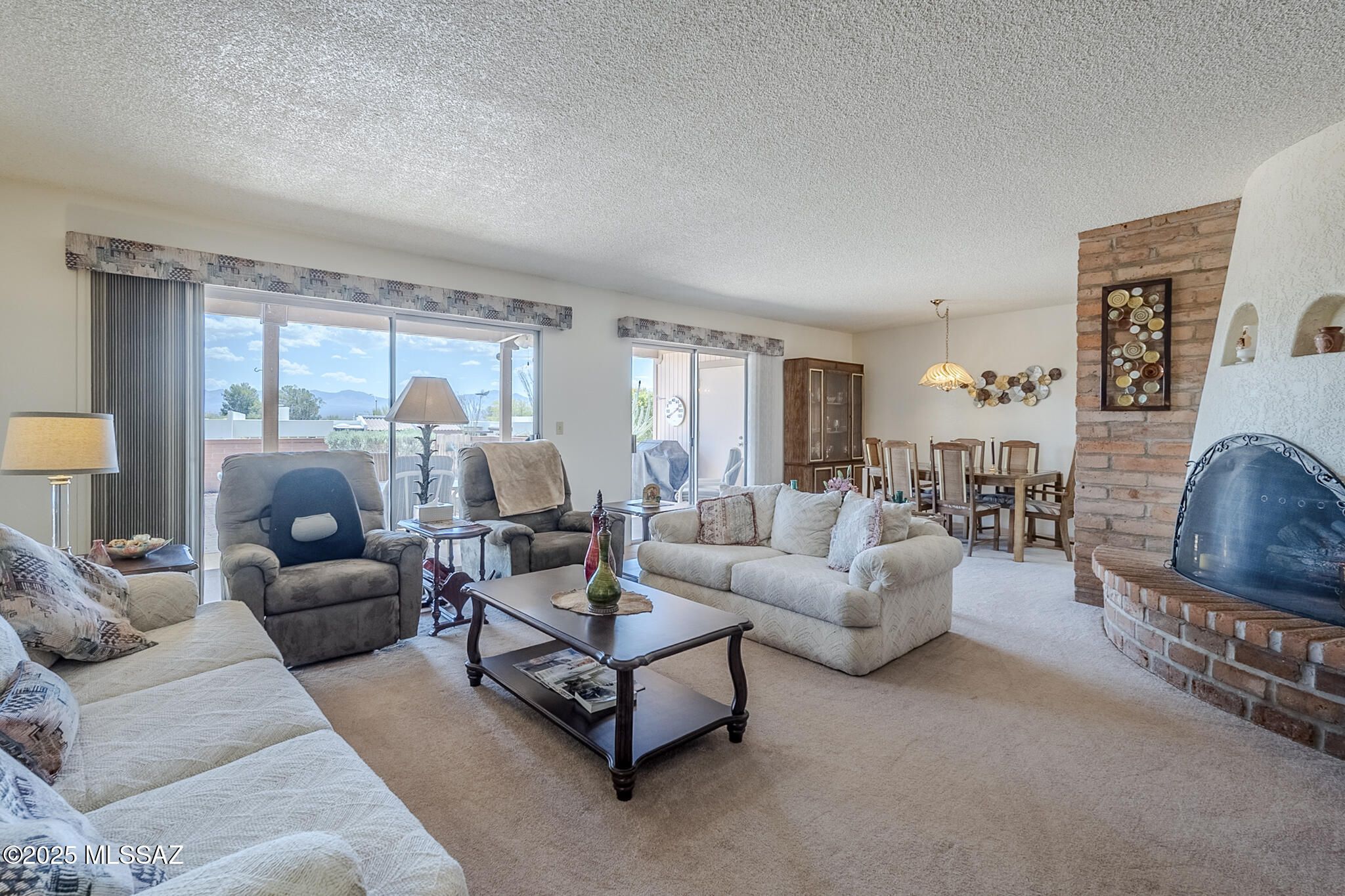Bright & Spacious Green Valley Gem with Mountain Views - Fully Furnished and Move-In Ready!Tucked away on a peaceful cul-de-sac, this beautifully maintained townhome blends comfort, functionality, and flexibility. Whether you're looking for a full-time desert retreat, part-time getaway, or an investment opportunity, this home checks all the boxes.Step inside to a spacious living room anchored by a charming beehive fireplace and natural brick accent wall. Three sliding glass doors, two from the living room and one from the primary suite, fill the home with incredible natural light and open to an expansive covered back patio. Enjoy stunning mountain views, east-facing sunrises, and shaded afternoons under the ceiling fan with ample room to relax or entertain.