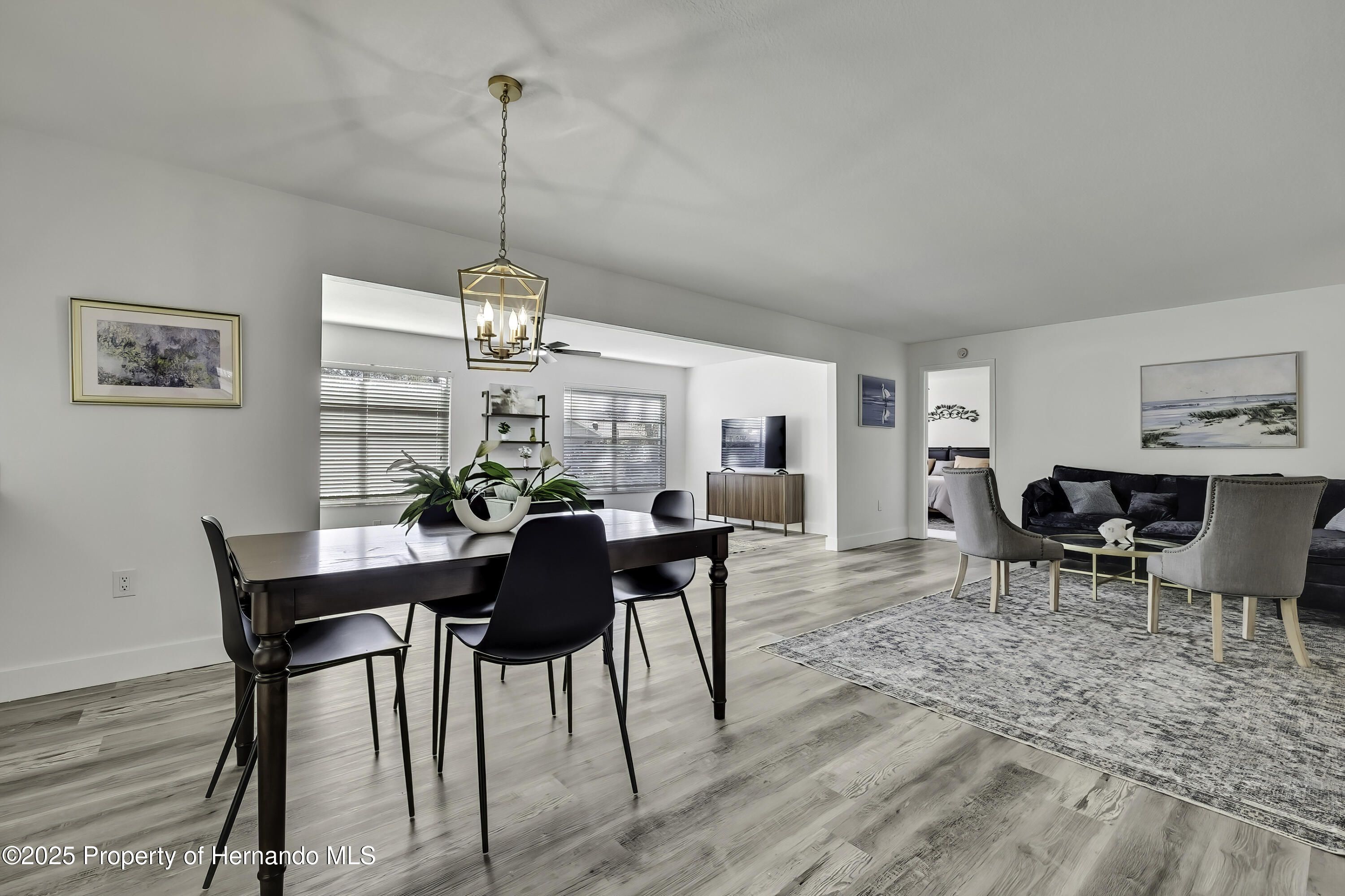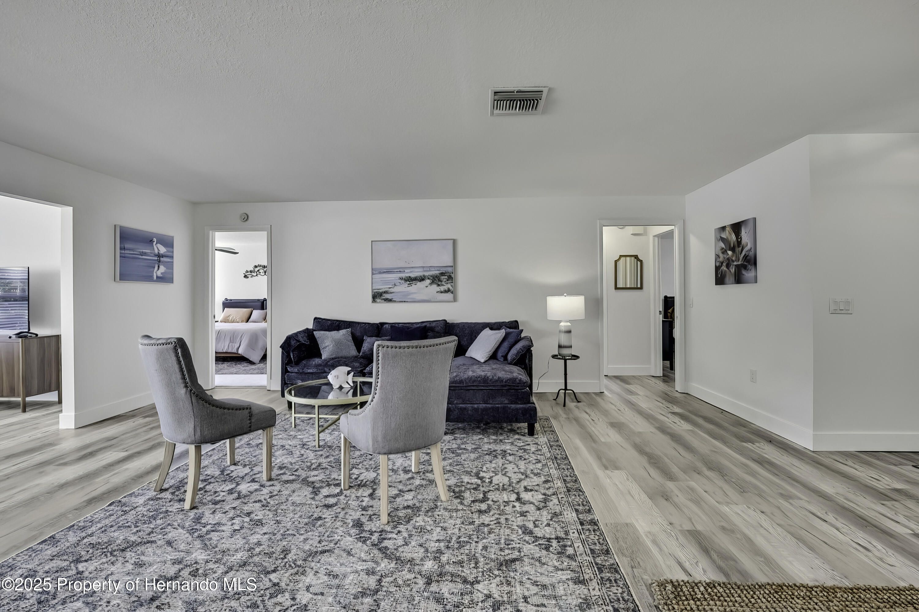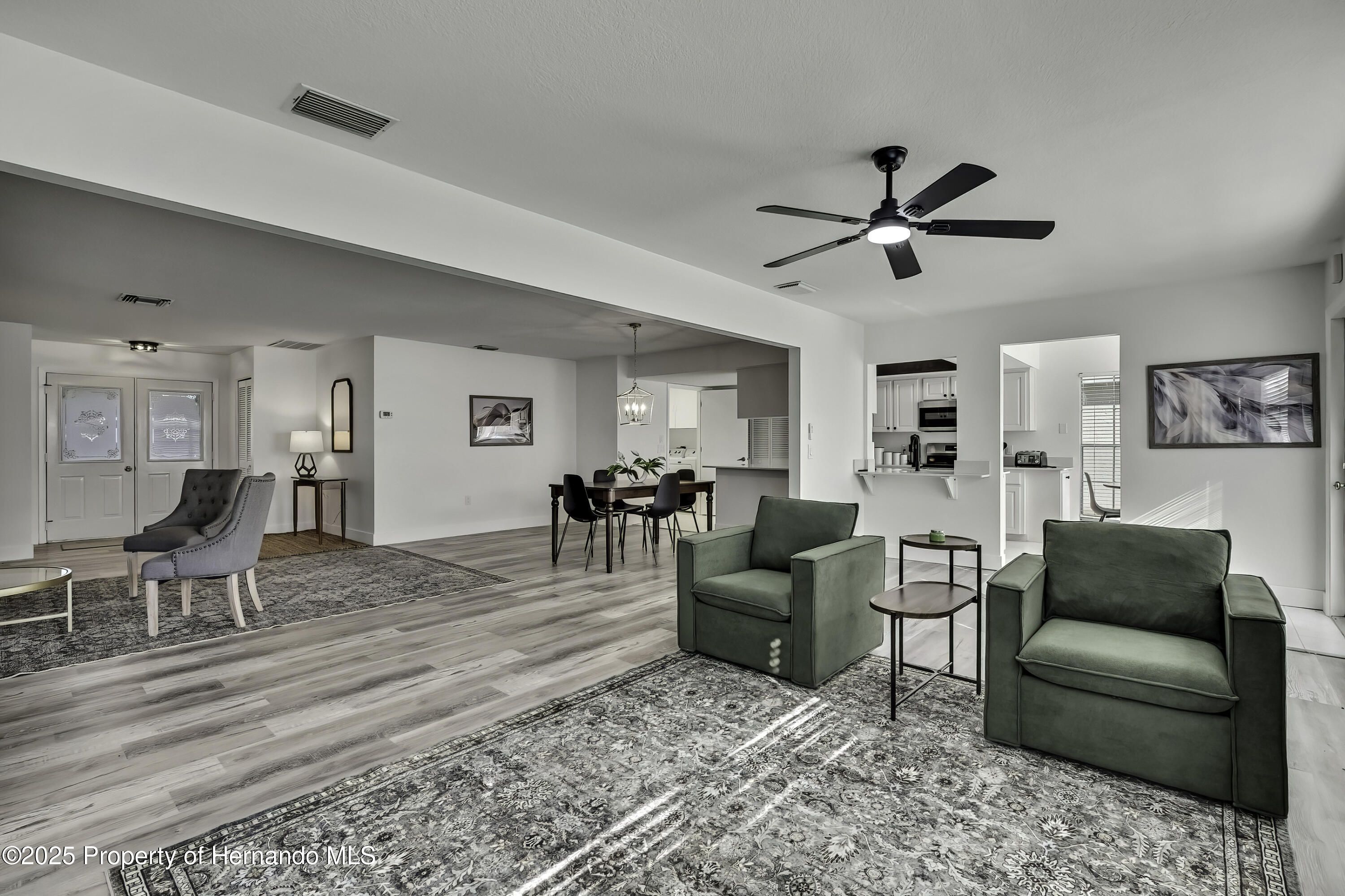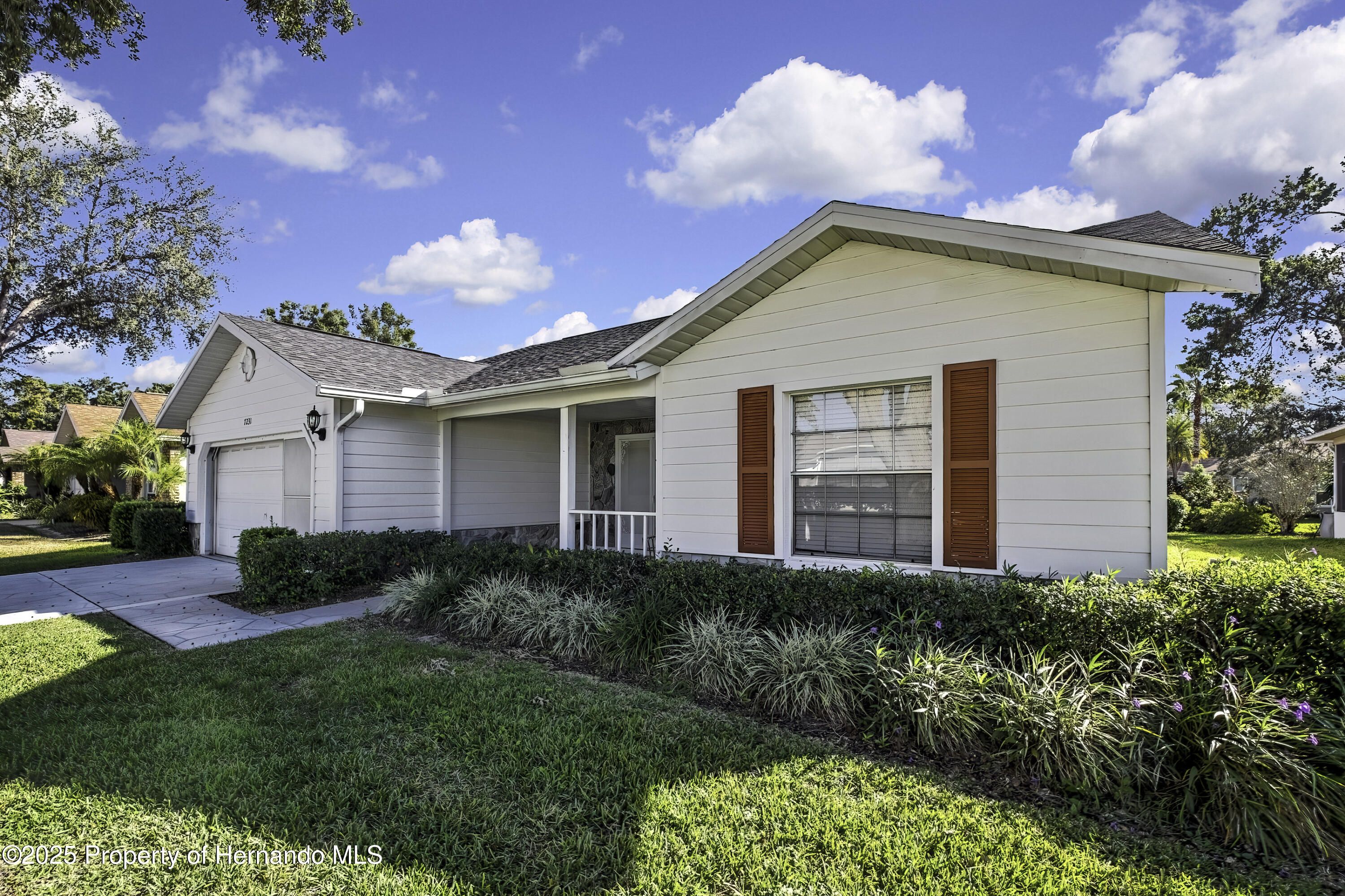 Turnkey and Fully Furnished in Timber Pines! This fully remodeled 2-bedroom, 2-bath home with a 2-car garage is ready for you to move right in. Everything has been updated from top to bottom, including a brand-new roof, fresh interior paint, and new knockdown ceilings. The home features new waterproof vinyl flooring, updated baseboards, outlets, and GFI switches. Modern light fixtures and remote-controlled ceiling fans have been added throughout. The kitchen has all new stainless-steel appliances, quartz countertops, and a fresh, open feel that's great for everyday living. Both bathrooms have been updated—the primary bath has dual mirrors, walk in shower and the guest bath has a new vanity, tub/shower and mirror. The garage floor has also been freshly painted for a clean look. Located in the popular Timber Pines 55+ gated golf community, this home is turnkey and fully furnished. Enjoy amazing amenities like golf, pools, tennis, pickleball, fitness centers, clubs, and on-site dining. This home has it all—beautiful updates, a great location, and a wonderful community.
