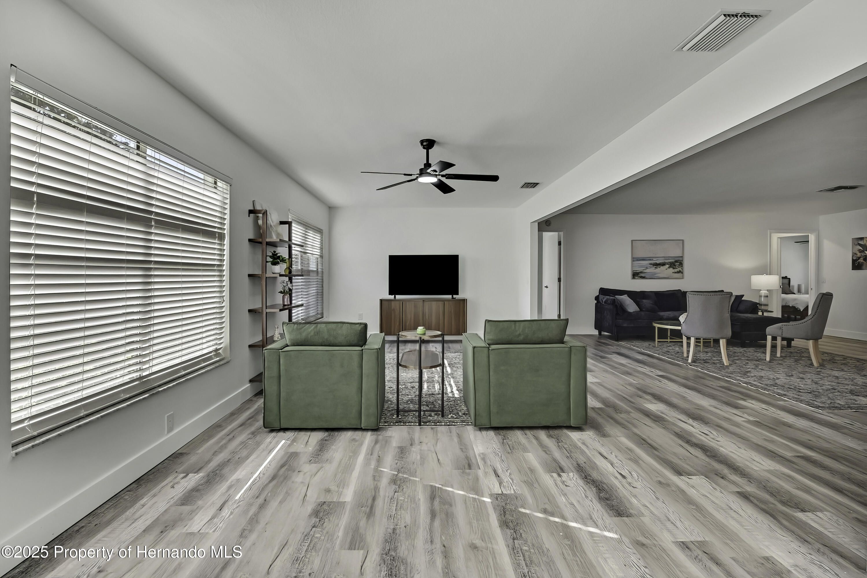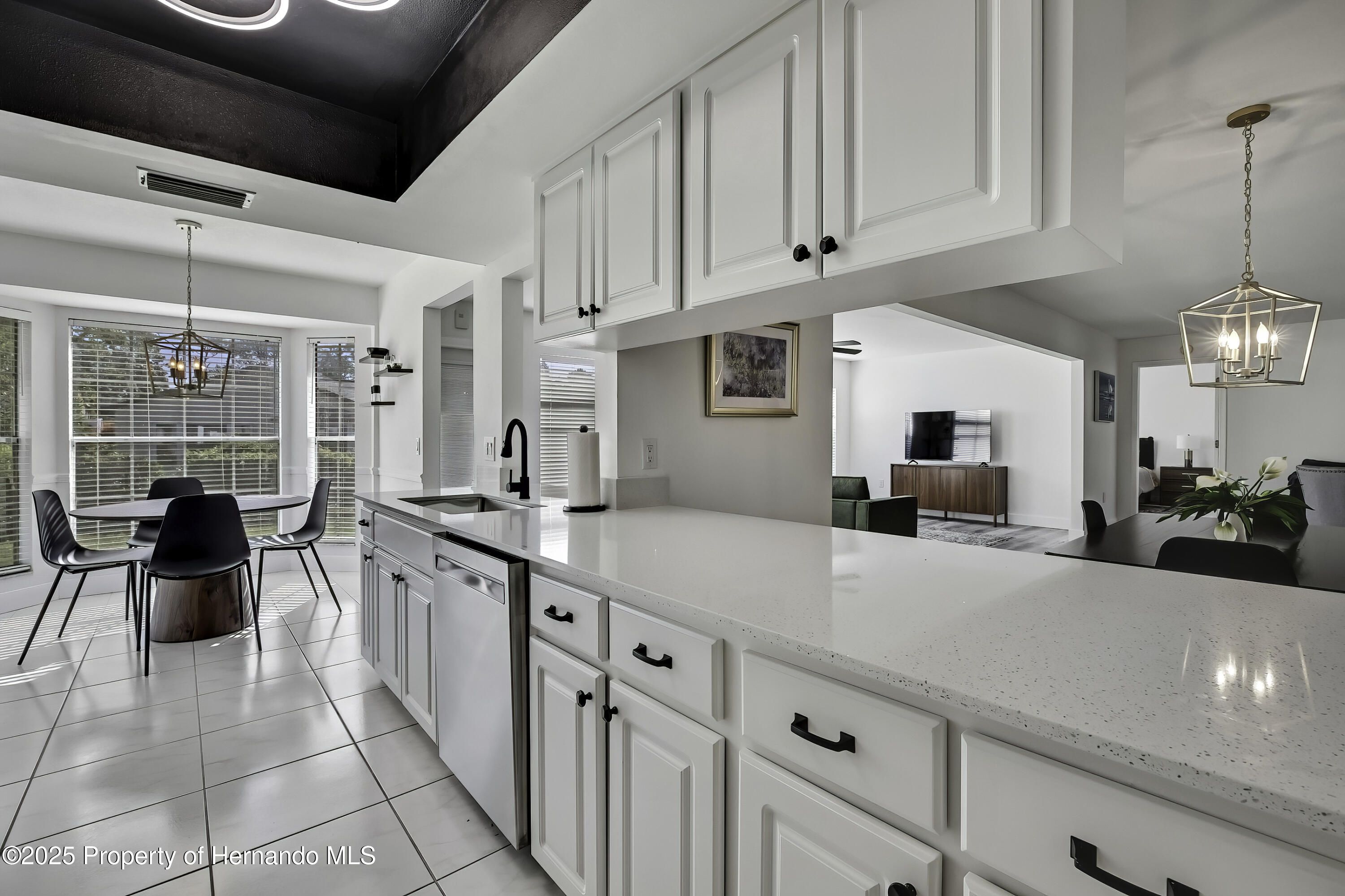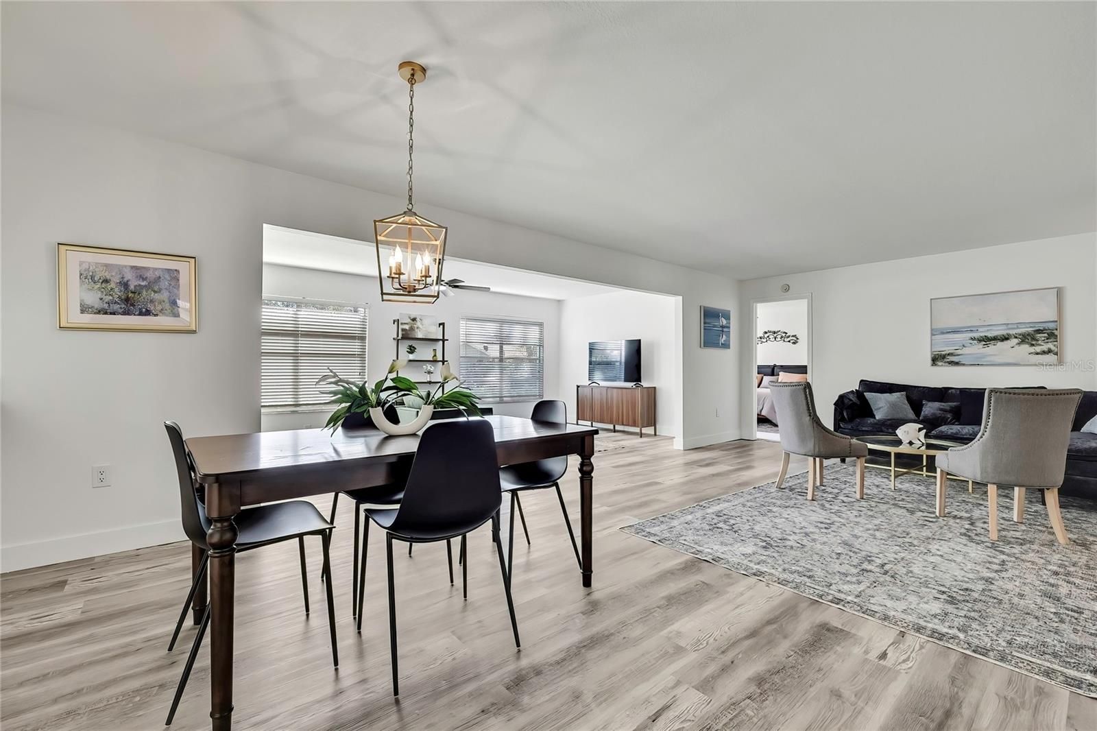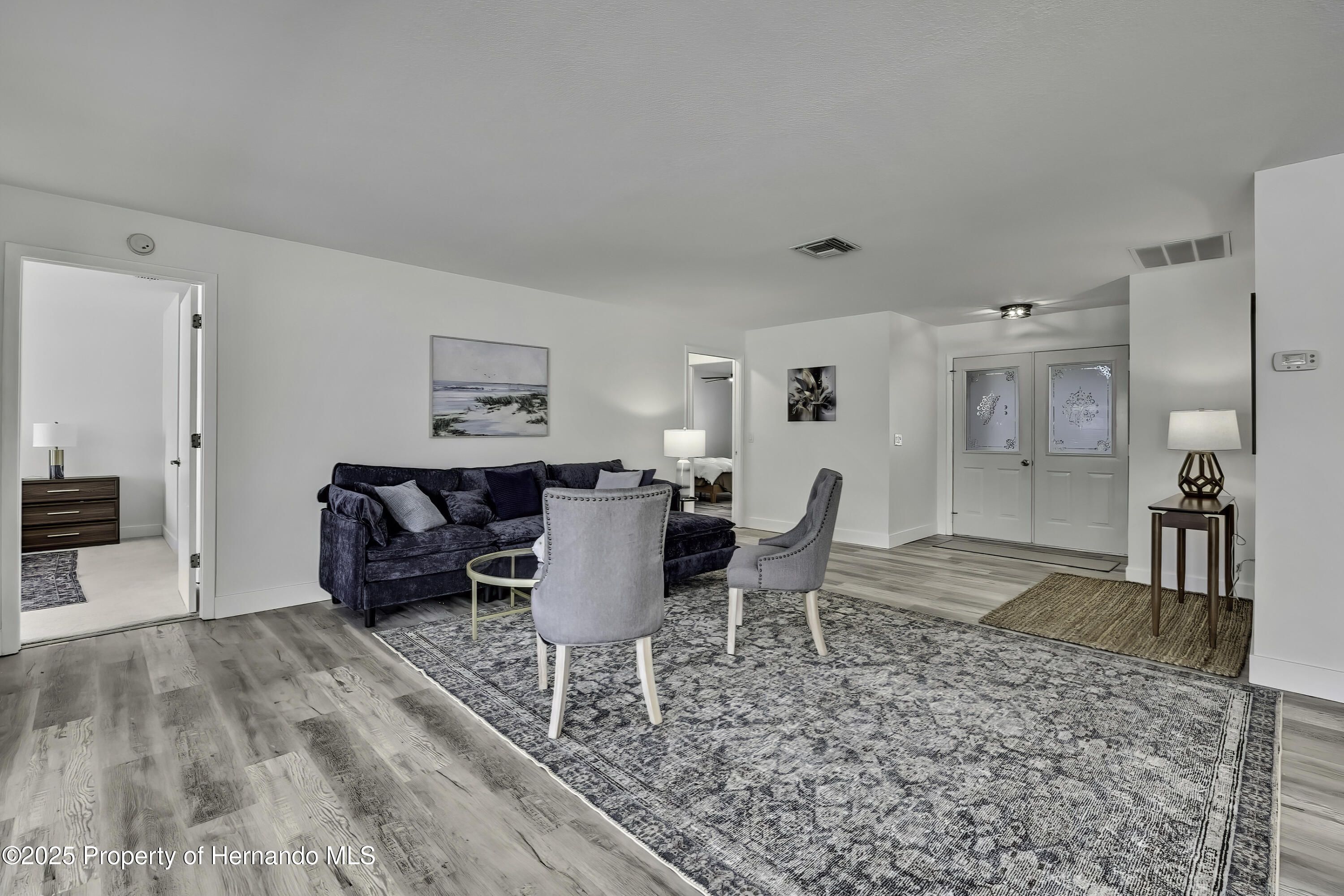 Turnkey and Fully Furnished in Timber Pines! This fully remodeled 2-bedroom, 2-bath home with a 2-car garage is ready for you to move right in. Everything has been updated from top to bottom, including a brand-new roof, fresh interior paint, and new knockdown ceilings. The home features new waterproof vinyl flooring, updated baseboards, outlets, and GFI switches. Modern light fixtures and remote-controlled ceiling fans have been added throughout. The kitchen has all new stainless-steel appliances, quartz countertops, and a fresh, open feel that's great for everyday living. Both bathrooms have been updated—the primary bath has dual mirrors, walk in shower and the guest bath has a new vanity, tub/shower and mirror. The garage floor has also been freshly painted for a clean look. Located in the popular Timber Pines 55+ gated golf community, this home is turnkey and fully furnished. Enjoy amazing amenities like golf, pools, tennis, pickleball, fitness centers, clubs, and on-site dining. This home has it all—beautiful updates, a great location, and a wonderful community.