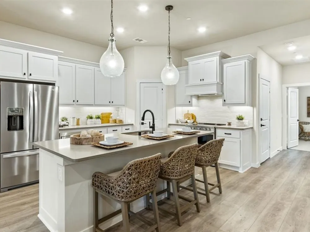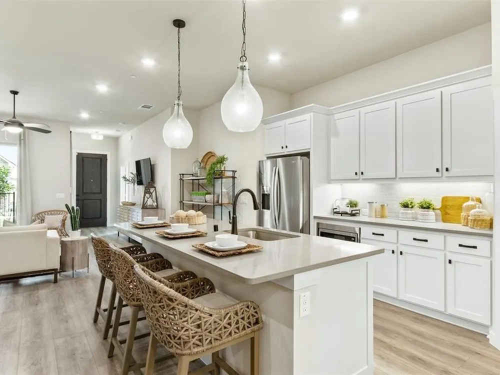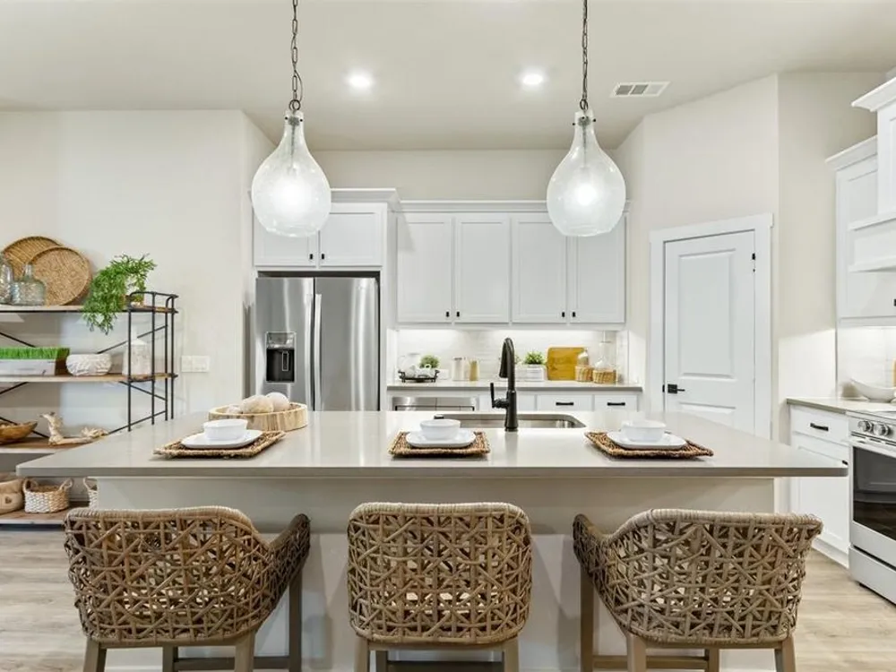 - Decorative/Designer Lighting Fixtures, Double Vanity, Eat-in Kitchen, Kitchen Island, Open Floorplan, Pantry, Walk-In Closet(s)