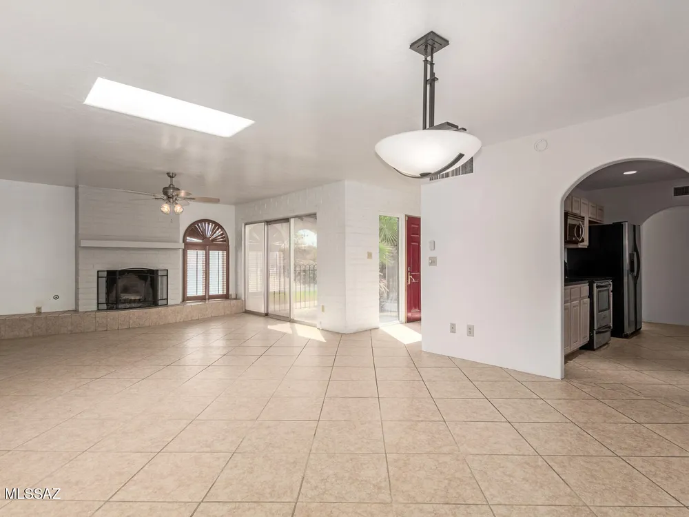 Start making memories in this charming 2-bedroom townhome in Casitas De Castilian! You'll love entertaining in the cozy living room, complete with a fireplace perfect for gathering around. Tile floors, shutters, and skylights add style and brightness throughout. The galley kitchen shines with custom cabinets, recessed lighting, and sleek granite counters. Both bedrooms offer direct access to the yard space and feature walk-in closets, plus, one has its own private bathroom for added comfort. Unwind with your favorite drink on the private patio, or splash into the community pool for fun. Don't miss your chance to make this gem your home!