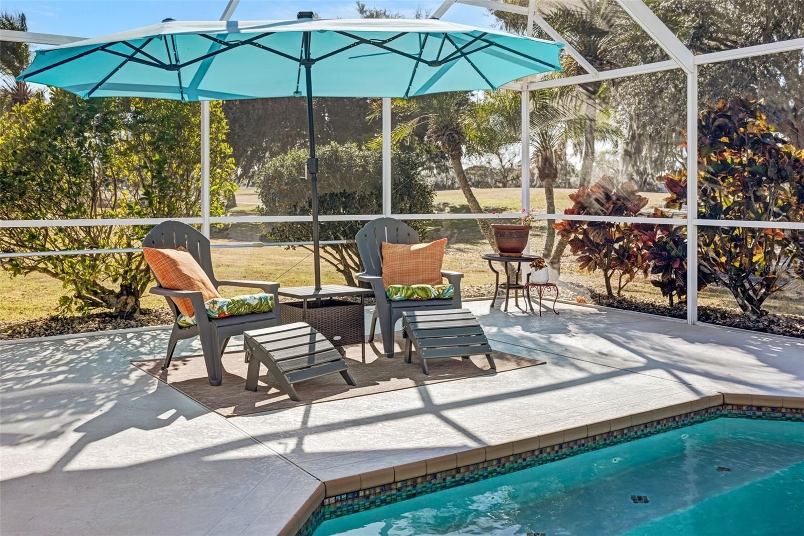 55+ Community in Sun City Center, FL. This POOL home backs up to a private golf course where the community is designed with an easy living lifestyle in mind. Residents enjoy a wide variety of amenities including: fitness centers, indoor and outdoor pools, lawn bowling club, croquet, tennis and pickleball courts, golf cart friendly, multiple clubhouses, restaurants and over 200 clubs and activities for everyone's interest. From arts and crafts, gardening, and continuing education, to golf, there’s always something to do in this community. This fabulous POOL home with views of the pool and golf course has three bedrooms, two baths, and two car garage. There are many upgrades to include engineered hardwood floors through out, ceramic tile in all the wet areas, bar and dining nook. The living room features a wood accent wall with TV mount and wide baseboards throughout the home. Kitchen features granite countertops, soft close cabinets with pull-out drawers, garbage disposal, and under cabinet lighting. Custom pantry with adjustable shelves. All appliances are electric and convey with home. The large primary bedroom suite, which offers a private door to the huge 23'x 60'pool area, primary also includes a soaking tub, walk-in shower w/handrails, granite counter tops with dual sinks w/soft close cabinets and two large customized walk-in closets. This home is wheelchair friendly. The split floor plan gives you privacy for two additional bedrooms with crown molding and custom closets with adjustable shelves as well. The second bathroom has been upgraded to include a bidet toilet, granite countertops, soft close cabinets, a walk-in shower with a fabulous shower head that offers a waterfall/rainfall faucet. Laundry room features custom cabinets with adjustable shelves, a wash tub with a multi spray faucet and pull out handle, and utility closet. The large 23'x 60'screened-in lanai with a 13' x 30' pool with lights, in-pool spa sprays and a waterfall feature, also heated by solar panels to reduce the utility bill. New pool pump (2024). This pool also features an electric lift chair for accessibility, and outdoor bluetooth speakers. This home also comes with a 10 year termite protection pods installed in 2025. Homeowners did not spare any expense when upgrading this home. Give me a call to schedule an appointment.