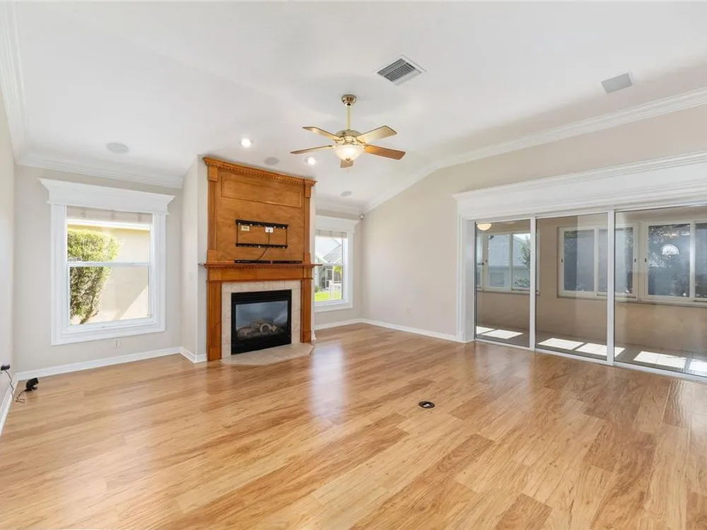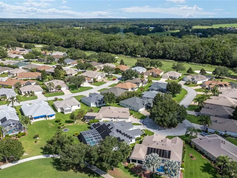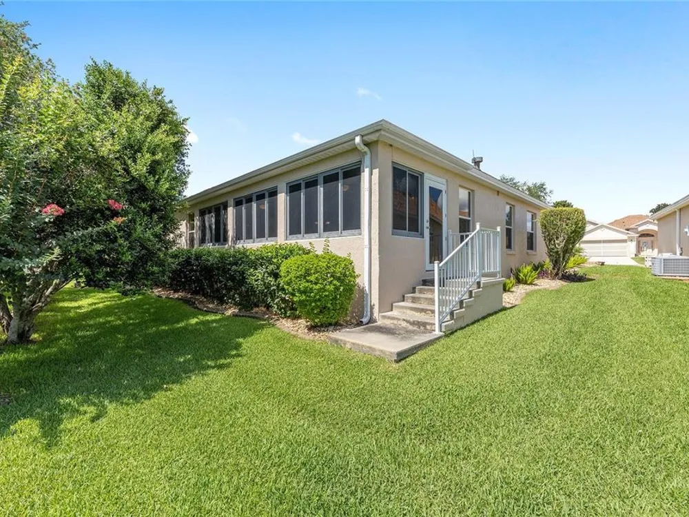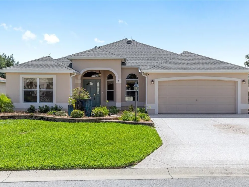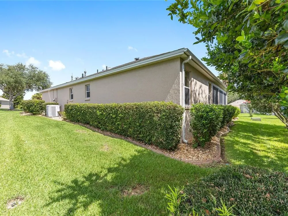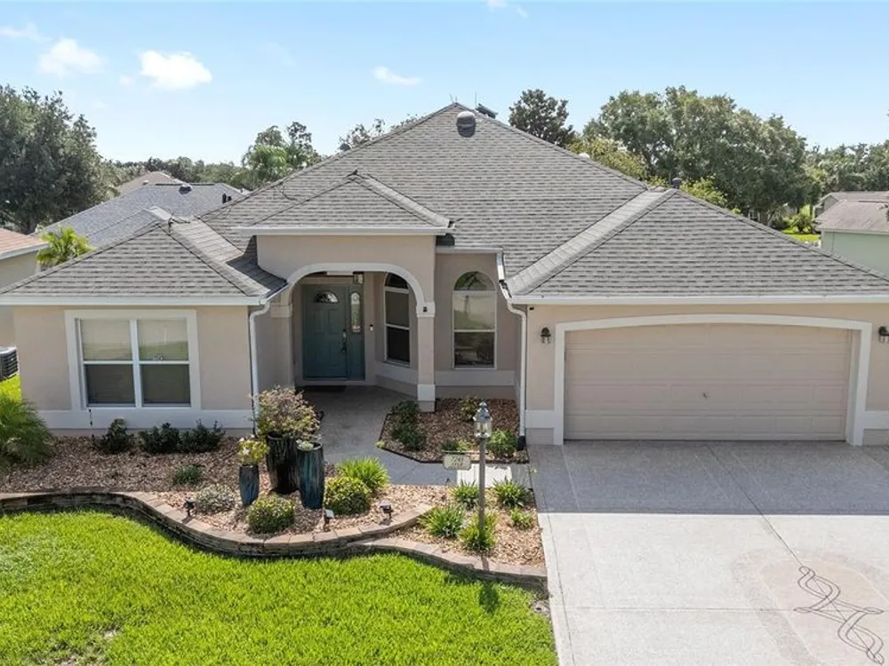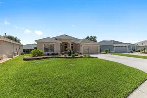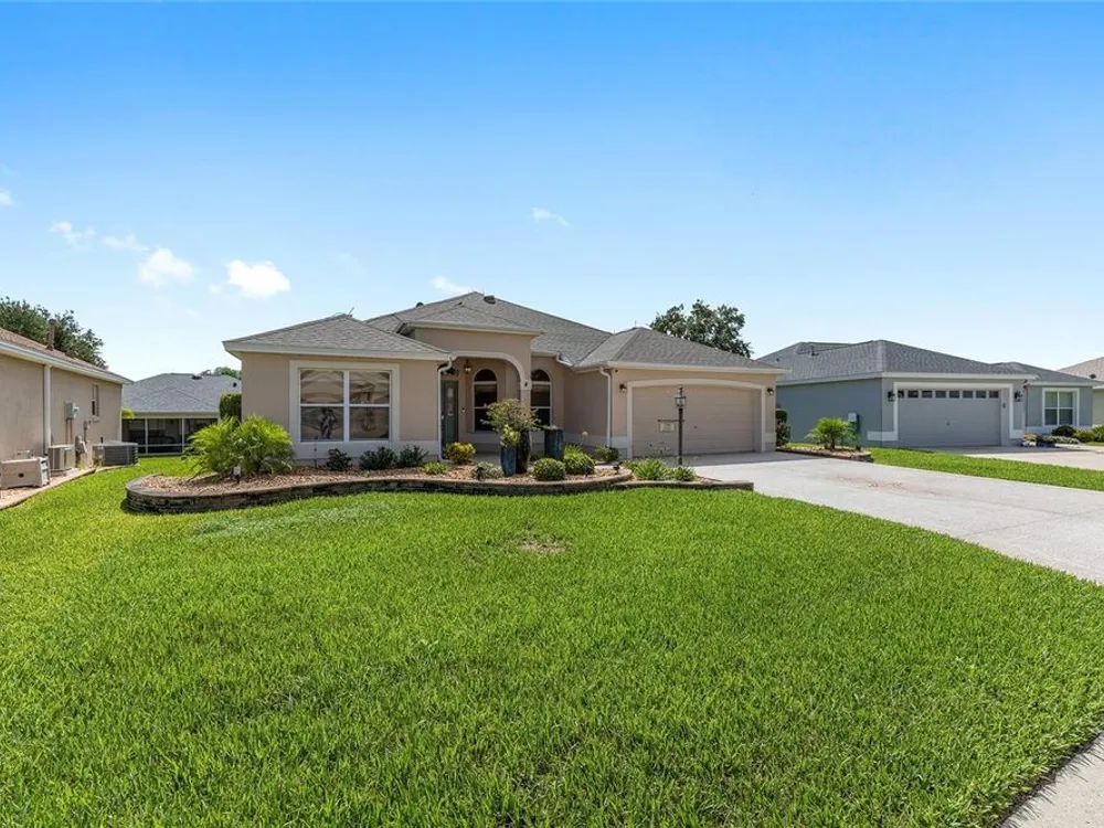 NO BOND~NEW ROOF 2025~NEW 3 TON HVAC 2012~WHOLE HOUSE GENERATOR~ADT SECURITY SYSTEM. This stunning and well maintained Designer model is concrete block and stucco, located in popular area of Chatham in The Villages. From the moment you arrive, you’ll notice the care and detail that set this home apart. The spacious kitchen is a chef’s dream, featuring upgraded stainless steel appliances, solid surface countertops, wood cabinetry, under-cabinet lighting, a built-in pantry with sliding drawers, recessed lighting, a central island, breakfast bar, and a cozy eat-in nook. Perfectly open to the dining and living areas, this layout is ideal for holiday gatherings and entertaining. Enjoy soaring ceilings and a gas fireplace in the expansive living room, which flows seamlessly into the enclosed Florida room, where insulated windows and fully retractable sliding glass doors provide abundant natural light and a perfect blend of indoor-outdoor living. The Florida room is a warm and cozy space to enjoy your morning coffee, a glass of wine, or watch sports. The spacious primary suite offers a peaceful retreat with double walk-in closets designed with custom built ins, a generous en suite bathroom featuring dual sinks, a makeup vanity, walk-in shower, and a generous linen closet. Crown molding, solar tubes, recessed lighting, and luxury vinyl flooring add elegance and easy maintenance throughout the home. Lightning Protection System & Air Filter System, Fresh Interior Paint, Treed Buffer Behind the Home for Added Privacy. Garage Storage Cabinets and furniture as pictured are included! Located close to the NEW FIRST RESPONDERS, as well as the MULBERRY GROVE Pool and Rec Center. A quick golf cart ride to world class golfing, NANCY LOPEZ LEGACY Championship Golf Course & GLENVIEW Championship Golf Course. Nearby Mulberry Grove is full of restaurants, shopping, entertainment & medical. Schedule your tour today and start enjoying The Villages lifestyle!