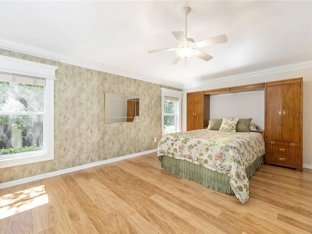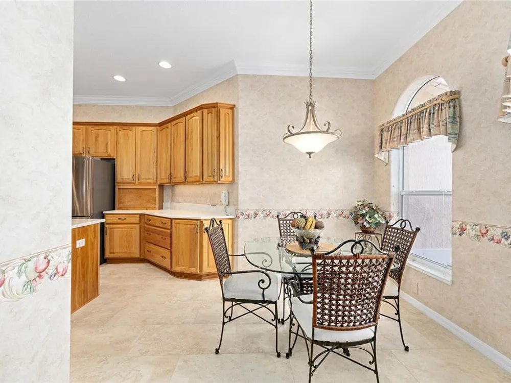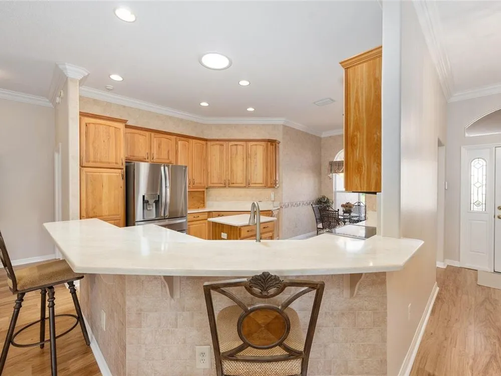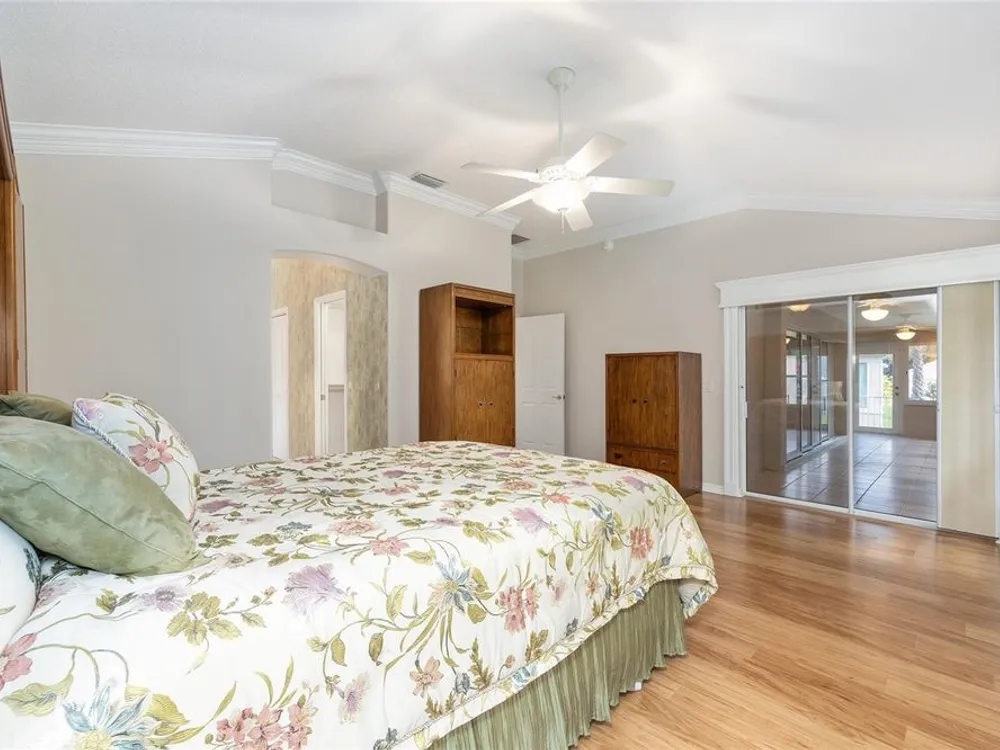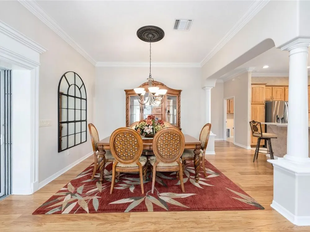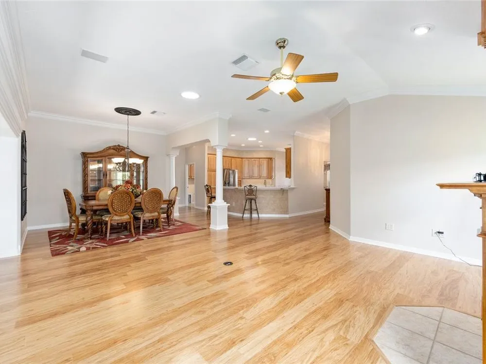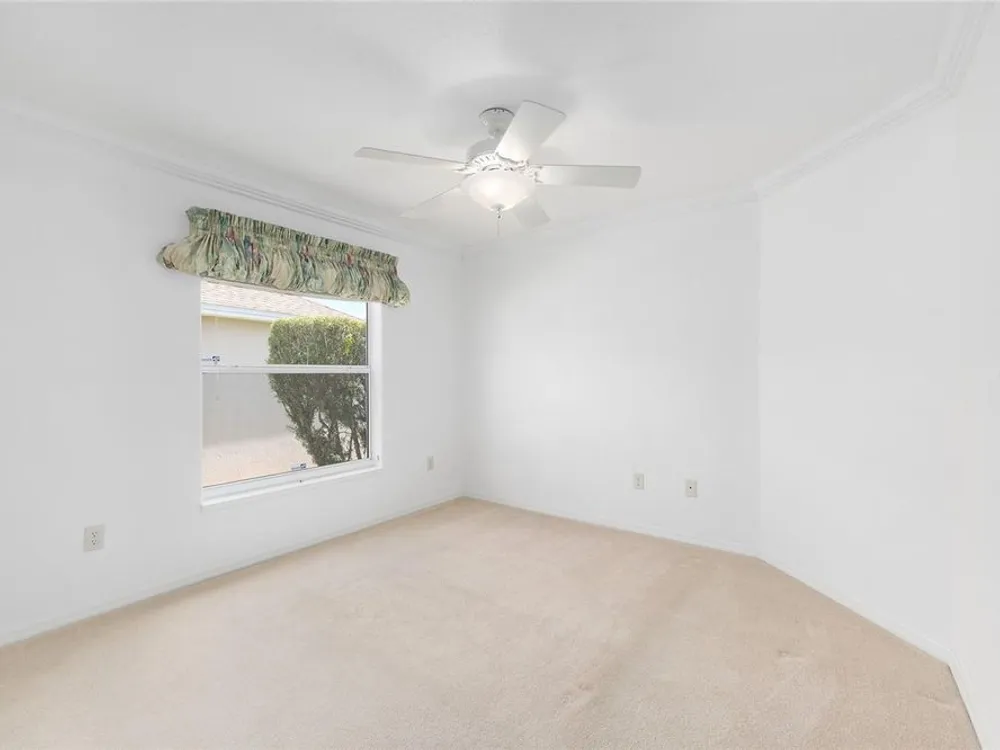 NO BOND~NEW ROOF 2025~NEW 3 TON HVAC 2012~WHOLE HOUSE GENERATOR~ADT SECURITY SYSTEM. This stunning and well maintained Designer model is concrete block and stucco, located in popular area of Chatham in The Villages. From the moment you arrive, you’ll notice the care and detail that set this home apart. The spacious kitchen is a chef’s dream, featuring upgraded stainless steel appliances, solid surface countertops, wood cabinetry, under-cabinet lighting, a built-in pantry with sliding drawers, recessed lighting, a central island, breakfast bar, and a cozy eat-in nook. Perfectly open to the dining and living areas, this layout is ideal for holiday gatherings and entertaining. Enjoy soaring ceilings and a gas fireplace in the expansive living room, which flows seamlessly into the enclosed Florida room, where insulated windows and fully retractable sliding glass doors provide abundant natural light and a perfect blend of indoor-outdoor living. The Florida room is a warm and cozy space to enjoy your morning coffee, a glass of wine, or watch sports. The spacious primary suite offers a peaceful retreat with double walk-in closets designed with custom built ins, a generous en suite bathroom featuring dual sinks, a makeup vanity, walk-in shower, and a generous linen closet. Crown molding, solar tubes, recessed lighting, and luxury vinyl flooring add elegance and easy maintenance throughout the home. Lightning Protection System & Air Filter System, Fresh Interior Paint, Treed Buffer Behind the Home for Added Privacy. Garage Storage Cabinets and furniture as pictured are included! Located close to the NEW FIRST RESPONDERS, as well as the MULBERRY GROVE Pool and Rec Center. A quick golf cart ride to world class golfing, NANCY LOPEZ LEGACY Championship Golf Course & GLENVIEW Championship Golf Course. Nearby Mulberry Grove is full of restaurants, shopping, entertainment & medical. Schedule your tour today and start enjoying The Villages lifestyle!