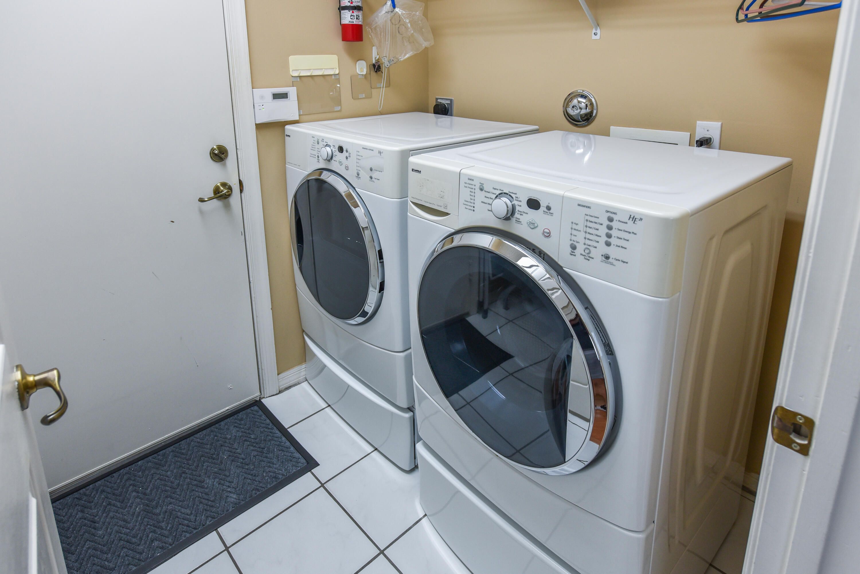 - Electric Water Heater, Dryer, Disposal, Dishwasher, Electric Range, Microwave, Refrigerator, Water Heater, Washer