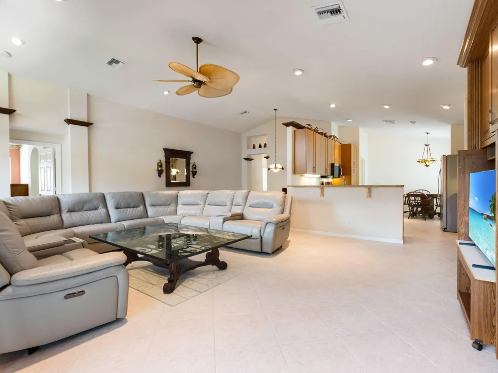 Welcome to your ideal Florida retreat in the sought-after 55+ community of The Cascades. This true 3-bedroom, 2-bath home offers both comfort and convenience with thoughtful upgrades throughout. Inside, you'll find a beautifully updated kitchen featuring granite countertops, deep sink, newer stainless steel appliances that include a GAS range and oven, as well as modern cabinets with pull-out shelves in the pantry and lower cabinetry--perfect for easy access and organization. There's no carpet in this home, offering a clean and sleek feel, and a propane back-up generator to add peace of mind.The spacious primary suite includes two walk-in closets and a renovated bathroom with brand-new vanities. second bathroom is equally impressive with a walk-in tub and a new vanity. There are