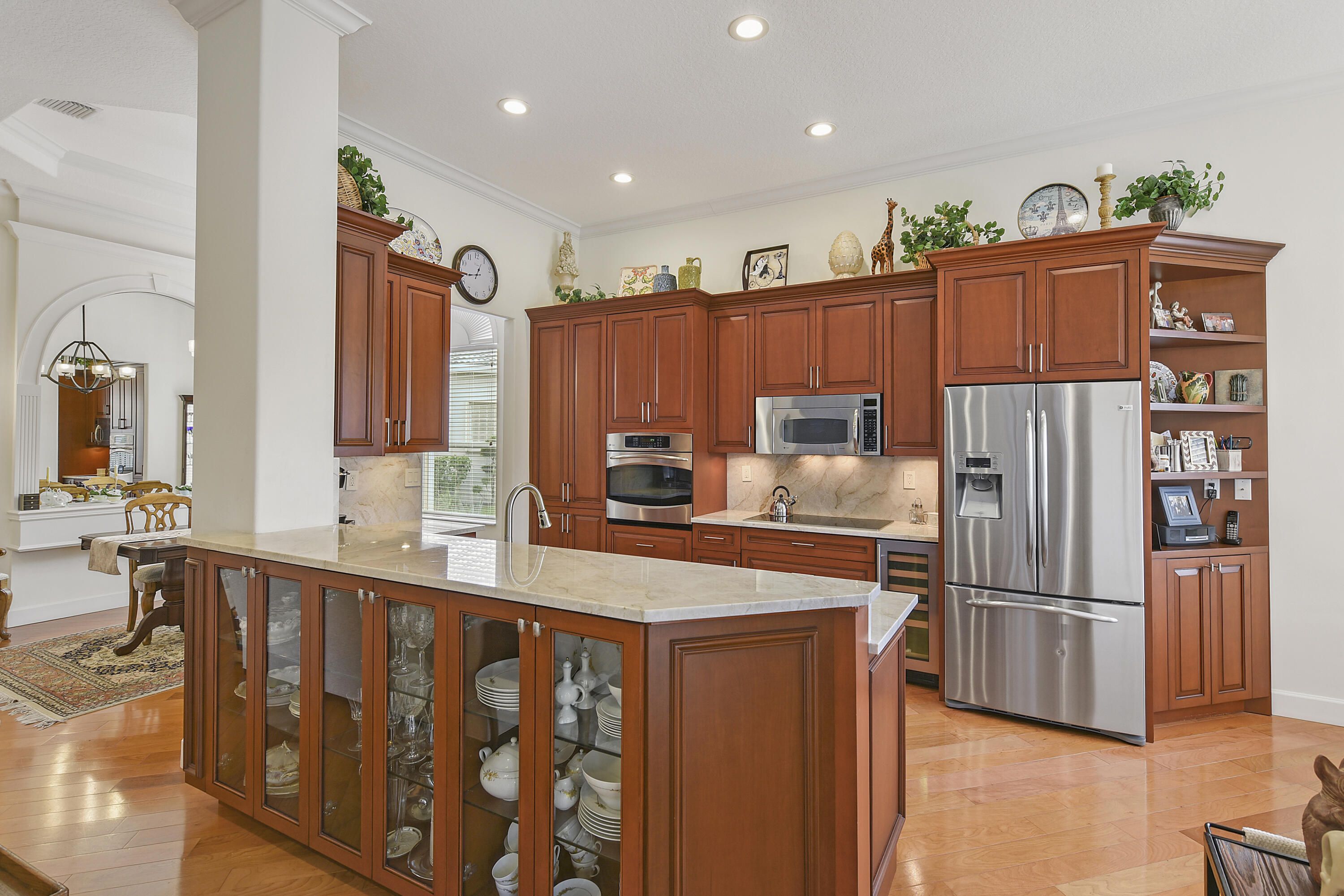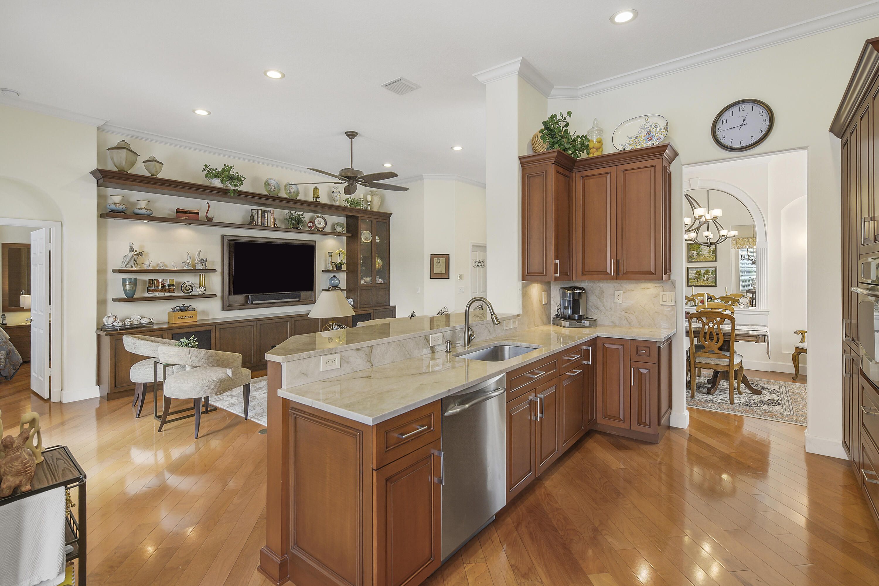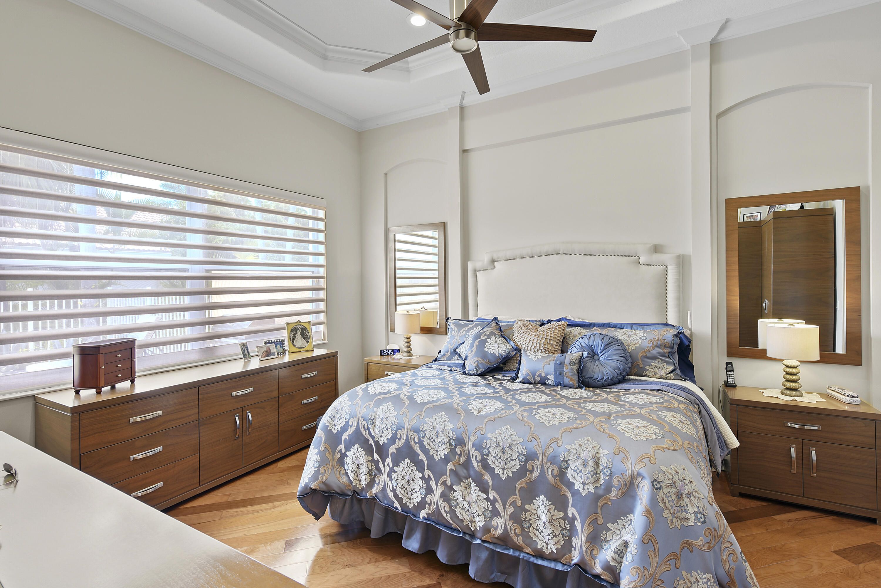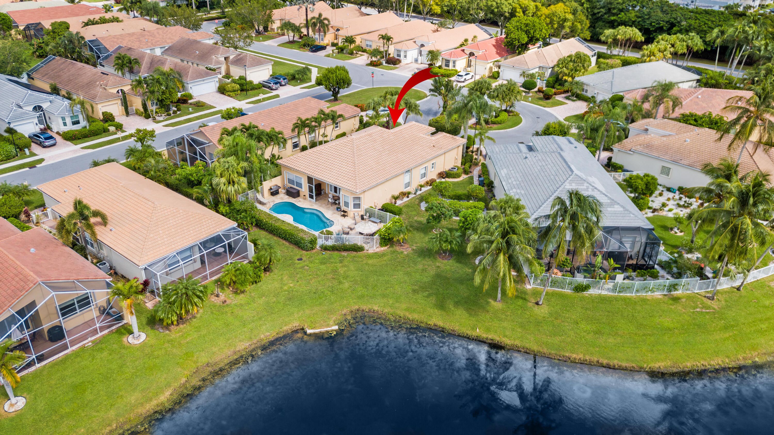 Sweeping lake view from this remodeled 1-story, 3 bdrm, 2.1 bath home with pool located on an oversized cul-de-sac home site. Stunning fully remodeled home has hardwood floors throughout, kitchen with designer wood cabinets, quartz counters & stainless-steel appliances, including a wine/beverage refrigerator & opens to the great room with custom designed high end modern entertainment center. The primary suite has custom his & her closets & a spa-like bathroom with marble floors, large shower with frameless glass enclosure & marble walls, a large vanity with marble counter, two sinks & custom mirrors & lighting. The 2 guest bathrooms have also been completely renovated. The covered loggia has a phantom screen & overlooks the incredible pool/patio area which is large enough to encompass