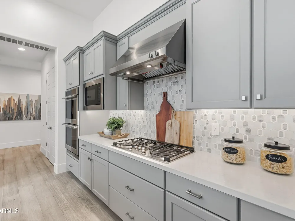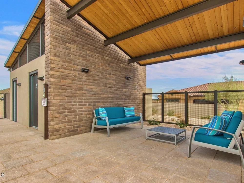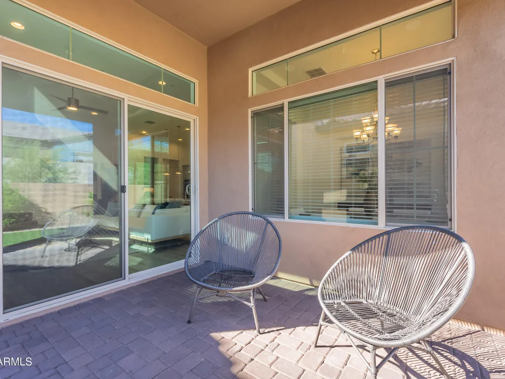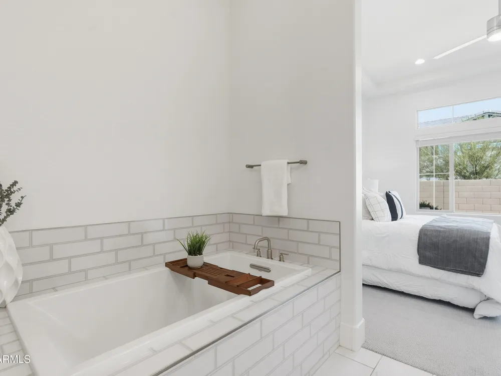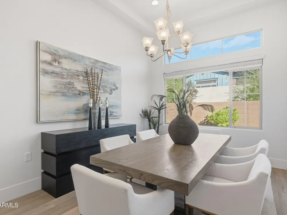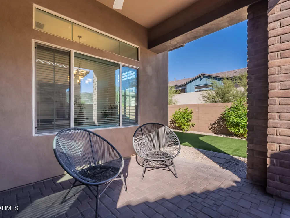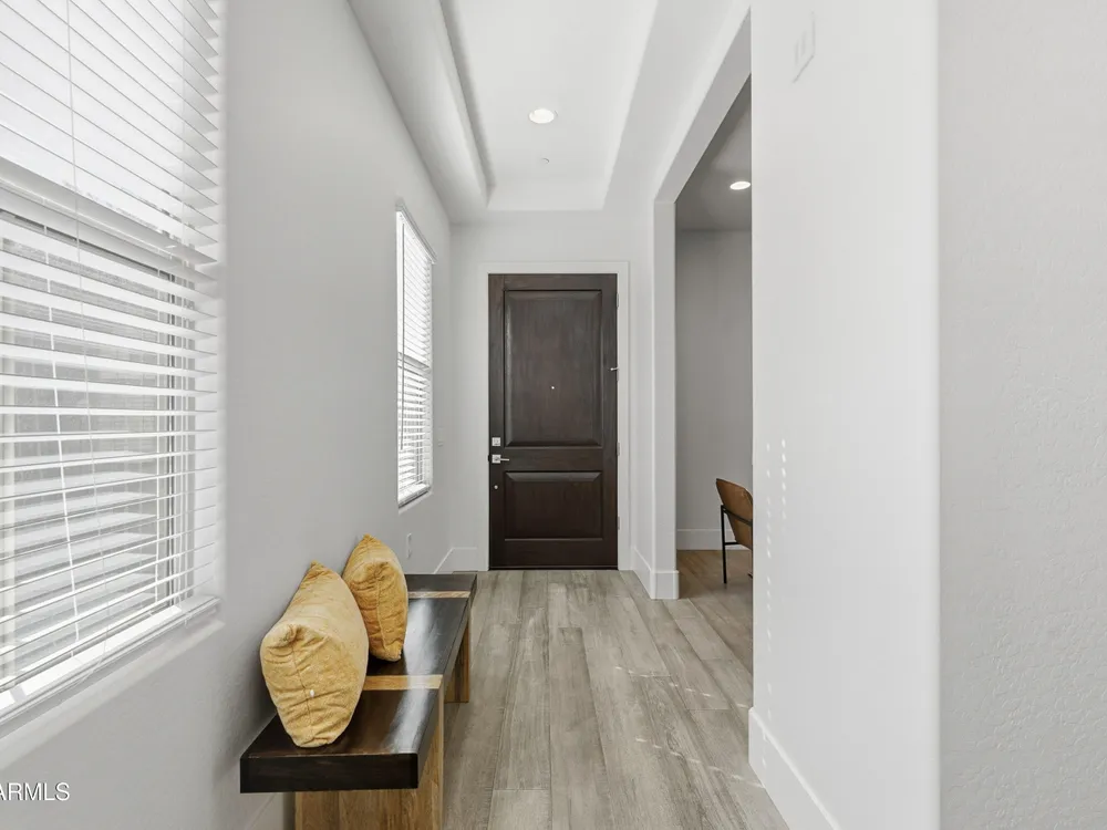 Luxury 2BR + Den in Scottsdale Heights 55+ Gated Community. Built in 2021, this single-story 2-bedroom + den, 2.5-bath home offers upscale living in the private, gated community of Scottsdale Heights in North Scottsdale. Enjoy an open floor plan with 12' ceilings, wood flooring throughout, and a chef's gourmet kitchen featuring Monogram stainless steel appliances, quartz countertops, double ovens, a large island, and breakfast bar. The spacious primary suite includes a double vanity, walk-in shower, and oversized walk-in closet. Step outside through sliding doors to a private backyard with new turf, pavers, and mountain views. Community amenities include a heated pool, jacuzzi, bocce ball and pickleball courts, full dog park, and professionally maintained front yards. Conveniently located near Summit Shopping Center, golf courses, and scenic walking, biking, and hiking trails. Move-in ready and a must-see!