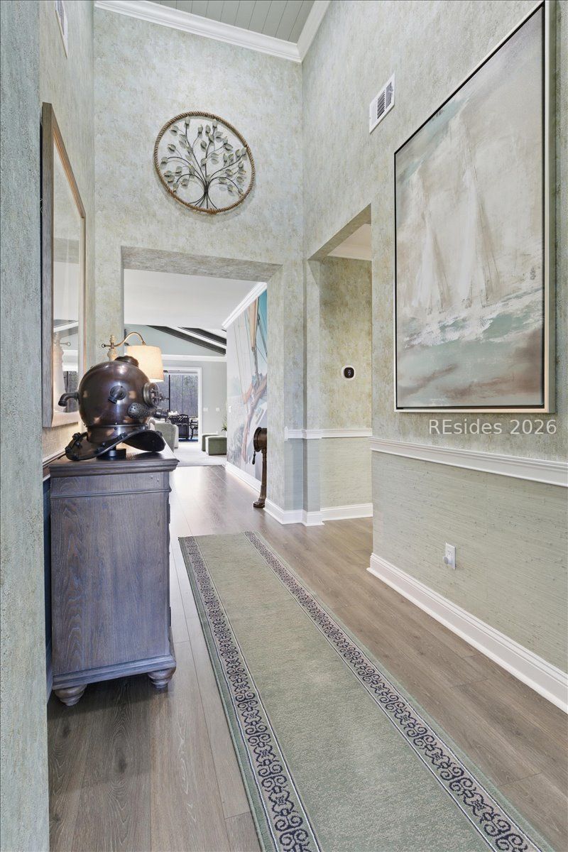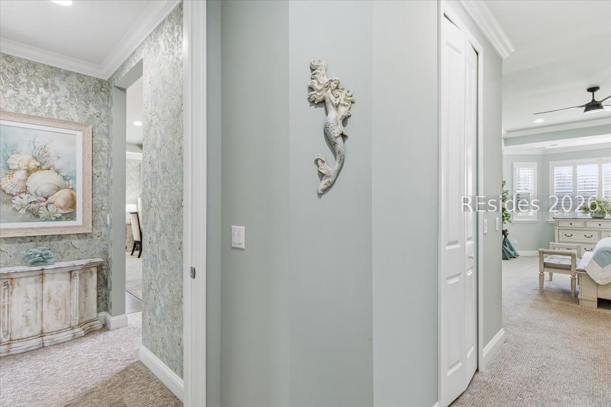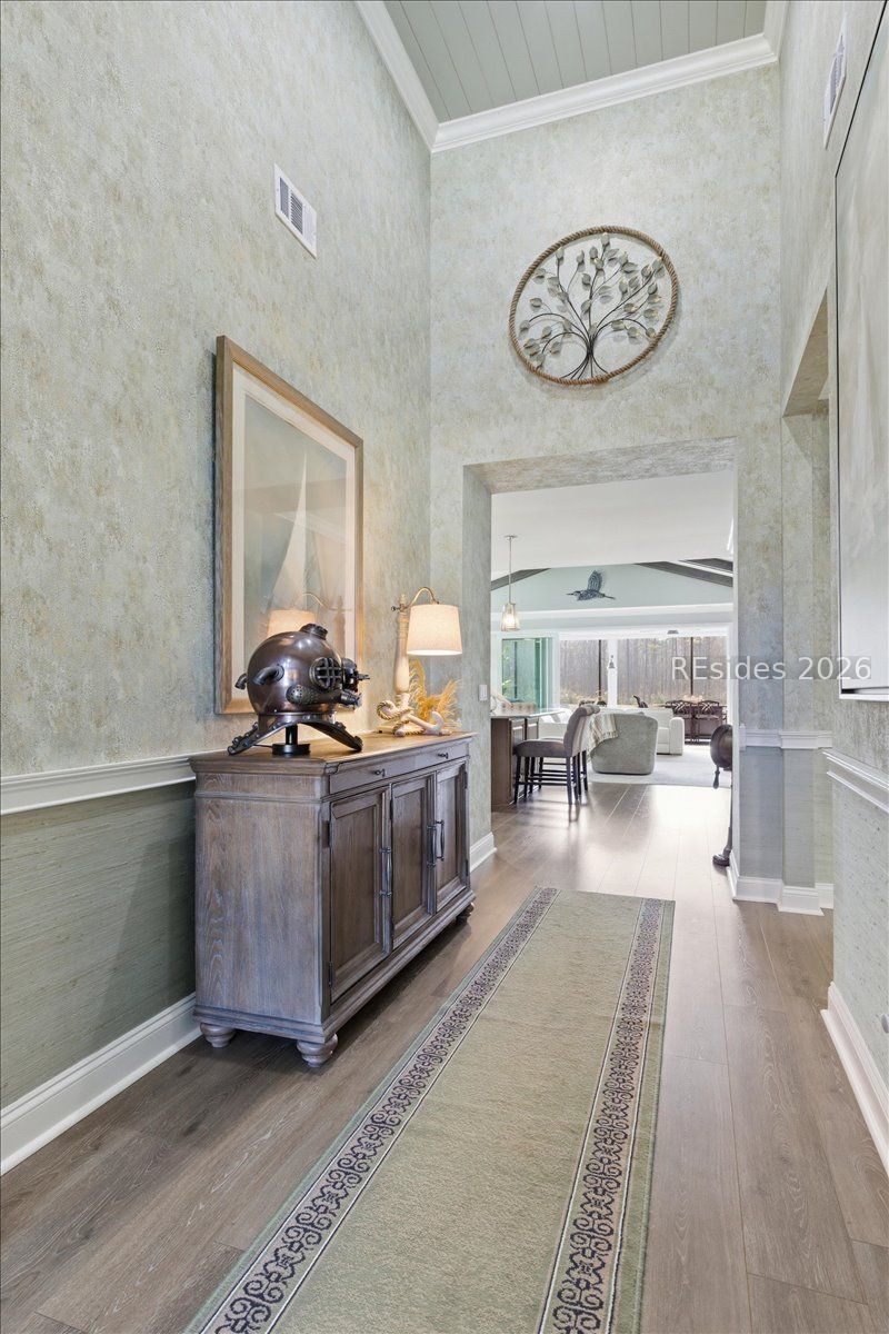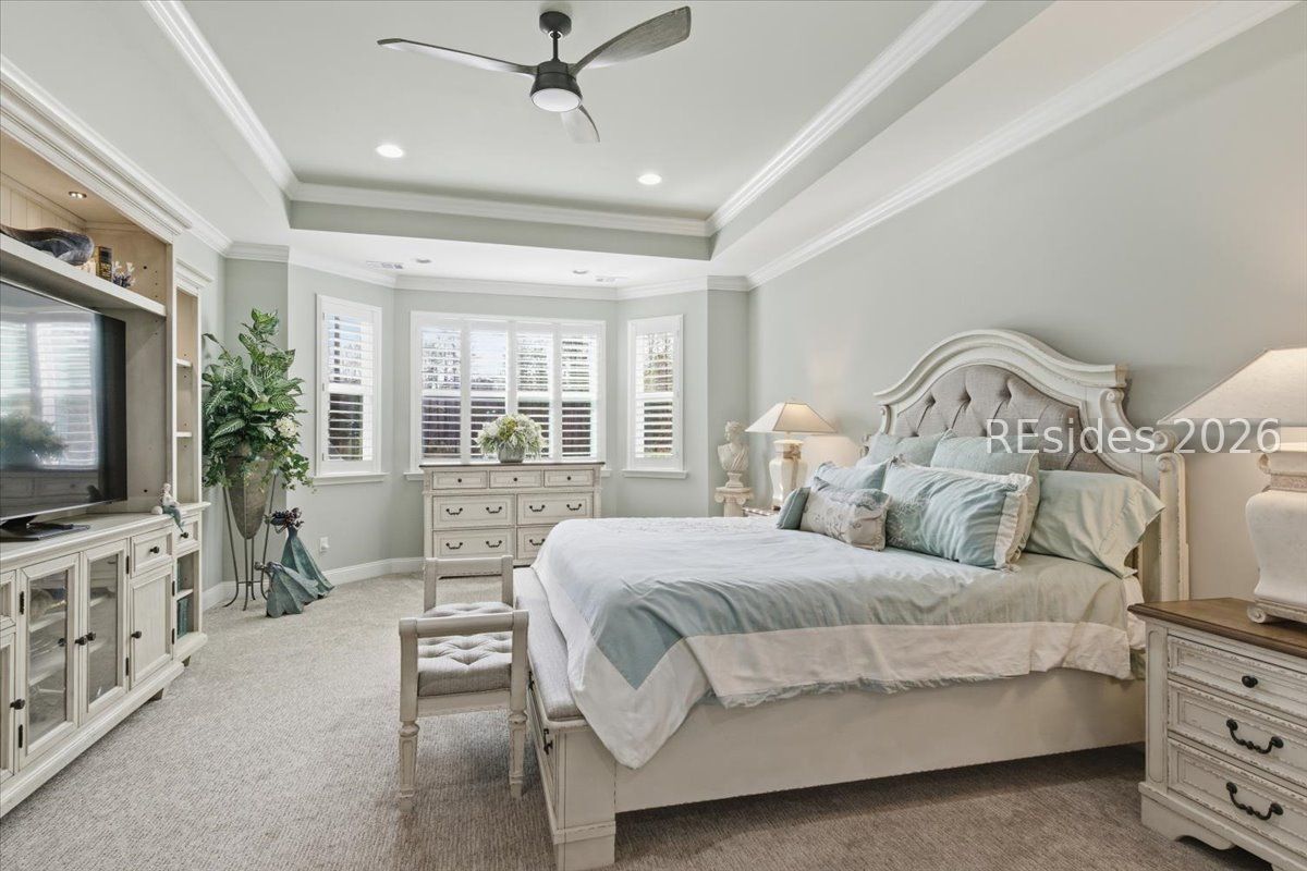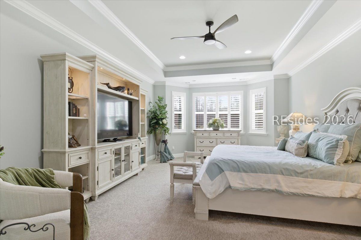 Experience the ultimate & "no worries" & lifestyle in this stunning residence located within the award-winning Latitude Margaritaville. Nestled quietly in Phase 5, the home welcomes you through a sophisticated glass front door into an inviting foyer, where a dramatic 14-foot shiplap ceiling immediately sets a coastal-chic tone. The open-concept layout features rich flooring that leads to a true chef's kitchen, fully equipped with 42-inch cabinetry with built-in pantry, a gas cooktop, a combination microwave and wall oven, soft-close drawers, and convenient pull-out shelving. In the heart of the home, a one-of-a-kind, custom built-in electric fireplace serves as an elegant centerpiece, framed by tiled walls, a designer mantle, and a stereo surround system. High-end finishes abound, including crown molding and plantation shutters throughout, ensuring every corner feels polished and refined. Adding to the coastal elegance, this home features a spacious master suite designed for unwinding. Dual closets provide abundant storage for your island wardrobe. The primary bathroom offers a large walk-in shower with duals inks and water closet. Two additional generously sized bedrooms, each tastefully decorated, offer comfortable accommodations for guests or family with a shared full bath between both bedrooms. The home also includes a well-appointed guest bathroom. A dedicated den, currently configured as a functional home office, provides a quiet retreat for productivity or relaxation, further enhancing the home & versatile floor plan and commitment to the carefree Latitude Margaritaville lifestyle. The transition to outdoor living is seamless via triple sliding glass doors that open to an expansive, birdcage-screened lanai, featuring overhead Florida screening to allow full access use even during those occasional inclement weather days. Here, you can enjoy your morning coffee while taking ins erene, unobstructed views of the pond-the perfect backdrop for the relaxingSouth Carolina Lowcountry lifestyle. Even the garage has been transformed into a functional masterpiece, featuring eco-friending Lifetime Green Coating flooring, wood-covered walls, a built-in home water filtration system, and ample attic storage. This meticulously maintained home offers more than just a place to live. It provides a gateway to the vibrant lifestyle, where world-class amenities, live entertainment, and a tropical atmosphere make every day feel like a vacation. Welcome home!