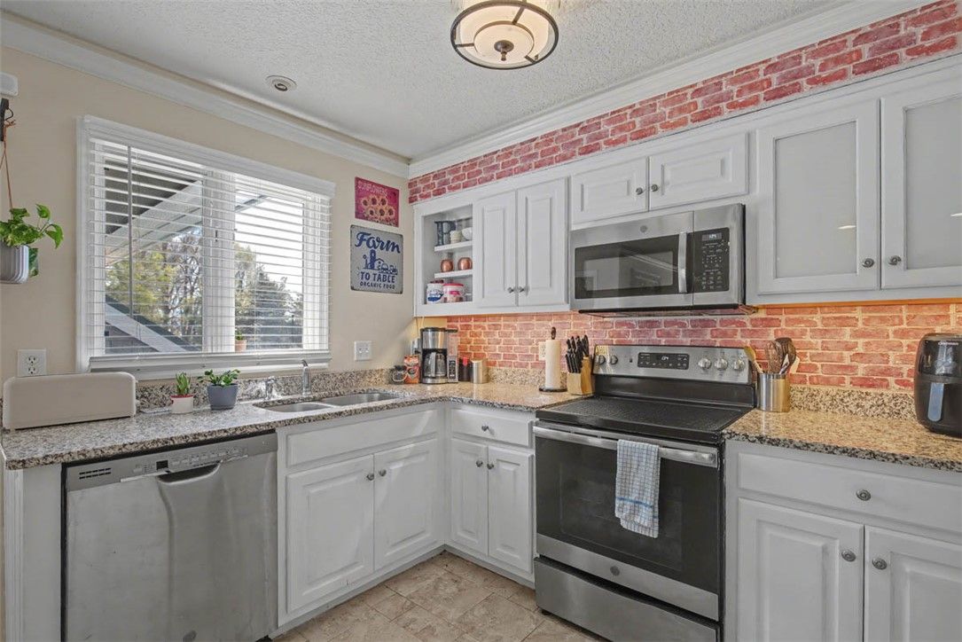 - Washer/Dryer Stacked, Dishwasher, Exhaust Fan, Electric Water Heater, Disposal, Microwave, Range, Refrigerator