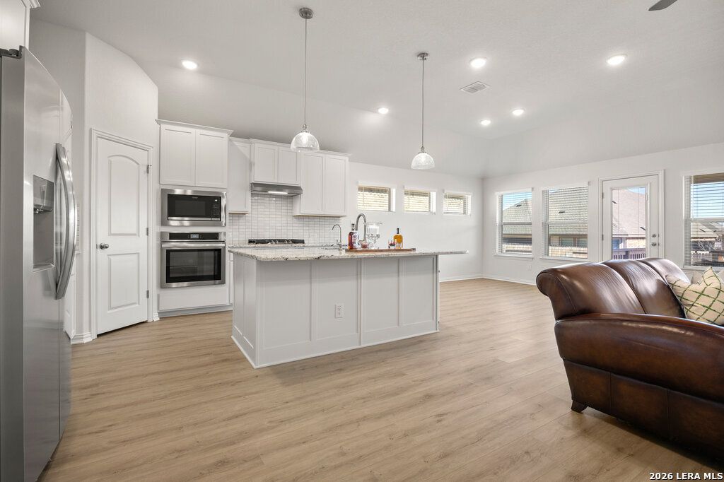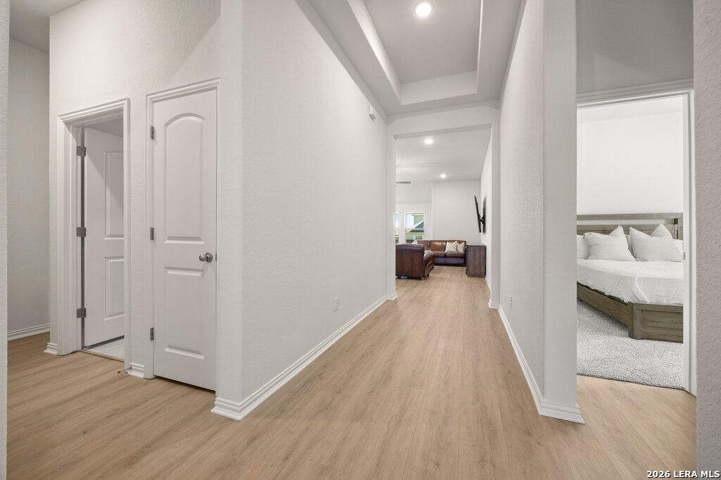 Welcome to 726 Groudsel Ave in the highly sought-after Veramendi Community of New Braunfels! This nearly new home - just about a year old and barely lived in - offers the feel of brand-new construction without the wait. Designed with the modern living in mind, the home features an open, light-filled layout with clean lines, contemporary finishes, and thoughtful details throughout. A standout feature is the tandem garage, providing flexible space for extra vehicles, storage, or a home gym/workshop. Located in Veramendi, residents enjoy master-planned lifestyle with access to trails, green spaces, community amenities, with close proximity to shopping, top rated schools, and the charm of historic New Braunfels. Move-in ready, meticulously maintained, and ideally situated. This is a fantastic opportunity to own a like-new home in one of the area's premier communities.