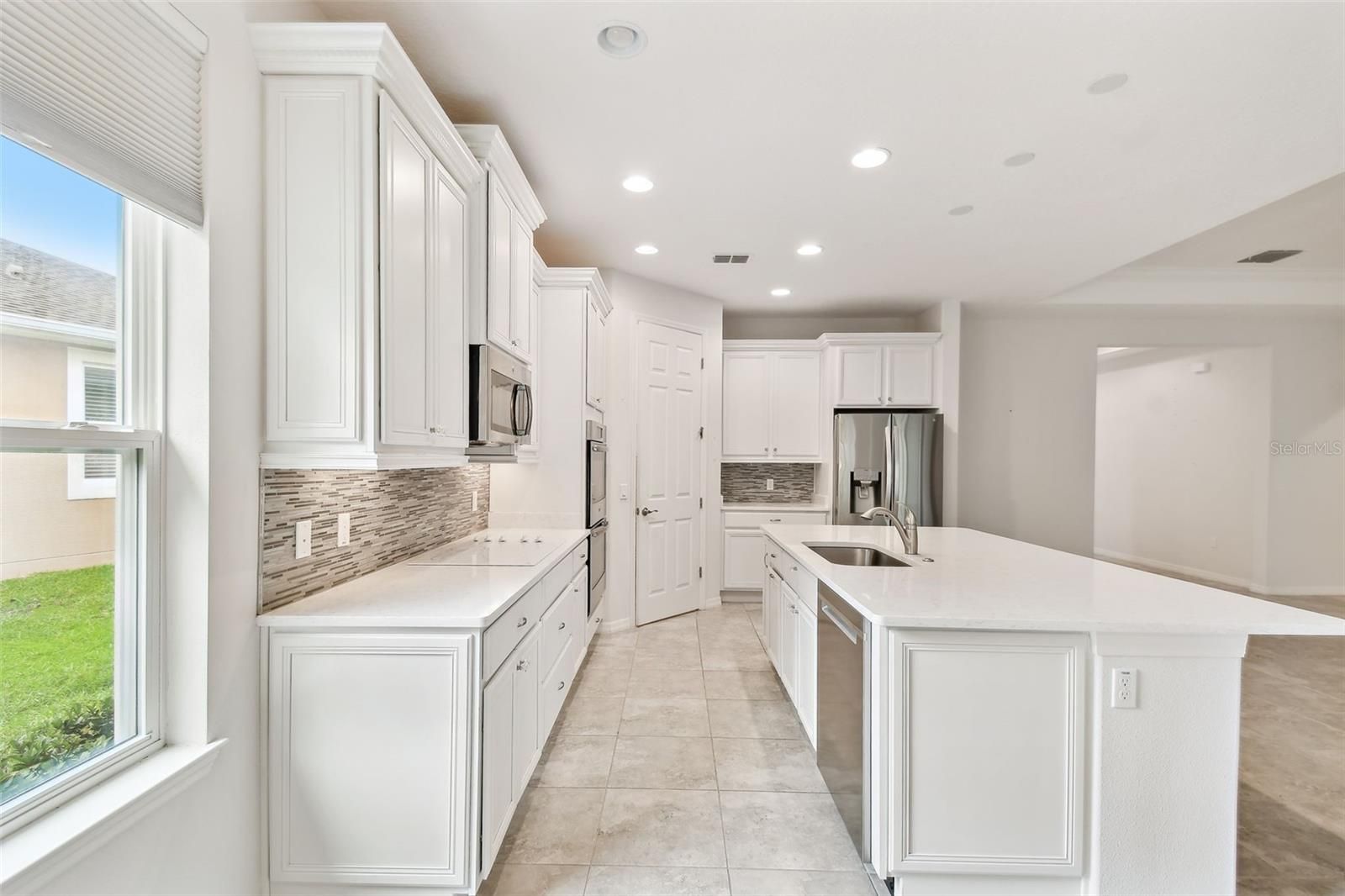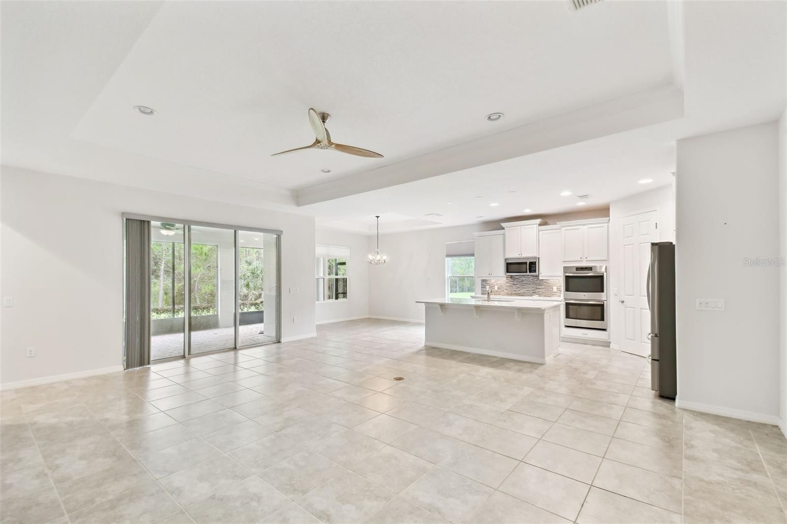 Price Reduction! This popular Siena model offers a stunning combination of style, comfort, and functionality. With 3 bedrooms, 2.5 bathrooms it’s designed for modern living. Situated on a peaceful conservation lot, the home features an open-concept great room with ceramic tile flooring, creating a warm and inviting atmosphere. The chef’s gourmet kitchen is the centerpiece, equipped with quartz countertops, a stylish tile backsplash, double oven, cooktop, and an eat-at bar—perfect for entertaining. The spacious walk-in pantry keeps everything organized. Adjacent to the kitchen, a generous dining area overlooks the conservation area and opens to a screened lanai, ideal for outdoor dining or relaxing with nature.The large primary bedroom boasts a tray ceiling, ample natural light, and conservation views, complemented by a sitting area. The en-suite bathroom features a custom shower with a built-in seat, dual vanities, and two spacious walk-in closets. The second and third bedrooms are generously sized, each with their own walk-in closet, providing plenty of storage. Additional features include a guest bathroom with a tub/shower, a dedicated laundry room with a sink, and an expansive backyard with space for a pool and fencing—great for family fun and pets. The 2-car garage, along with an extra golf cart garage, offers ample storage. Located on a serene lot close to the Palms Resort community amenities, this home truly combines luxury, practicality, and tranquility. Solivita is known for its vibrant 55+ community, offering an abundance of activities and amenities for active adults. Whether you’re enjoying a round of golf, engaging in fitness classes, or simply strolling along scenic walking paths, this neighborhood promotes an active and fulfilling lifestyle with over 200 clubs, sports, and activities. Enjoy the community’s clubhouse, softball field, 14 swimming pools, an indoor walking track, and much more. Every day offers something new to explore and enjoy! This home also features easy access to nearby shops, dining, and health care, offering the perfect balance of convenience and privacy. Whether you’re relaxing at home or exploring the vibrant community, this home offers the perfect balance of privacy and lifestyle.