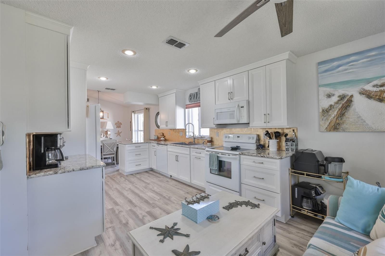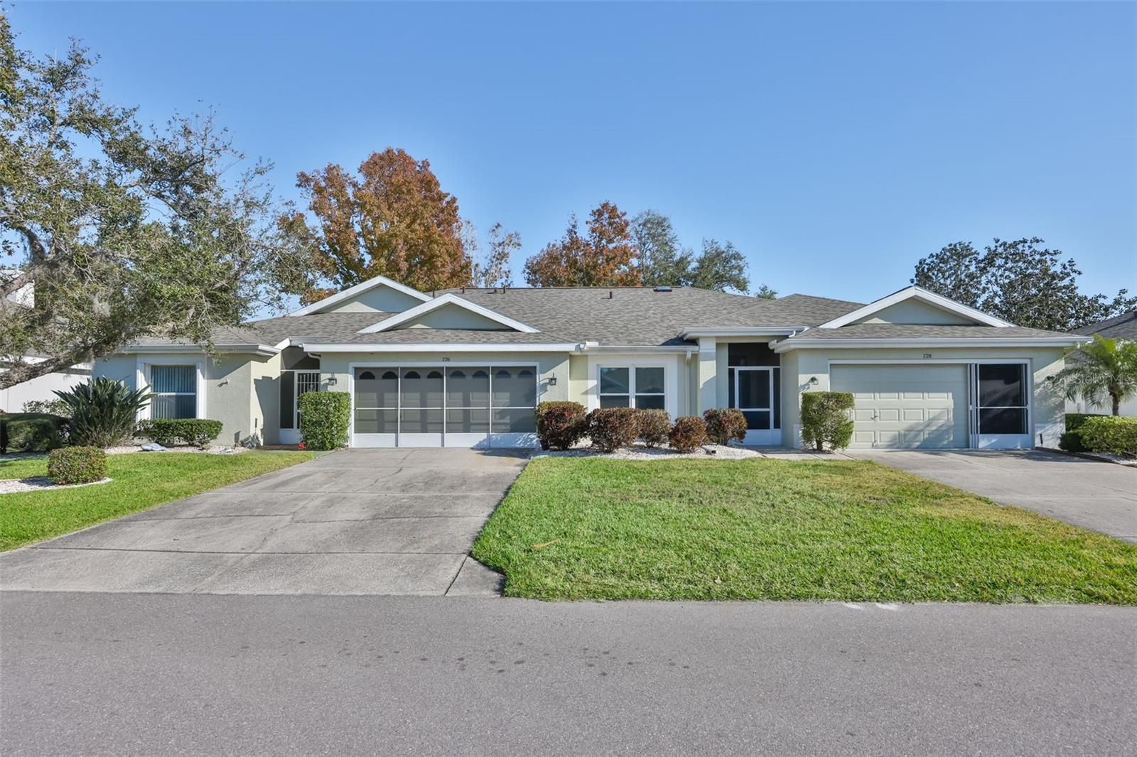 Welcome to 726 Masterpiece Drive in the highly sought-after Manchester II association of Kings Point, Sun City Center. This beautifully updated Seabreeze model offers 1,444 sq. ft., 2 bedrooms, 2 bathrooms, and a 2-car garage with thoughtful upgrades throughout. Enjoy peace of mind with a new roof (summer 2025), new gutters and gutter guards, 2018 HVAC system, and 2018 hot water heater. The home also features new hurricane shutters throughout (excluding the screened lanai) for added protection and value. The stunning remodeled kitchen boasts granite countertops, soft-close cabinetry, luxury vinyl flooring, a deep industrial sink, reverse osmosis system, new microwave, and a newer refrigerator still under warranty. The spacious layout includes a breakfast area that opens to the private screened lanai, plus a dining area and great room with vaulted ceilings, creating an open and airy feel. The split-bedroom floor plan provides privacy for guests. The primary suite features both a walk-in closet and a secondary closet, along with a beautifully updated en-suite bath showcasing new cabinetry, mirrors, and sink. The guest bedroom is conveniently located near the full guest bath. Additional highlights include a decorative glass front door, screened front entry for cross ventilation, and new screened sliders on the garage door. Even better, the Manchester II association fees are scheduled to decrease to $810 beginning in March, adding even more value to this exceptional home. Living in Kings Point means enjoying a true resort lifestyle—with multiple clubhouses, indoor and outdoor pools, fitness centers, pickleball, lawn bowling, golf, cafés, and over 200 social clubs. Dedicated golf cart lanes make it easy to reach shopping, dining, and top-rated medical facilities right within the community. Your monthly condo fee covers nearly everything—lawn care, roof maintenance, exterior painting, pest control, cable TV, Internet, water, sewer, insurance, 24-hour guard-gated security, and transportation—making this the ideal choice for both seasonal and year-round living. Conveniently located just minutes from shopping, dining, and award-winning medical centers, and less than 45 minutes from Tampa, Sarasota, and the Gulf beaches. Schedule your private showing today and discover the perfect blend of comfort, style, and breathtaking views—Florida living at its finest! Move-in ready and loaded with upgrades—this is Florida living at its best in Kings Point!