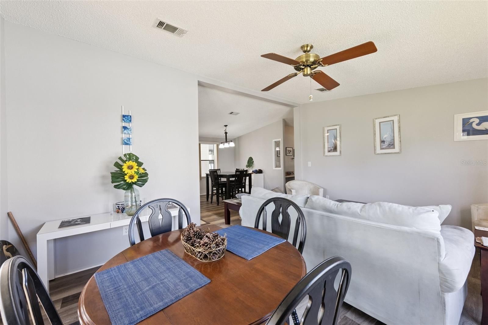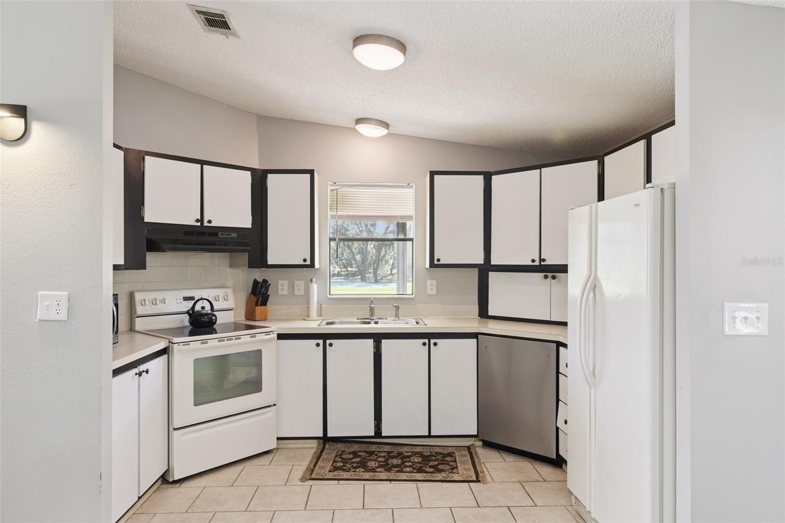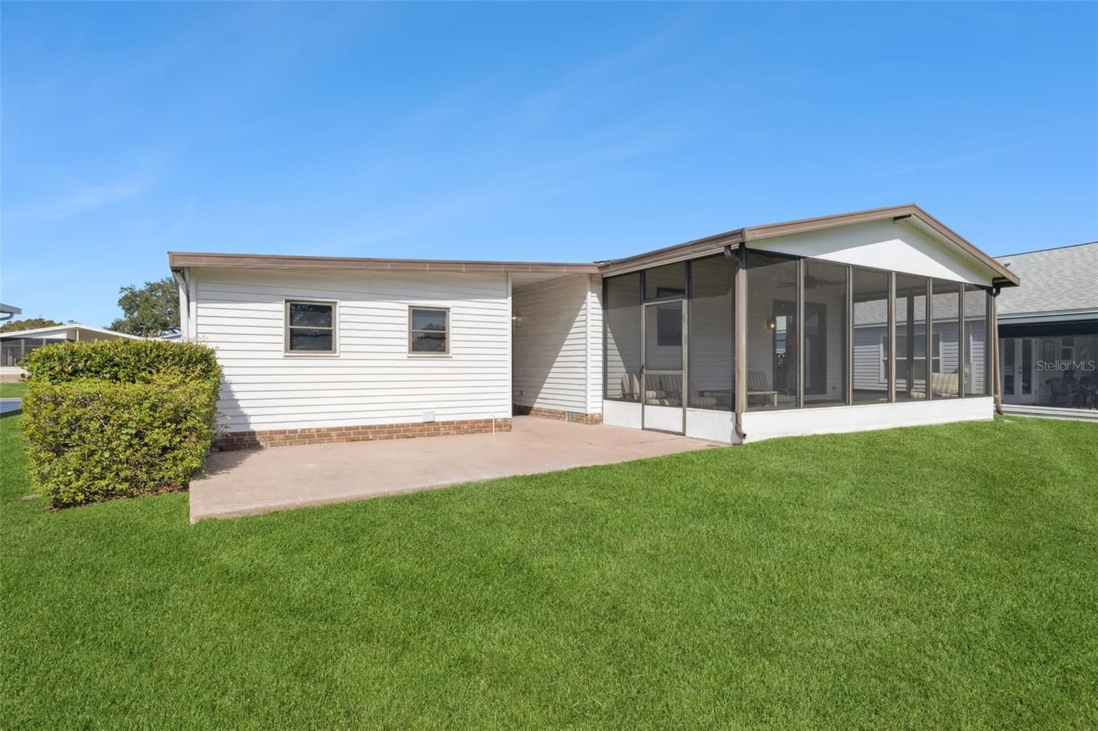 Here it is!!! The Villages Lifestyle at its finest! Full time or as a snow bird, you can relax and look out at the Golf Course in Orange Blossom Gardens. That's the view you would have from your back enclosed lanai and outdoor patio. This 2 BR 2 BA home is located on a quiet street close to the Orange Blossom Country Club, Recreation Centers, Shopping, Medical, Restaurants and all the other great amenities The Villages offers. The home features just over 1000 sq feet under Heat and Air. Recently, new carpet was added in the master and guest bedrooms along with vinyl planking flooring in both baths. The master bath vanity has also been replaced. The expanded driveway accommodates several cars and there is even a Golf Cart Garage with adjoining Utility Room complete with washer and dryer. The Roof was replaced in 2020.
