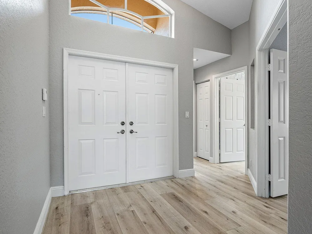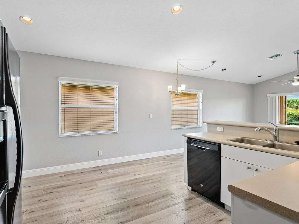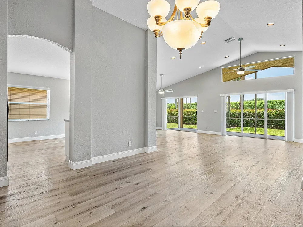 Spectacular Value on this Mint Condition Home in Ponte Vecchio. This Beautiful Home Features New Wood Look Flooring Throughout. The Interior has been Freshly Painted in Modern Tones. The Vaulted Ceilings in the Living Areas Welcome Incredible Natural Light. The Home has an Open Great Room Floorplan. The Kitchen Offers Lots of Counter Space and Cabinets. The Large Primary Bedroom Boats Two Walk-In Closets and a Luxurious Bathroom. Step Out Back to The Private and Peaceful Backyard with a Huge Screened Patio Facing Sunny Southern Views. Ponte Vecchio is an Incredible Active Adult Community with a Gorgeous Active Clubhouse with a Theater, Card Rooms, Fitness Center, Pickleball & More! Don't Miss Out on this Opportunity to Own a Move In Ready Home in an Incredible Location all for Under 400k!