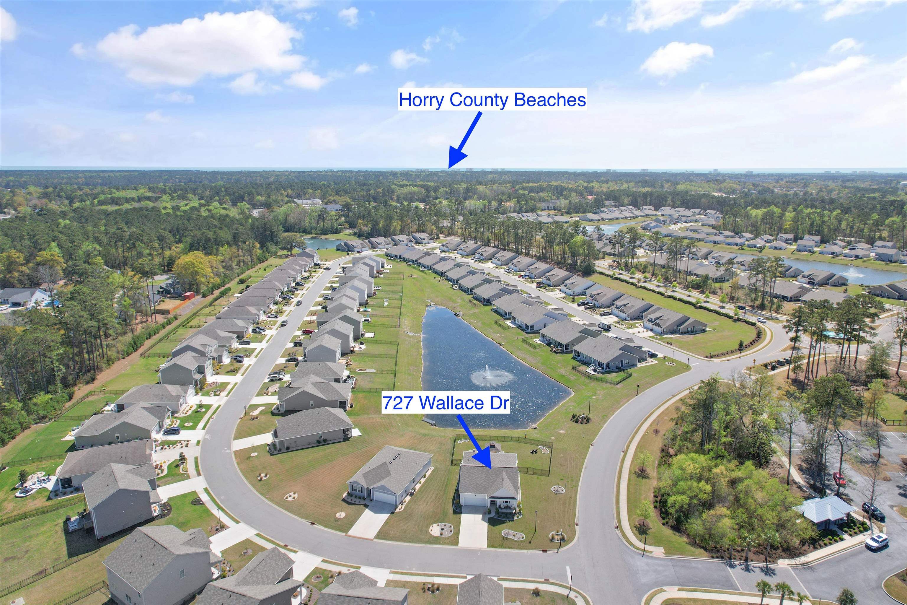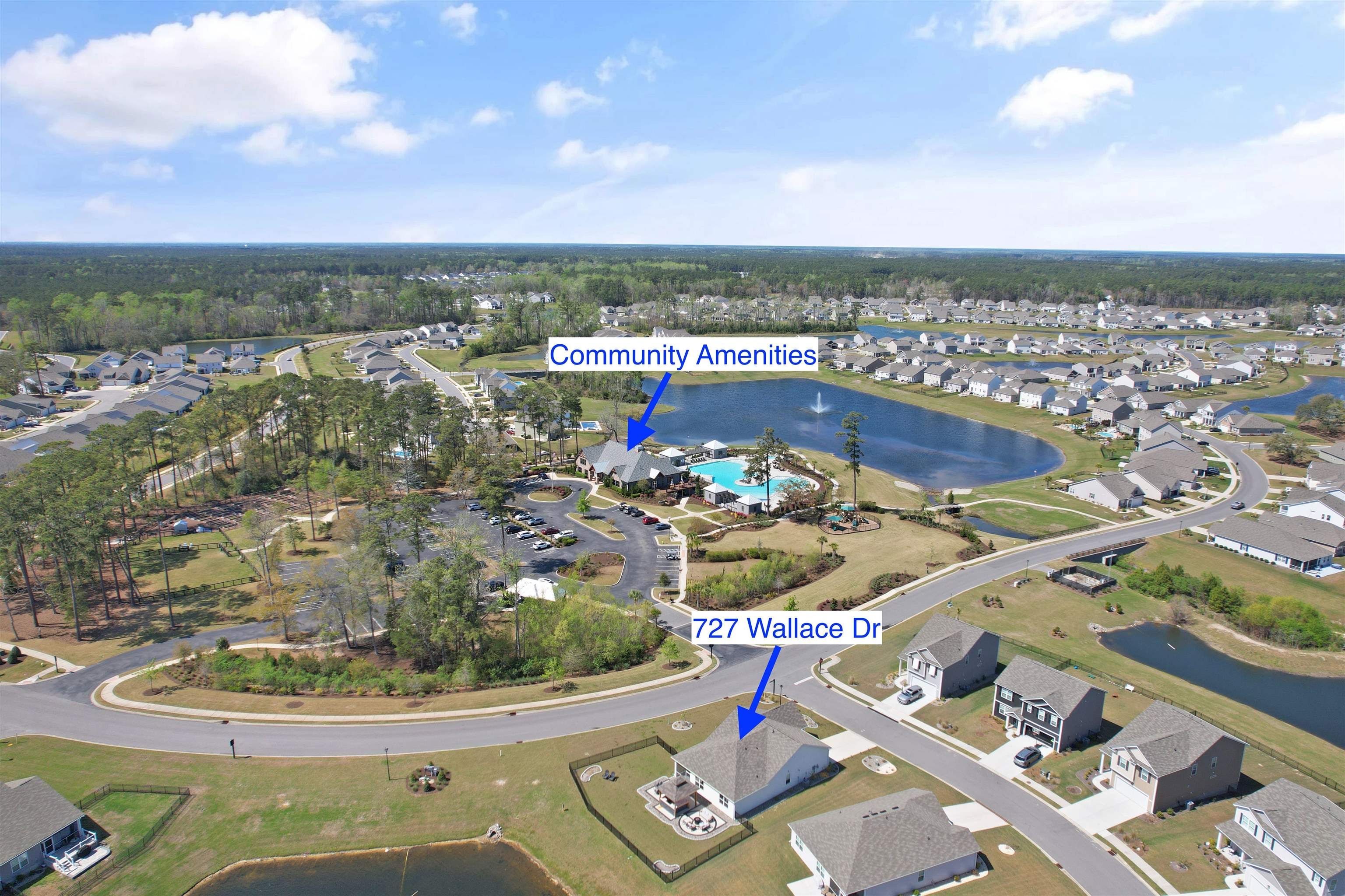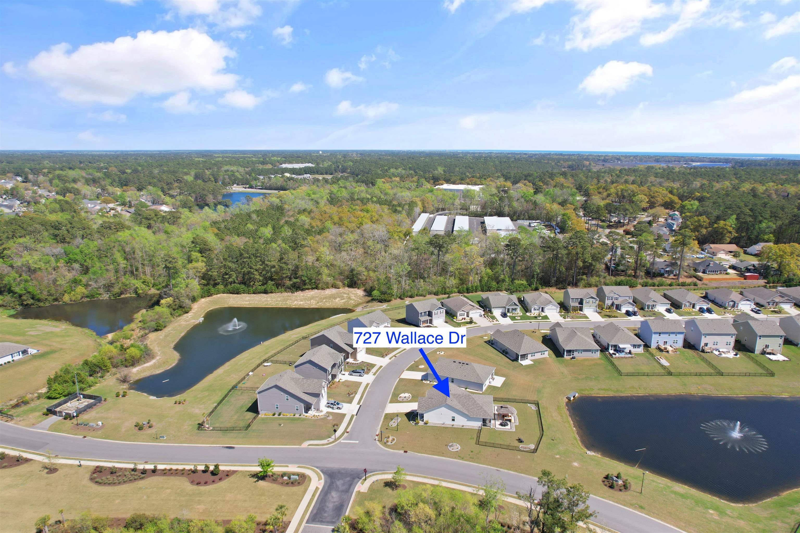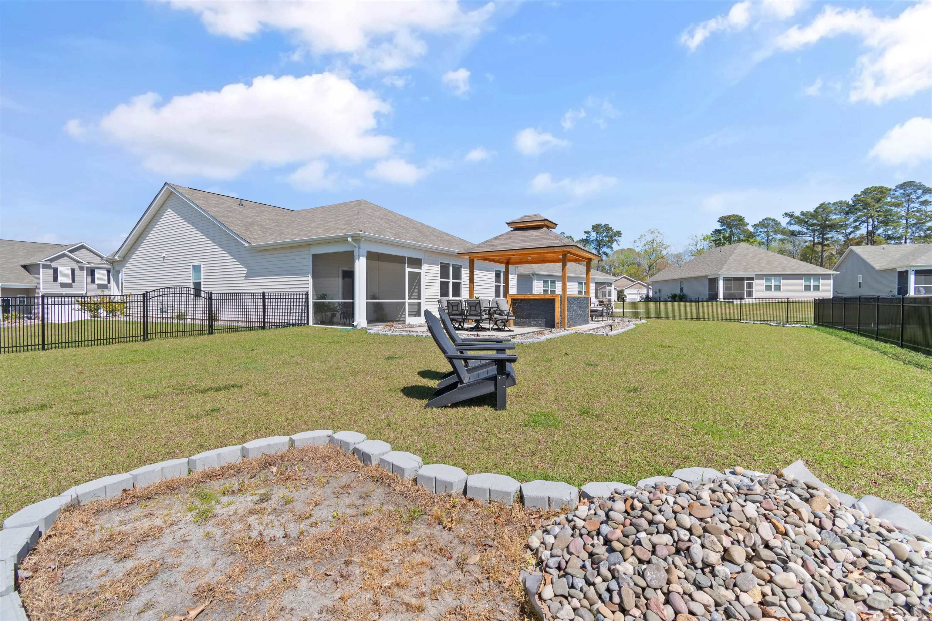 Welcome to Heather Glen; a modern, active-lifestyle community with a stop light for convenient travel onto highway 17. This neighborhood will greet you with a historic live oak centerpiece bordered by a waterfall entrance. When you curve around, it opens up to a tree lined road with sidewalks and mature landscaping. 727 Wallace Dr stands out from the rest with it's outdoor living space. The outdoor addition contains a pavilion nestled between a fire pit and dining area right outside the screened porch. The pavilion has a bar area, drink fridge, and grill. All of this inside a generously fenced yard that over looks the pond. Inside, this ranch style home offers four bedrooms and two bathrooms that have been thoughtfully planned to allow everyone their space. Anchored by an open concept kitchen with a modern gas stove, granite counter tops, walk in corner pantry, and large windows through out with a gorgeous view. The primary bedroom sits in the back of the home away from any noise. It also shares in the privilege of having the glistening water of the pond right outside. The bathrooms have matching granite countertops with a walk in shower in the primary. Luxury vinyl floors are all throughout this home - perfect for our little beach life. Location always matters, even where you are in the neighborhood. This home is right across the street from the mailboxes, resort style pool, and the clubhouse; featuring a fitness center, yoga studio, community kitchen, and event spaces. Heather Glen is a truly special neighborhood with small touches sprinkled all over; a dog bark just for play dates, a playground area for little ones, along with a blueberry garden, sprawling lakes, and walking trails. This exceptional home is still in pristine condition. It's been a second home since it's purchase and never used to it's full potential. The moment you walk in, you will feel this home asking to be yours.