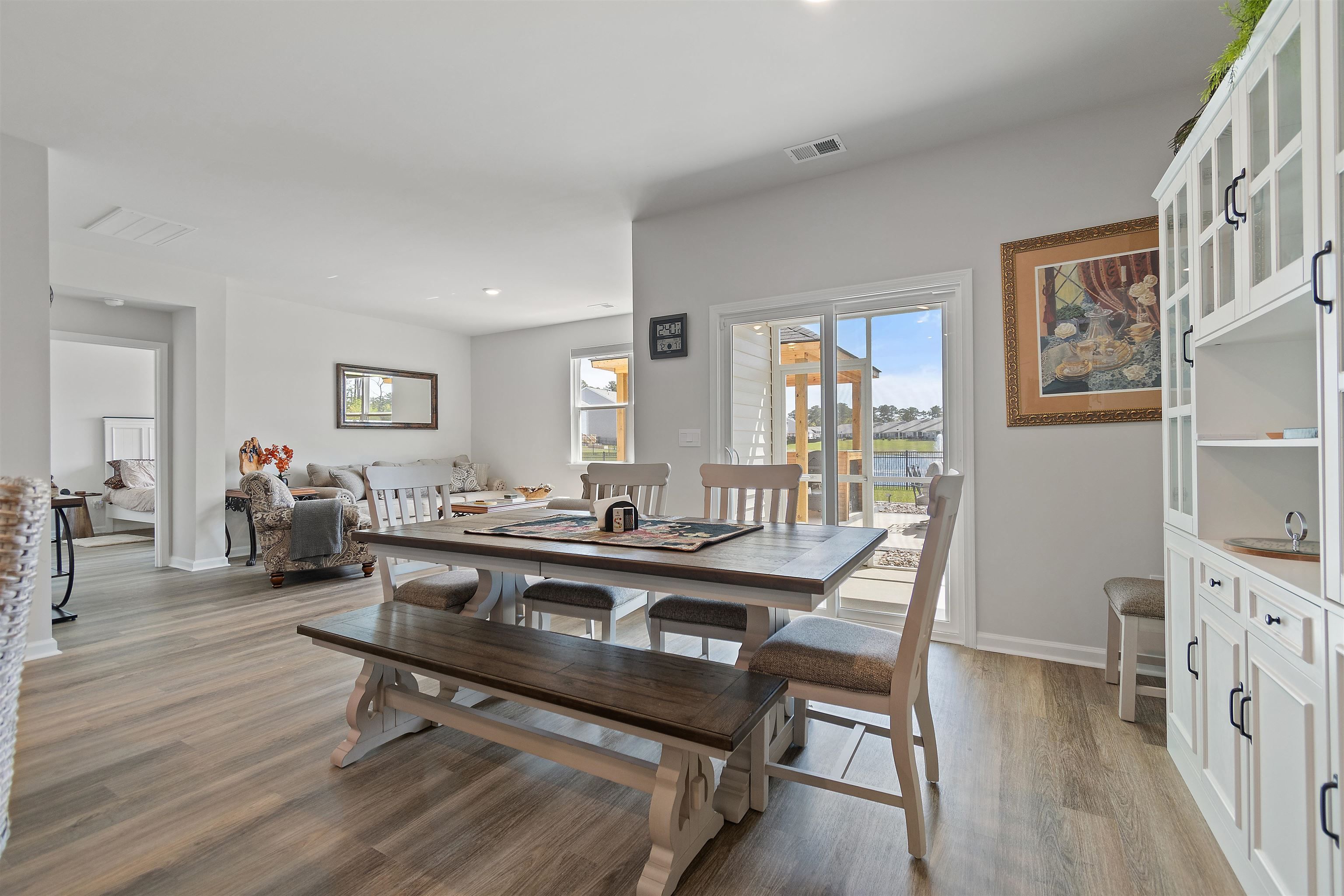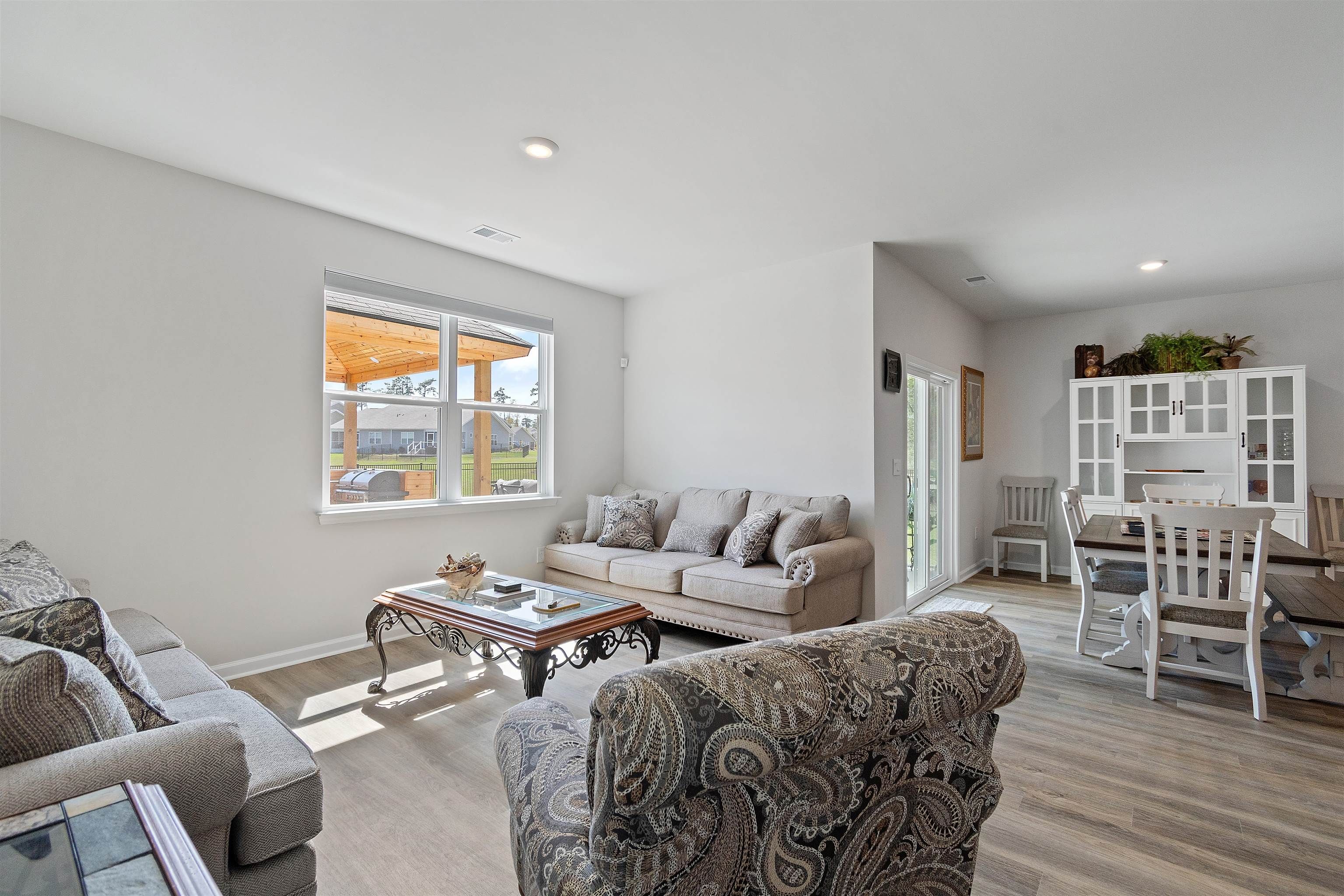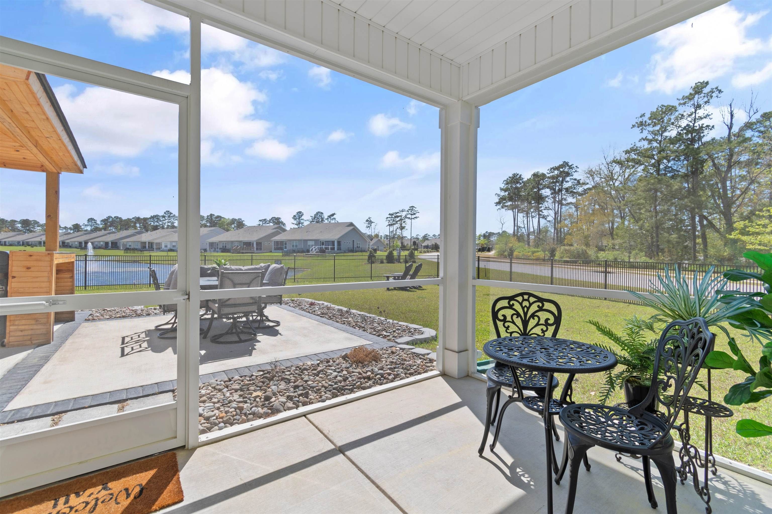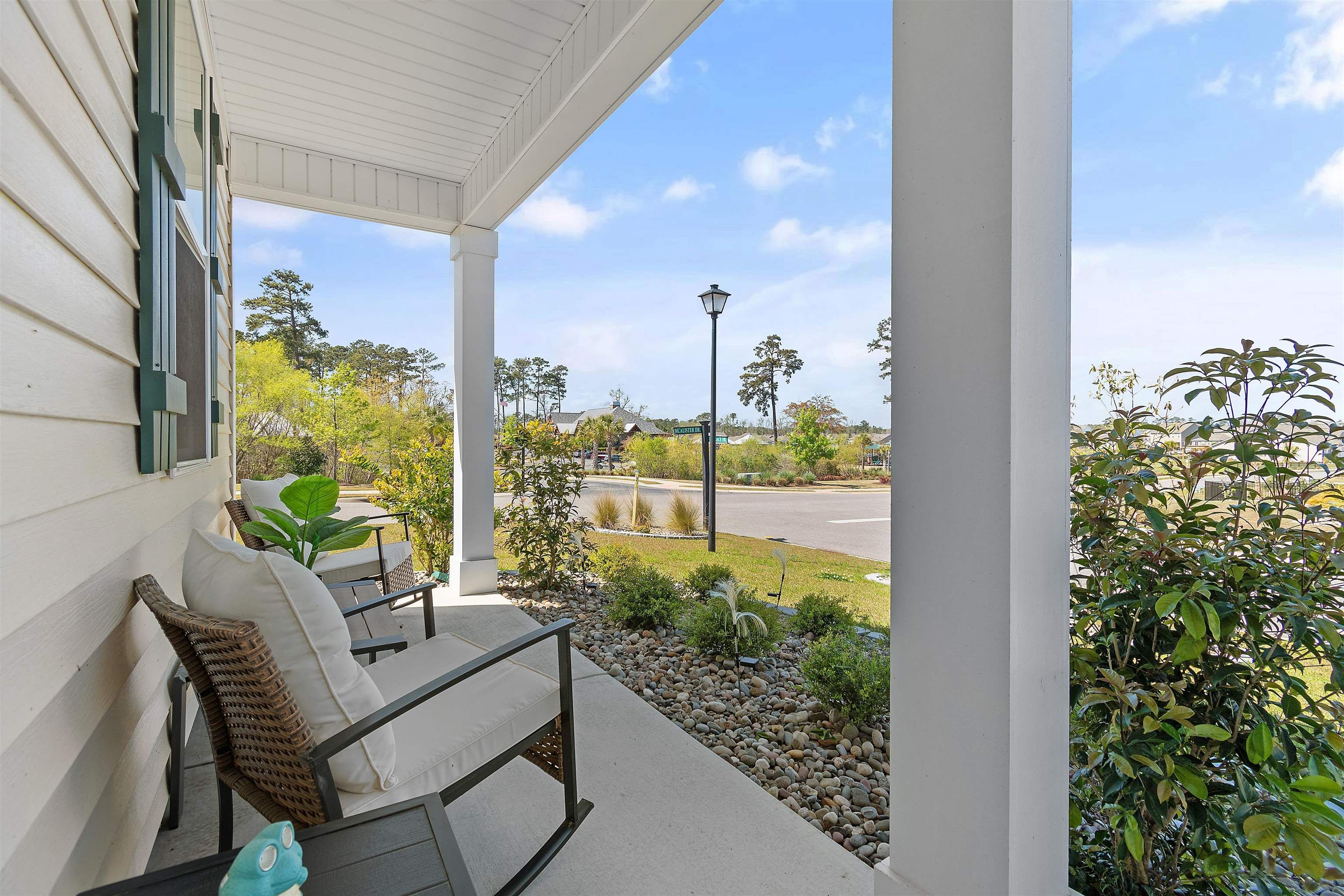 Welcome to Heather Glen; a modern, active-lifestyle community with a stop light for convenient travel onto highway 17. This neighborhood will greet you with a historic live oak centerpiece bordered by a waterfall entrance. When you curve around, it opens up to a tree lined road with sidewalks and mature landscaping. 727 Wallace Dr stands out from the rest with it's outdoor living space. The outdoor addition contains a pavilion nestled between a fire pit and dining area right outside the screened porch. The pavilion has a bar area, drink fridge, and grill. All of this inside a generously fenced yard that over looks the pond. Inside, this ranch style home offers four bedrooms and two bathrooms that have been thoughtfully planned to allow everyone their space. Anchored by an open concept kitchen with a modern gas stove, granite counter tops, walk in corner pantry, and large windows through out with a gorgeous view. The primary bedroom sits in the back of the home away from any noise. It also shares in the privilege of having the glistening water of the pond right outside. The bathrooms have matching granite countertops with a walk in shower in the primary. Luxury vinyl floors are all throughout this home - perfect for our little beach life. Location always matters, even where you are in the neighborhood. This home is right across the street from the mailboxes, resort style pool, and the clubhouse; featuring a fitness center, yoga studio, community kitchen, and event spaces. Heather Glen is a truly special neighborhood with small touches sprinkled all over; a dog bark just for play dates, a playground area for little ones, along with a blueberry garden, sprawling lakes, and walking trails. This exceptional home is still in pristine condition. It's been a second home since it's purchase and never used to it's full potential. The moment you walk in, you will feel this home asking to be yours.