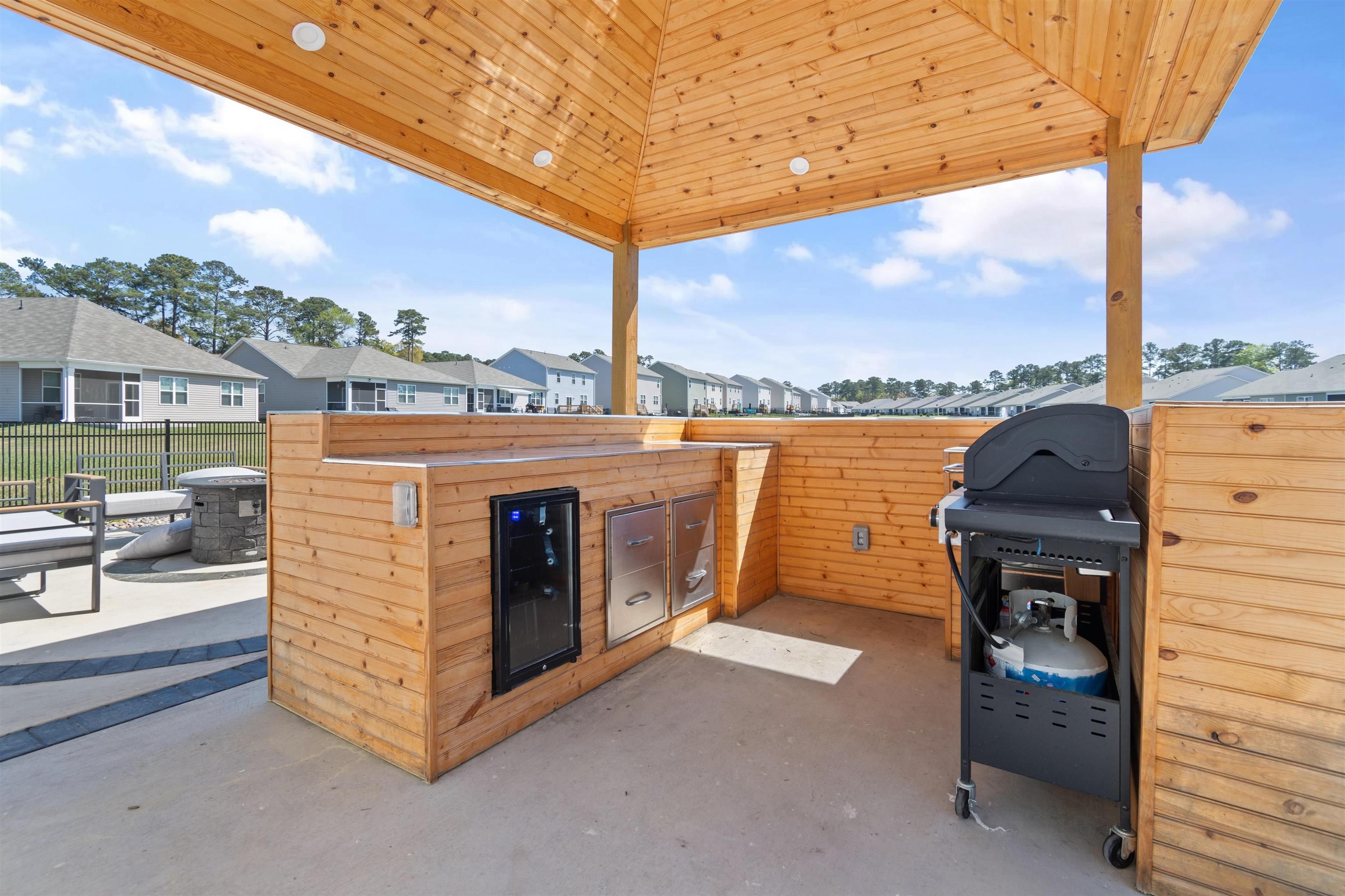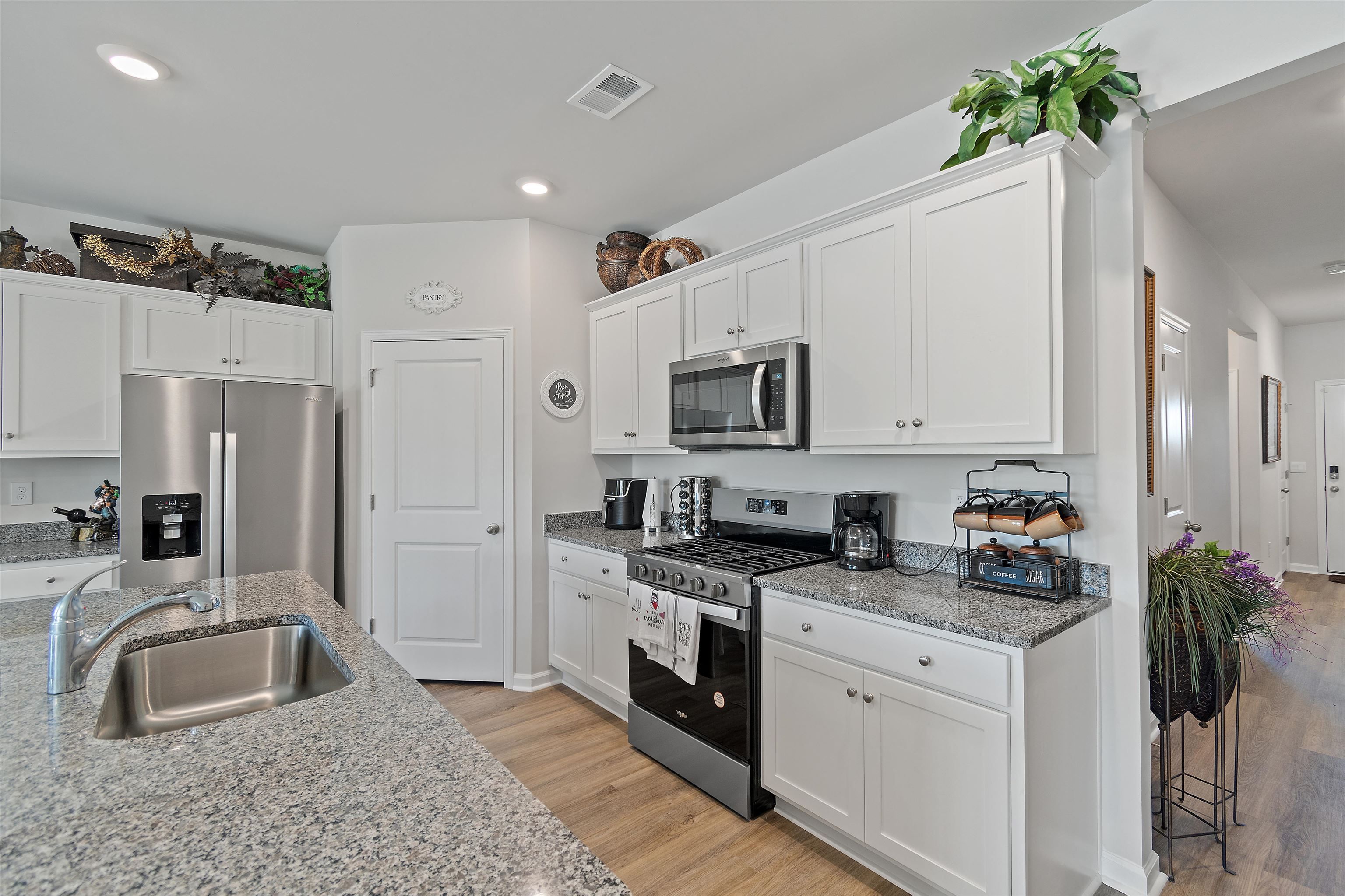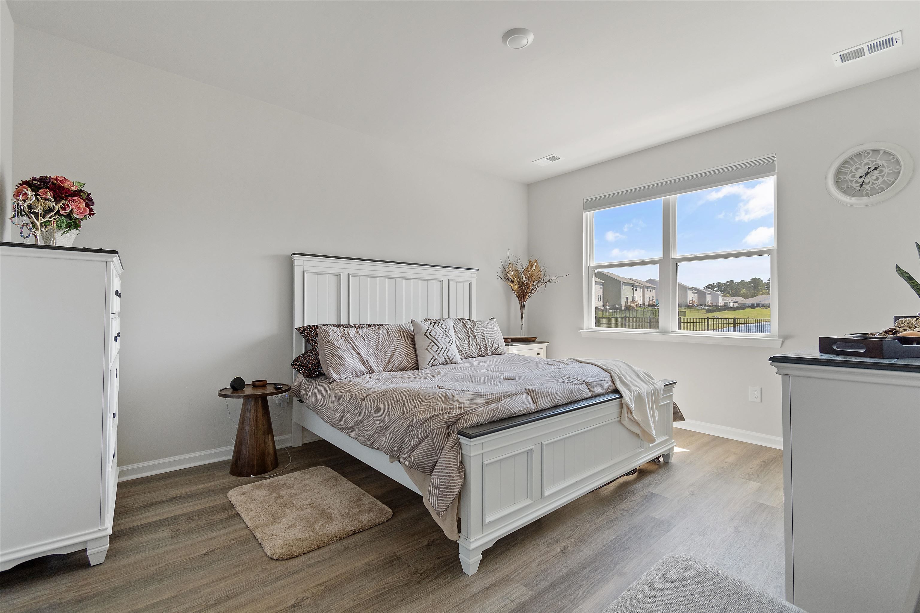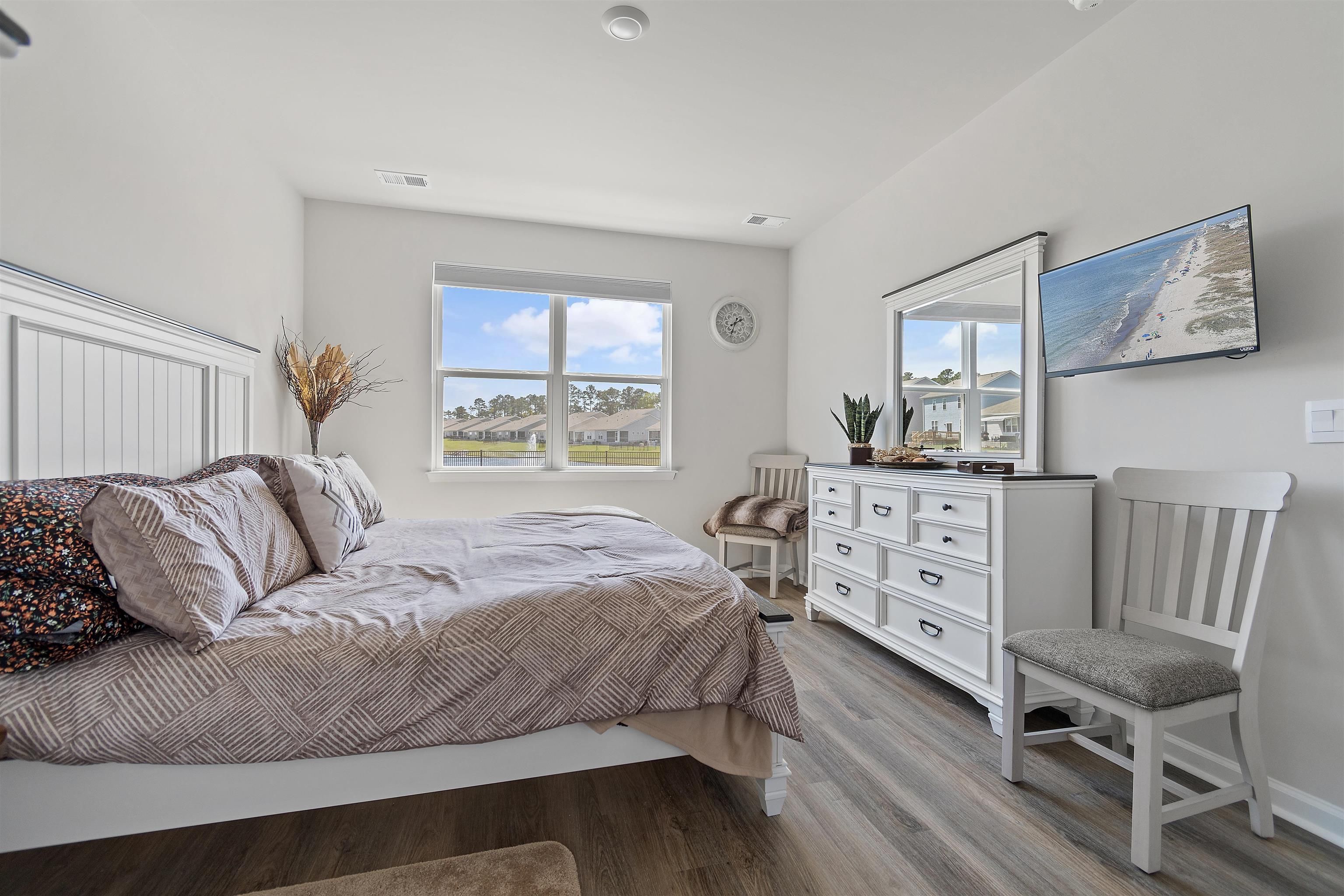 Welcome to Heather Glen; a modern, active-lifestyle community with a stop light for convenient travel onto highway 17. This neighborhood will greet you with a historic live oak centerpiece bordered by a waterfall entrance. When you curve around, it opens up to a tree lined road with sidewalks and mature landscaping. 727 Wallace Dr stands out from the rest with it's outdoor living space. The outdoor addition contains a pavilion nestled between a fire pit and dining area right outside the screened porch. The pavilion has a bar area, drink fridge, and grill. All of this inside a generously fenced yard that over looks the pond. Inside, this ranch style home offers four bedrooms and two bathrooms that have been thoughtfully planned to allow everyone their space. Anchored by an open concept kitchen with a modern gas stove, granite counter tops, walk in corner pantry, and large windows through out with a gorgeous view. The primary bedroom sits in the back of the home away from any noise. It also shares in the privilege of having the glistening water of the pond right outside. The bathrooms have matching granite countertops with a walk in shower in the primary. Luxury vinyl floors are all throughout this home - perfect for our little beach life. Location always matters, even where you are in the neighborhood. This home is right across the street from the mailboxes, resort style pool, and the clubhouse; featuring a fitness center, yoga studio, community kitchen, and event spaces. Heather Glen is a truly special neighborhood with small touches sprinkled all over; a dog bark just for play dates, a playground area for little ones, along with a blueberry garden, sprawling lakes, and walking trails. This exceptional home is still in pristine condition. It's been a second home since it's purchase and never used to it's full potential. The moment you walk in, you will feel this home asking to be yours.